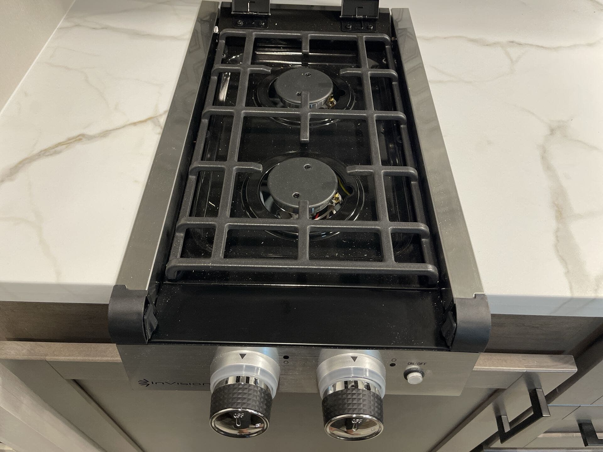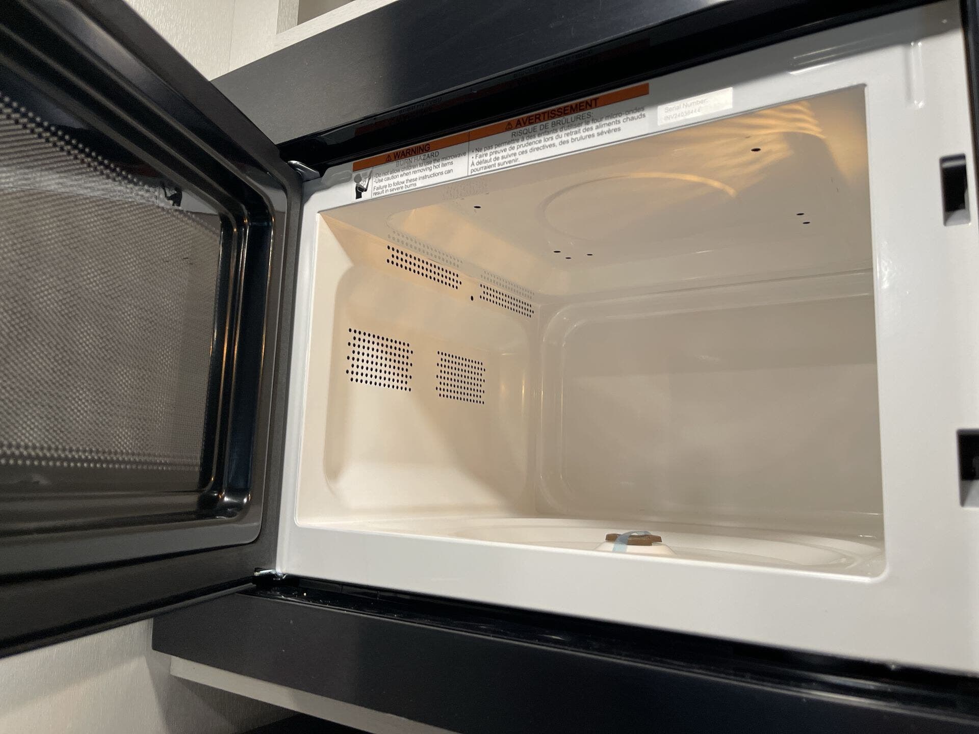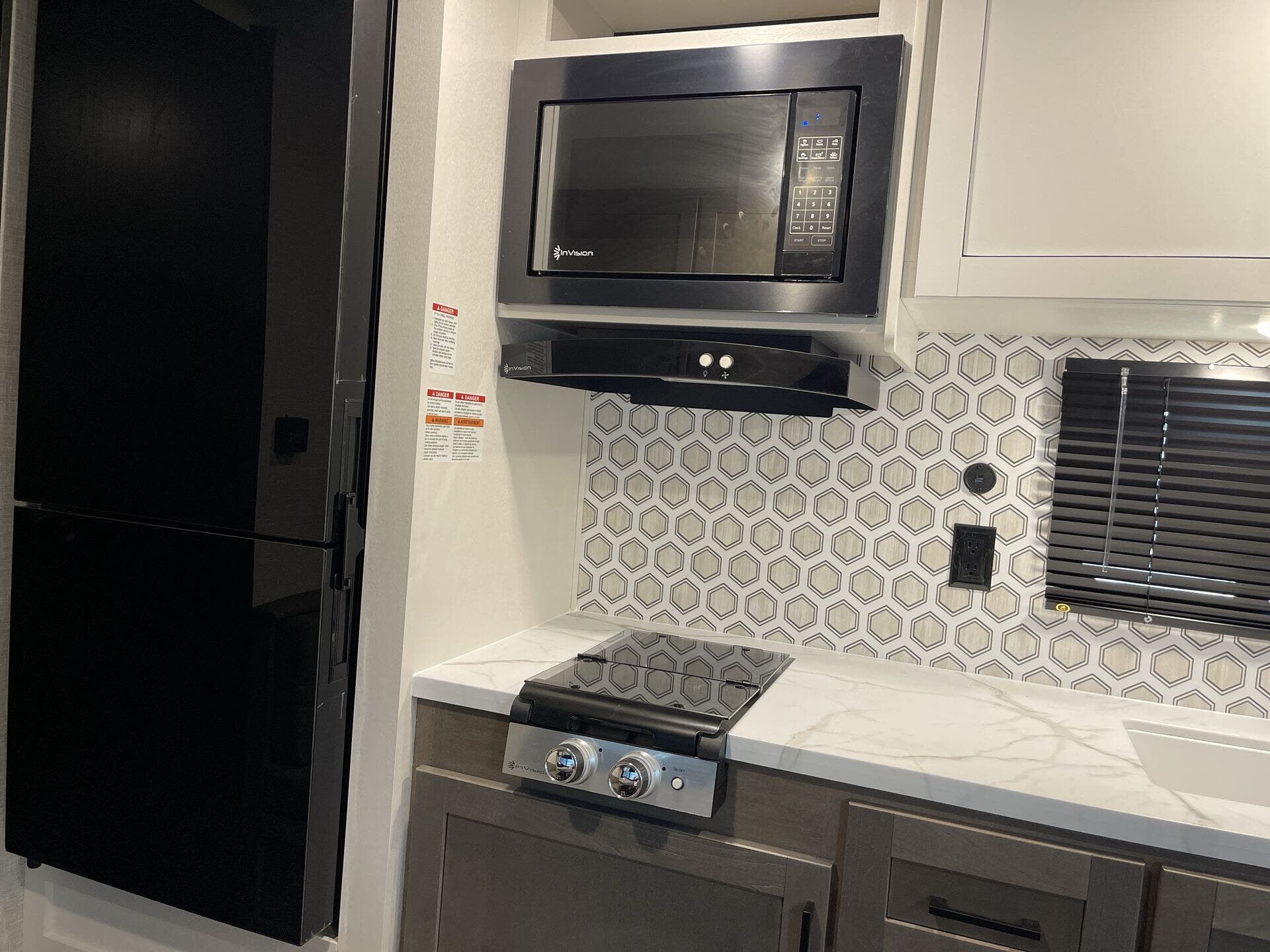 - Microwave, refrigerator, and stove top burner for convenient cooking