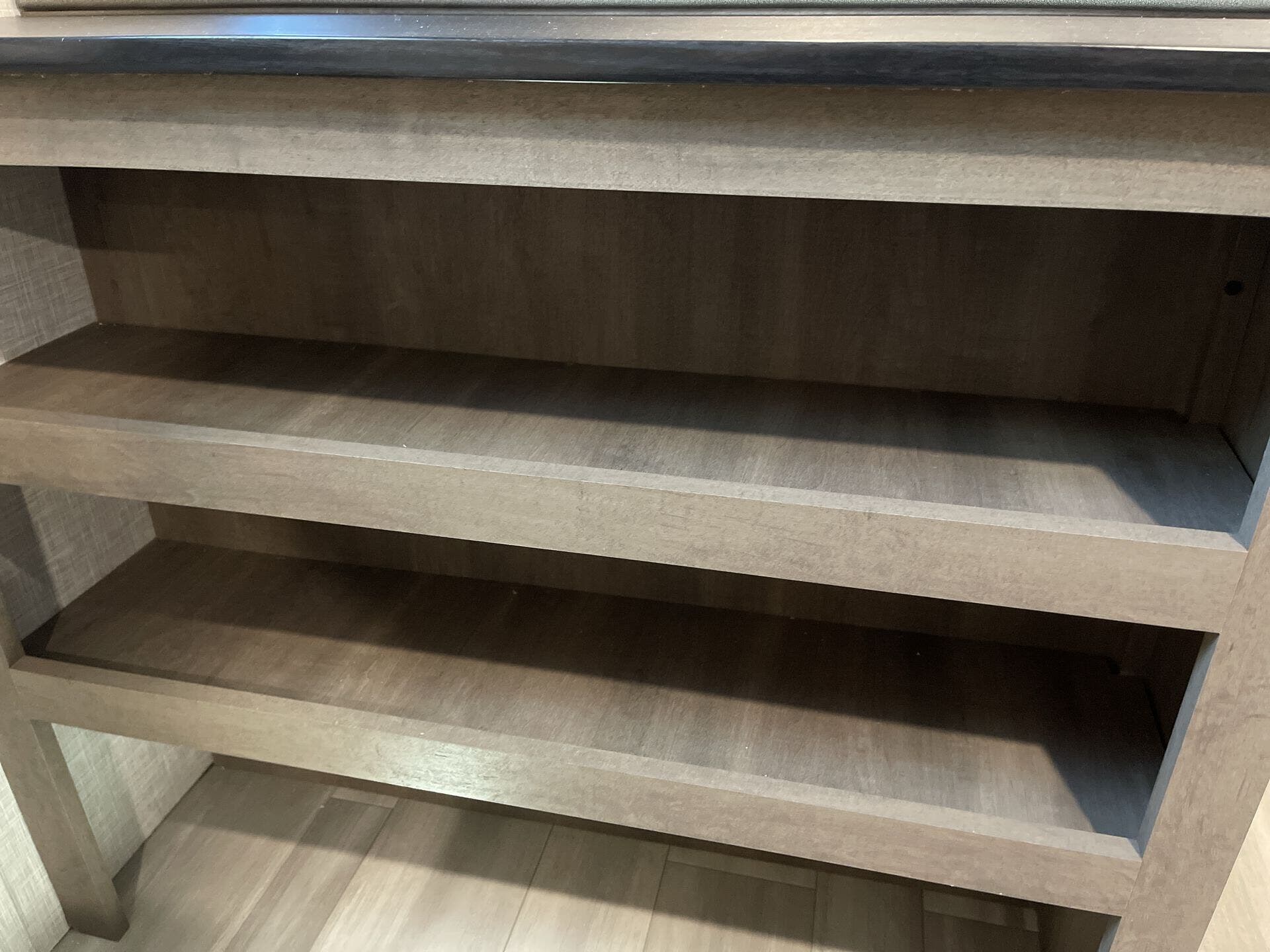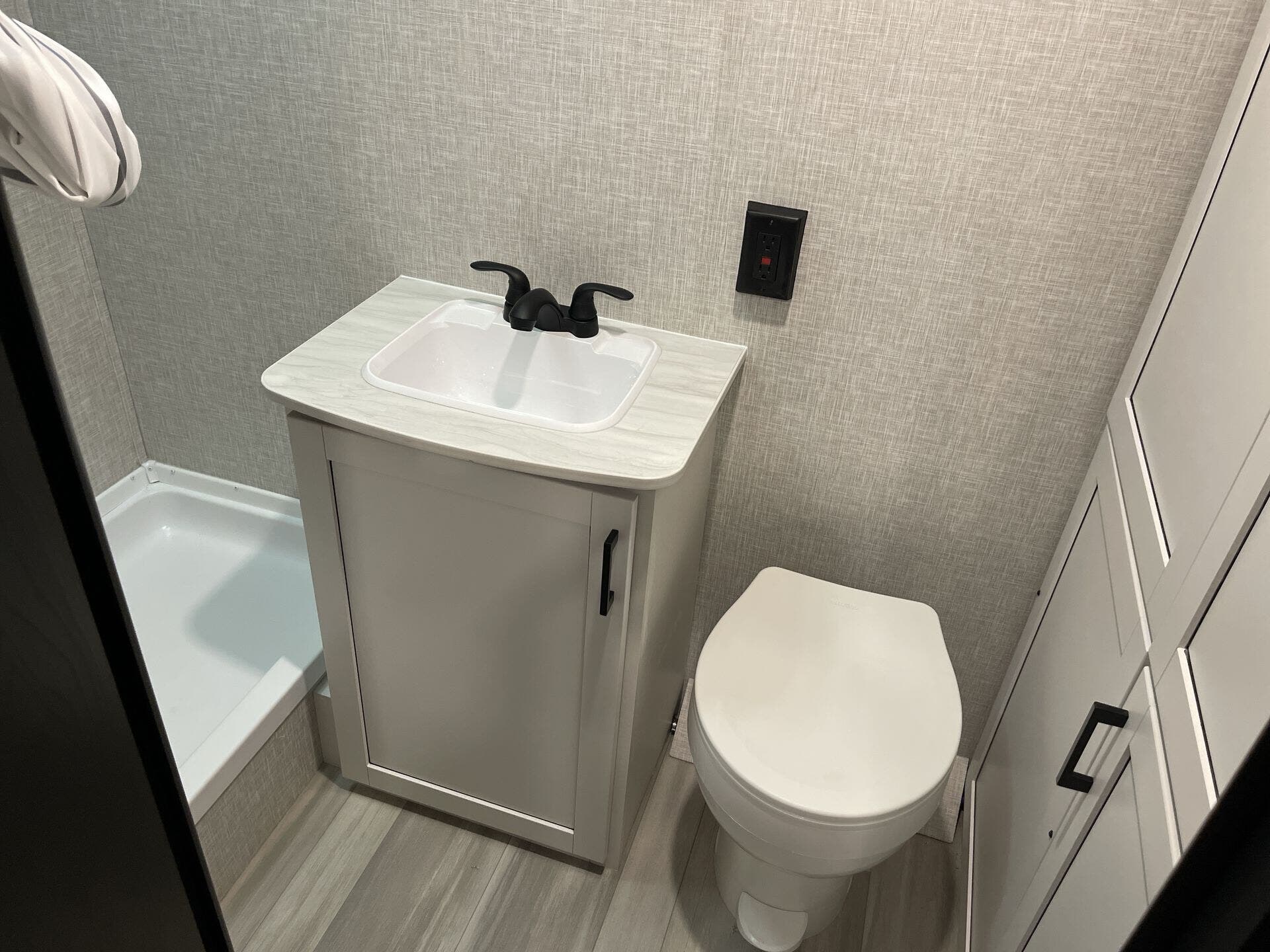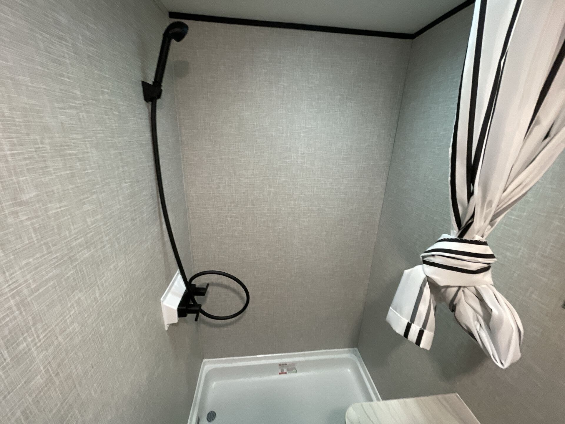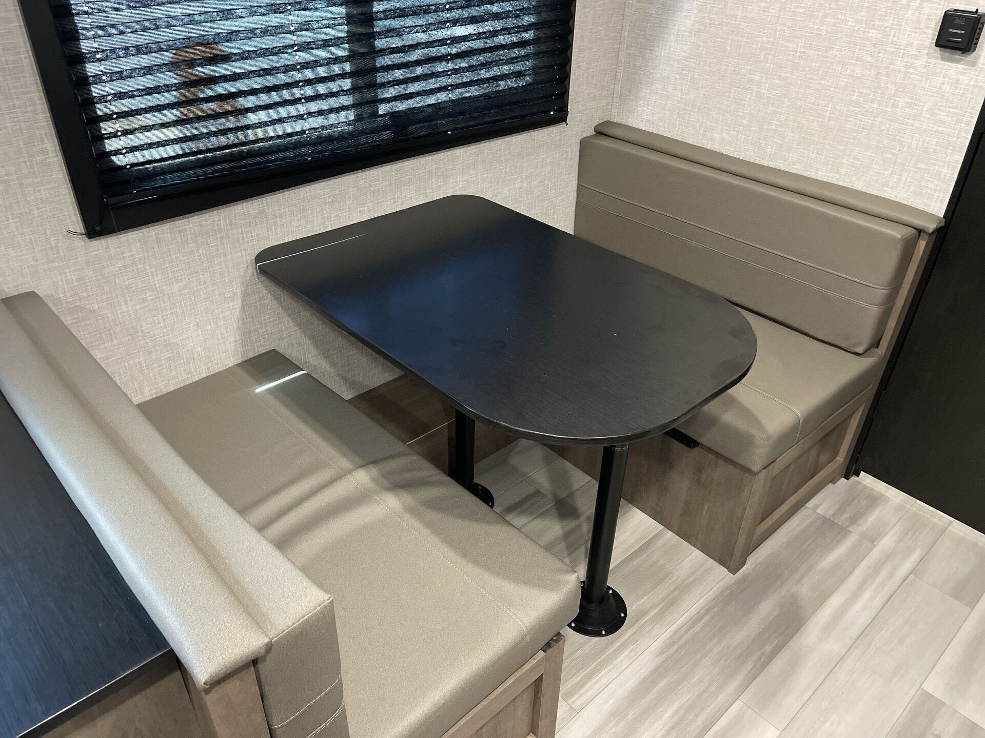 - Interior amenities such as a cozy booth dinette for dining and socializing, and a shower for hygiene needs