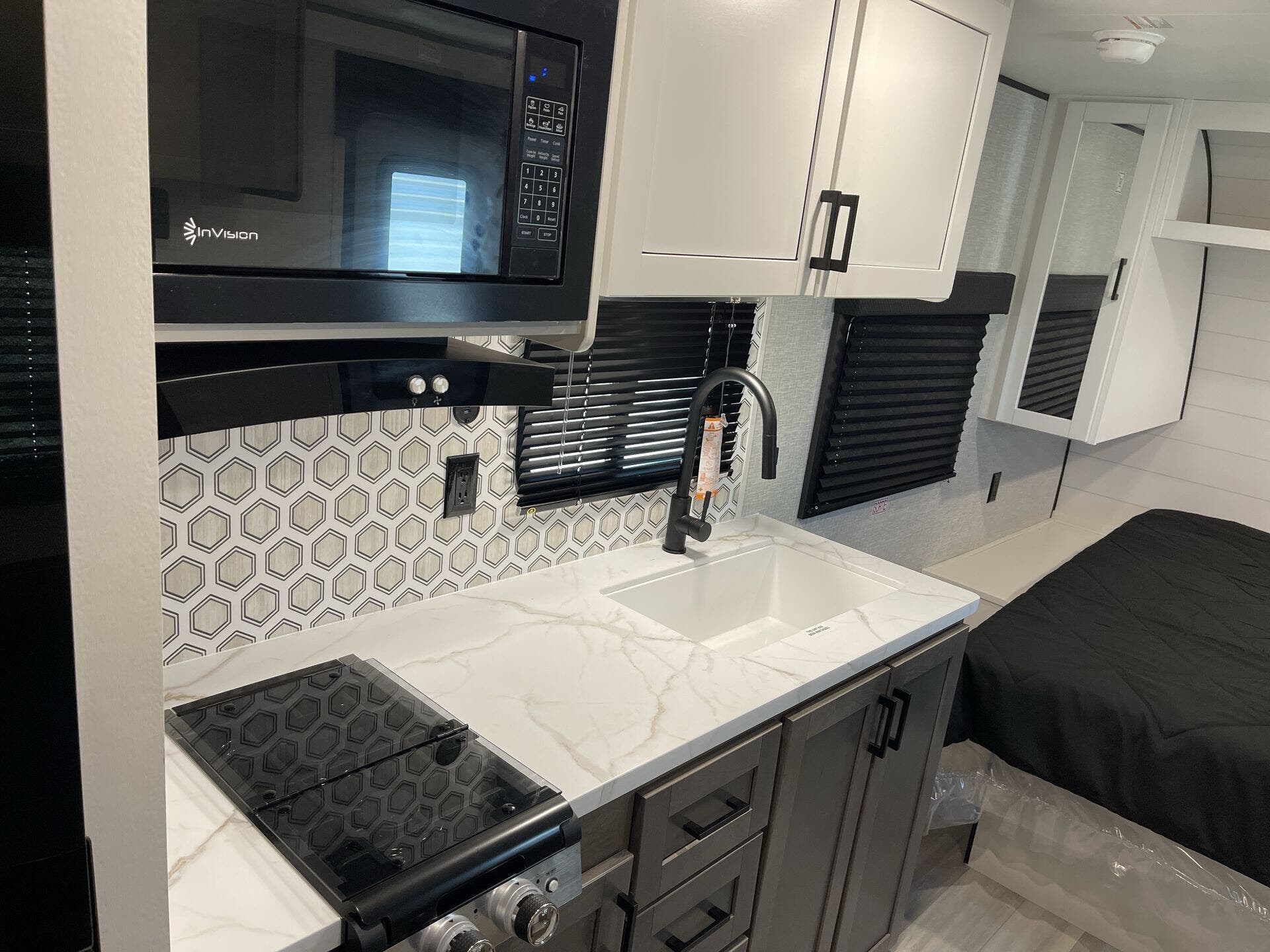 This well-equipped travel trailer includes a variety of features aimed at enhancing your travel experience: