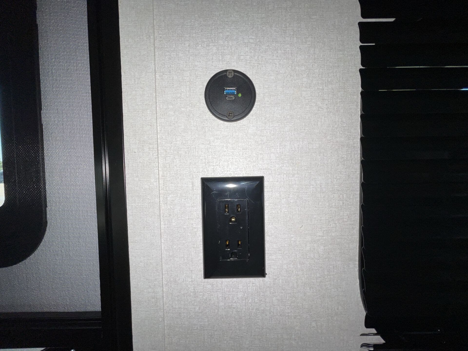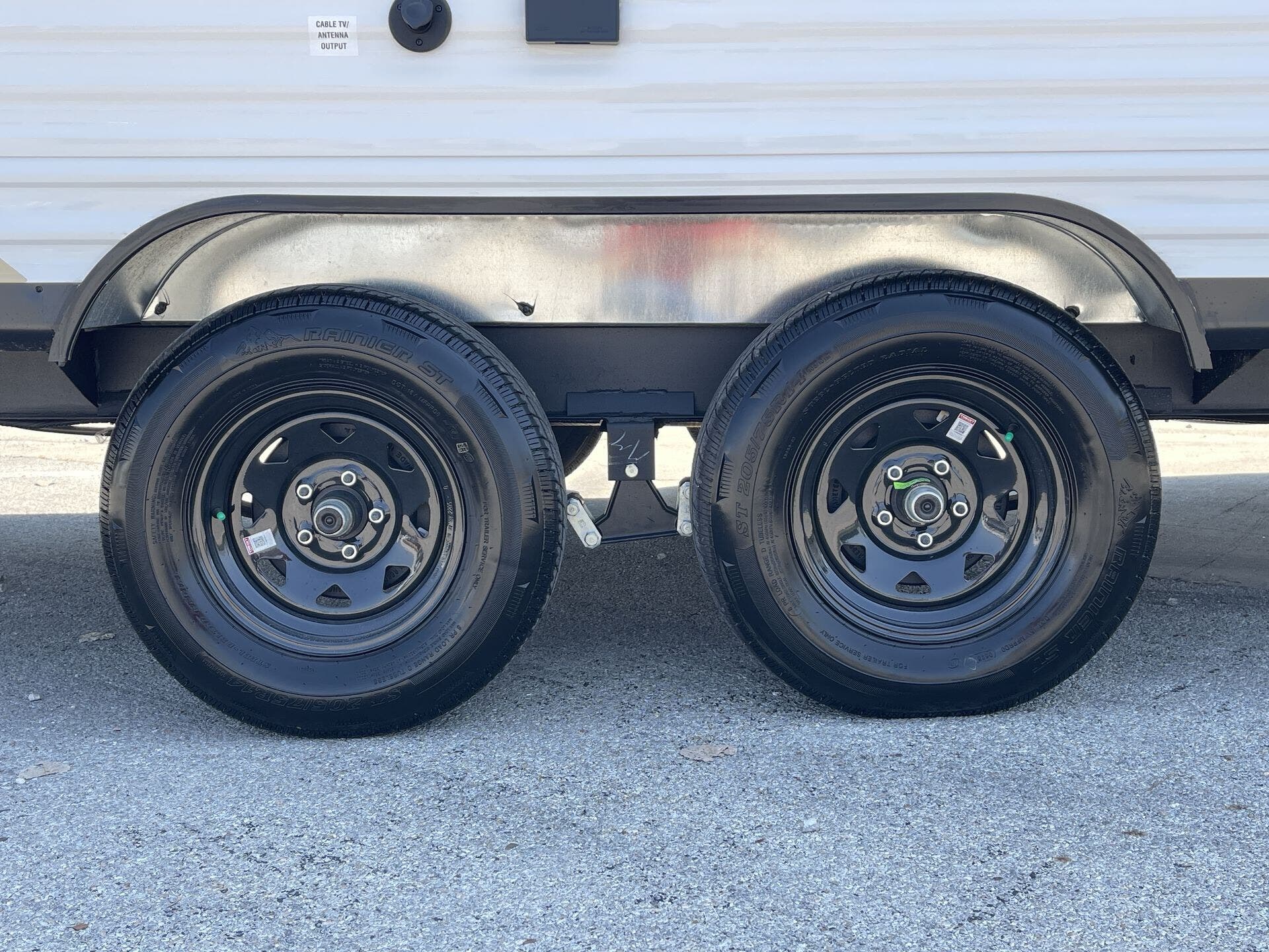 - Exterior features: Awning, Pass-Thru Storage, Spare Tire Kit, Detachable Power Cord, Leveling Jacks