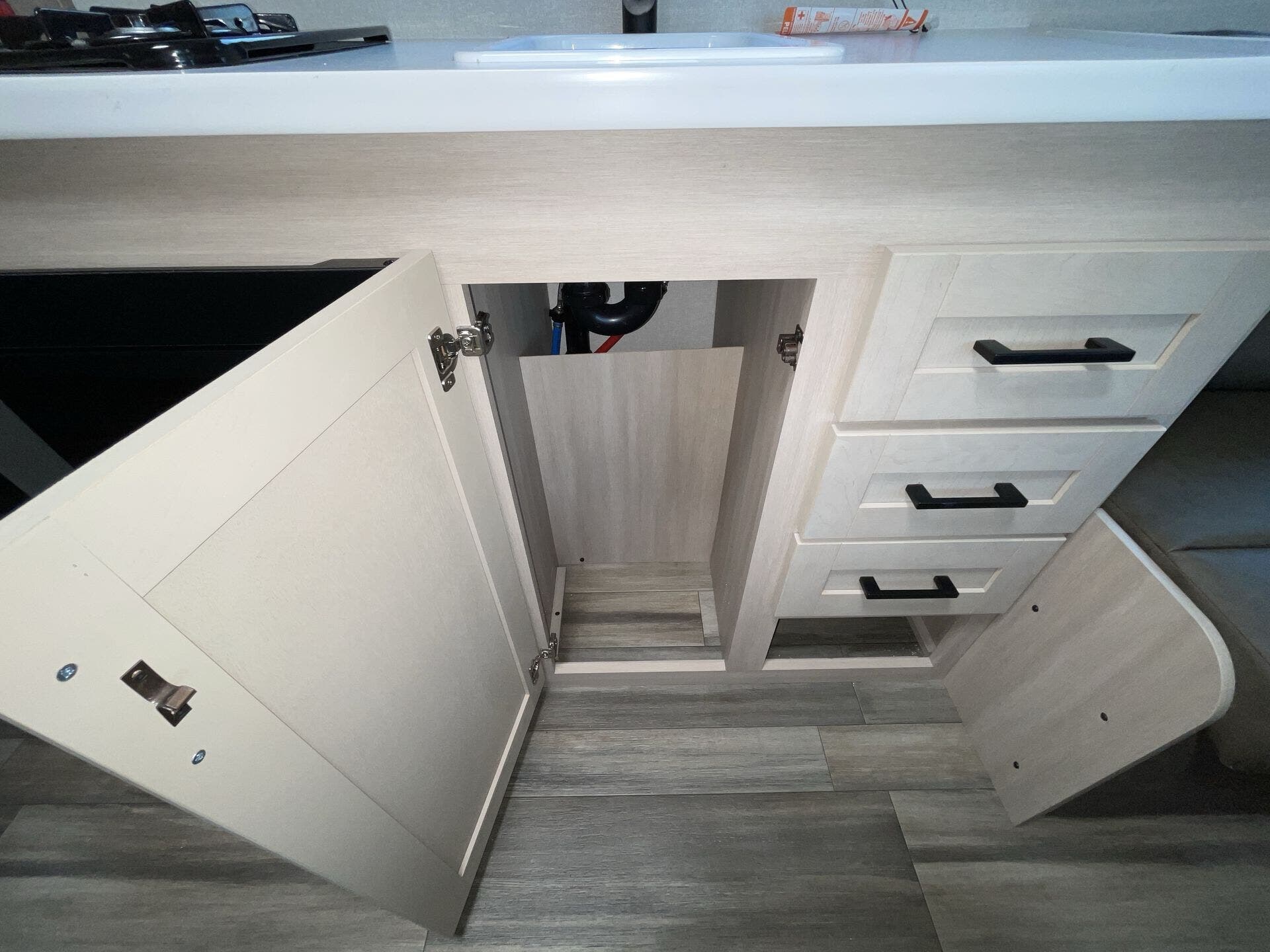 - Shower, toilet, and kitchen sink for comfortable, home-like living on the road