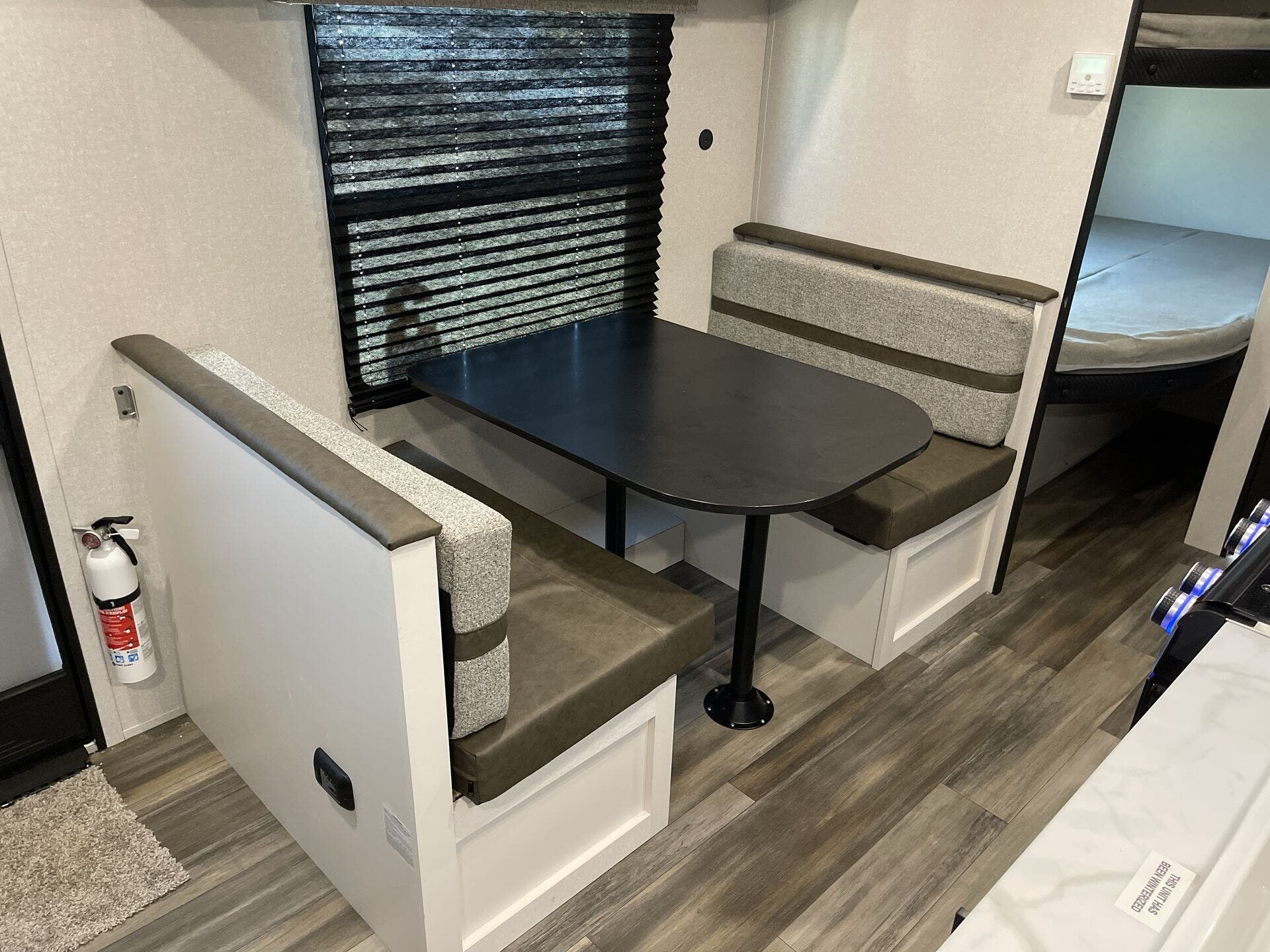 - Flexible sleeping arrangements with bunk beds, dinette, and other versatile features