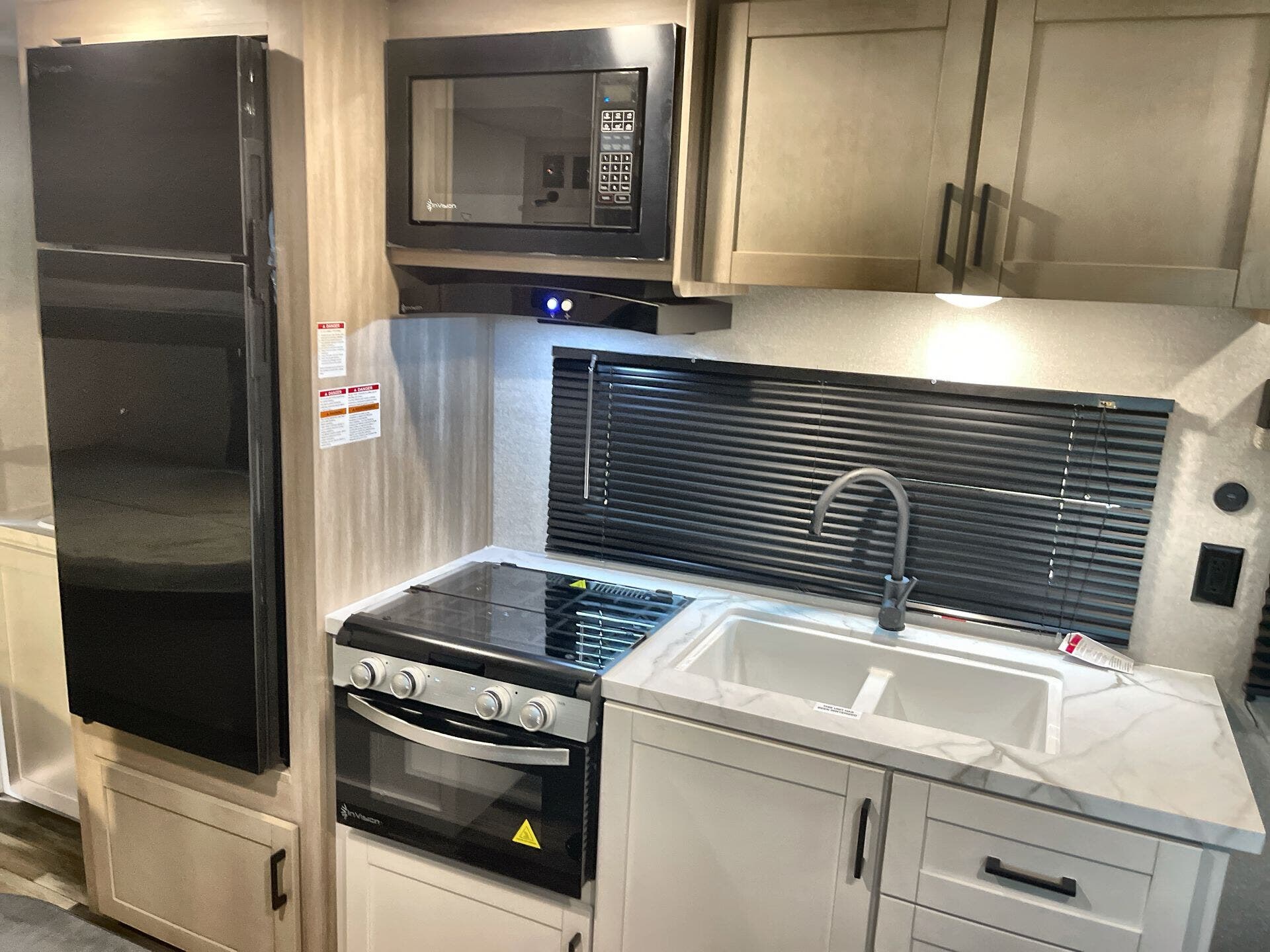 This travel trailer is packed with premium features to ensure a comfortable and enjoyable journey. Inside, you'll find: