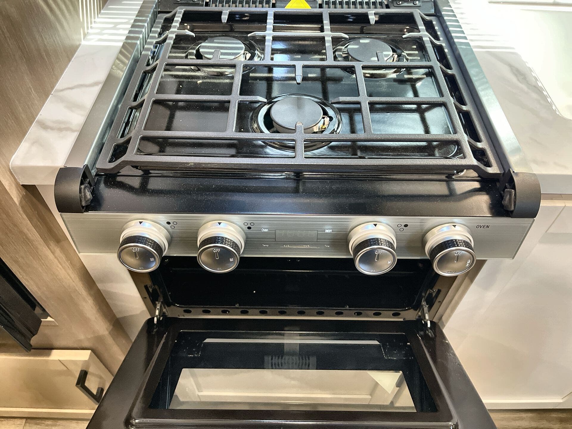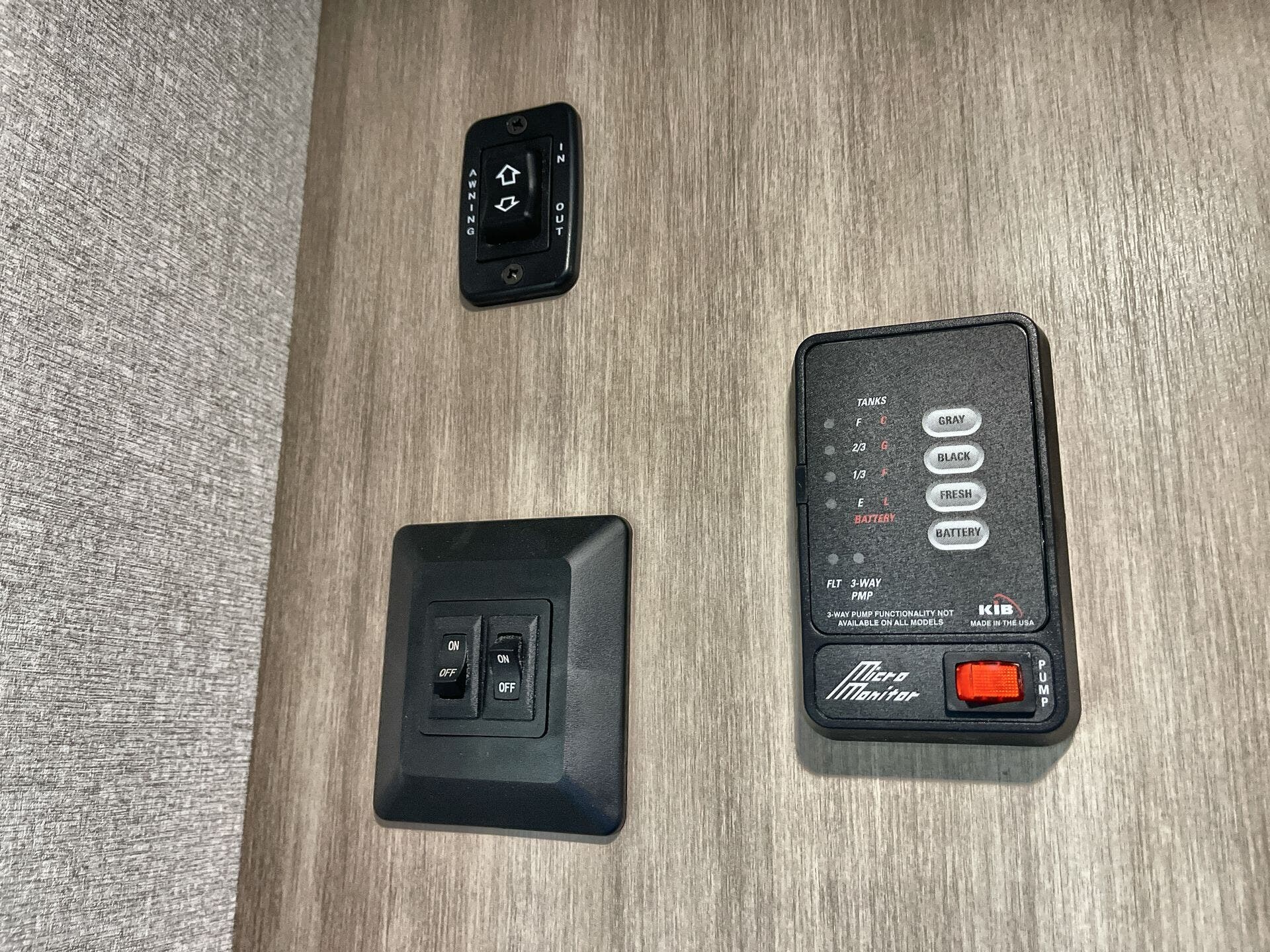 - Safety features include CO and LP detectors, smoke detector, fire extinguisher