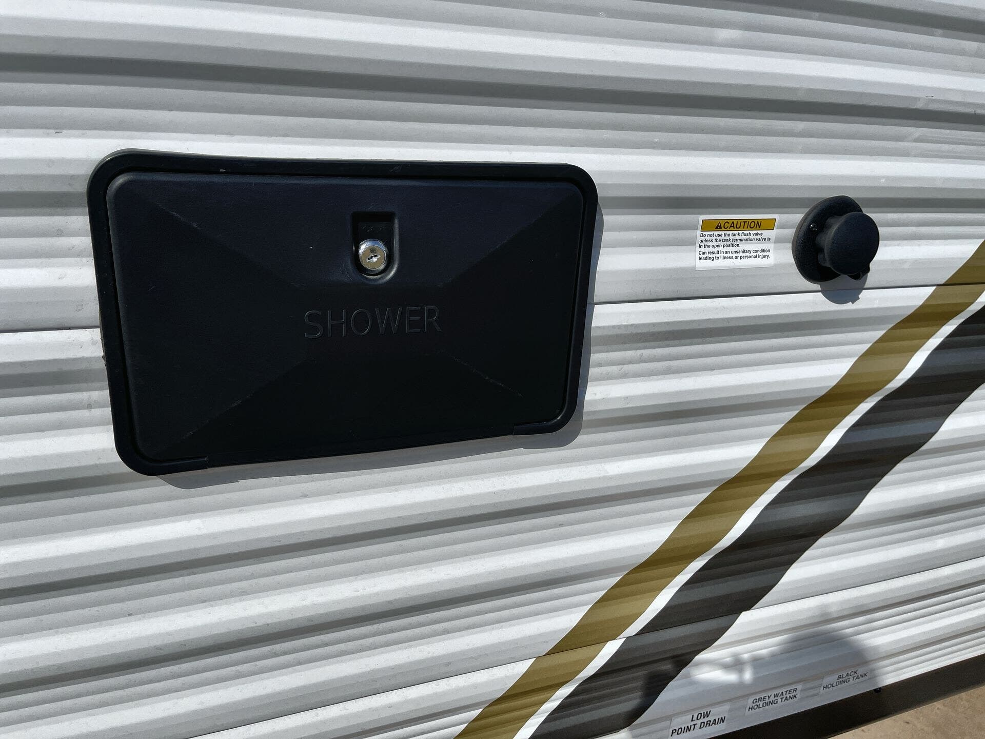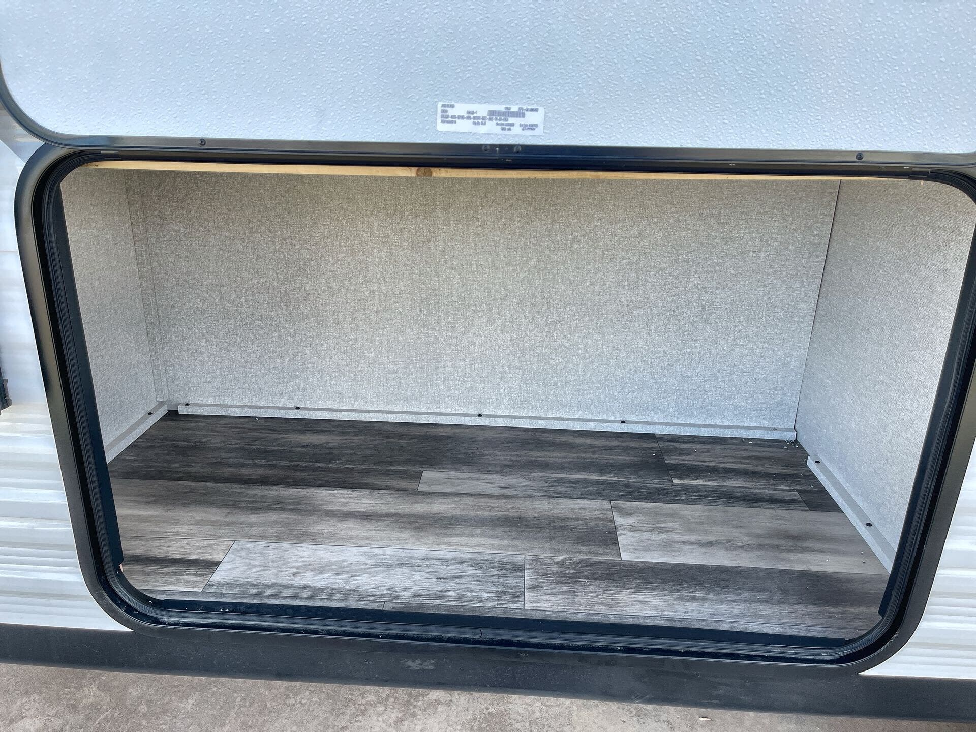 - Exterior Features: Awning, Pass-Thru Storage, Detachable Power Cord, Leveling Jacks
