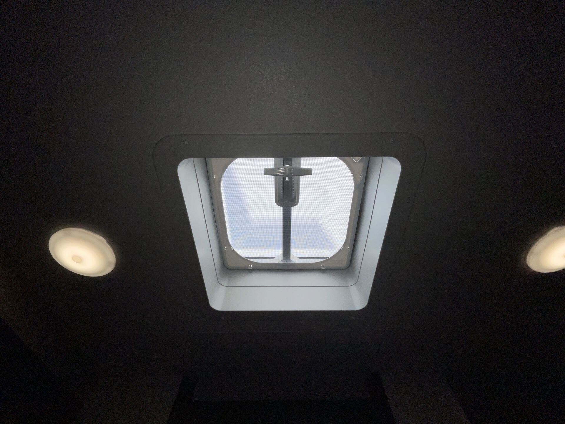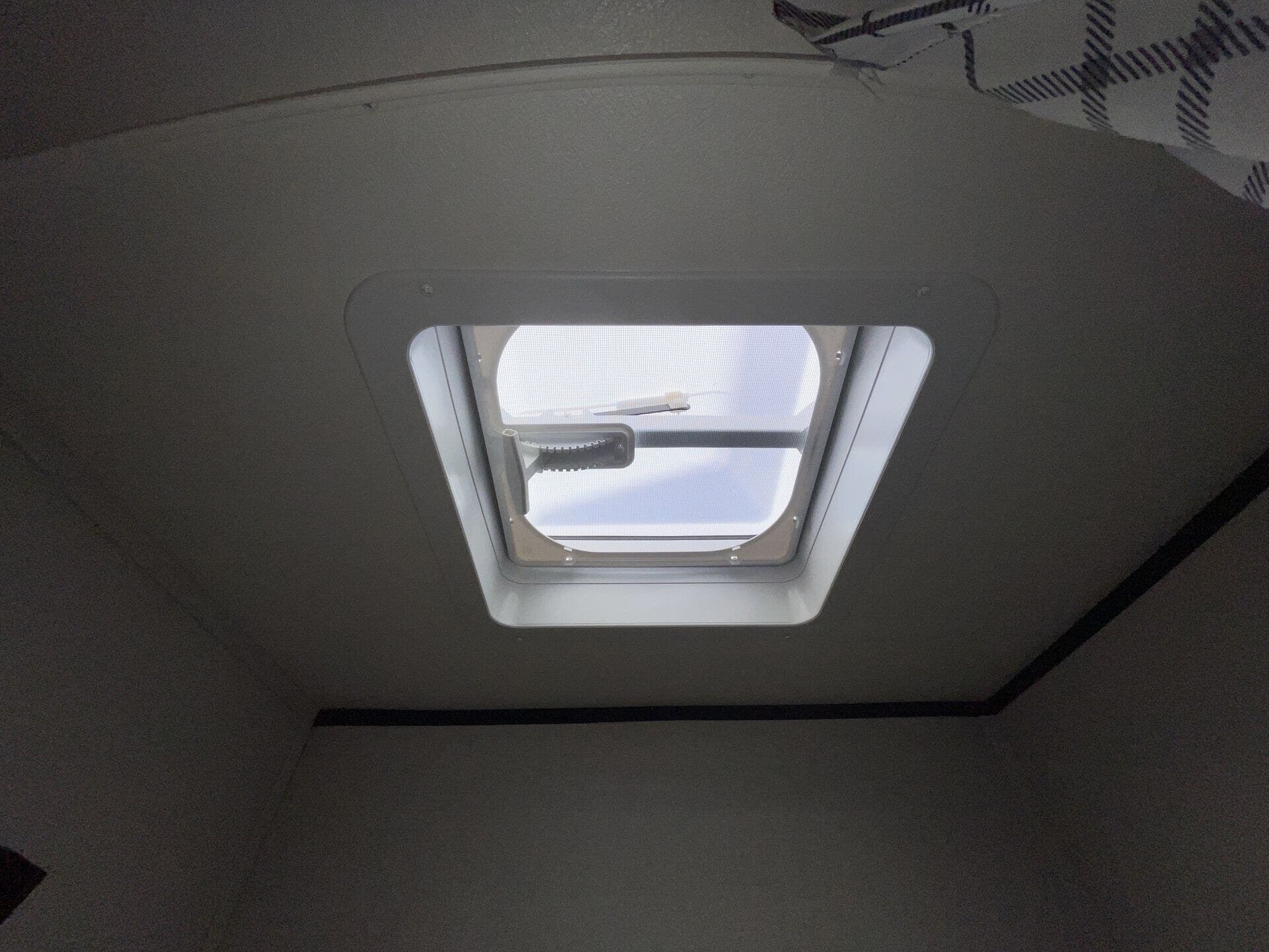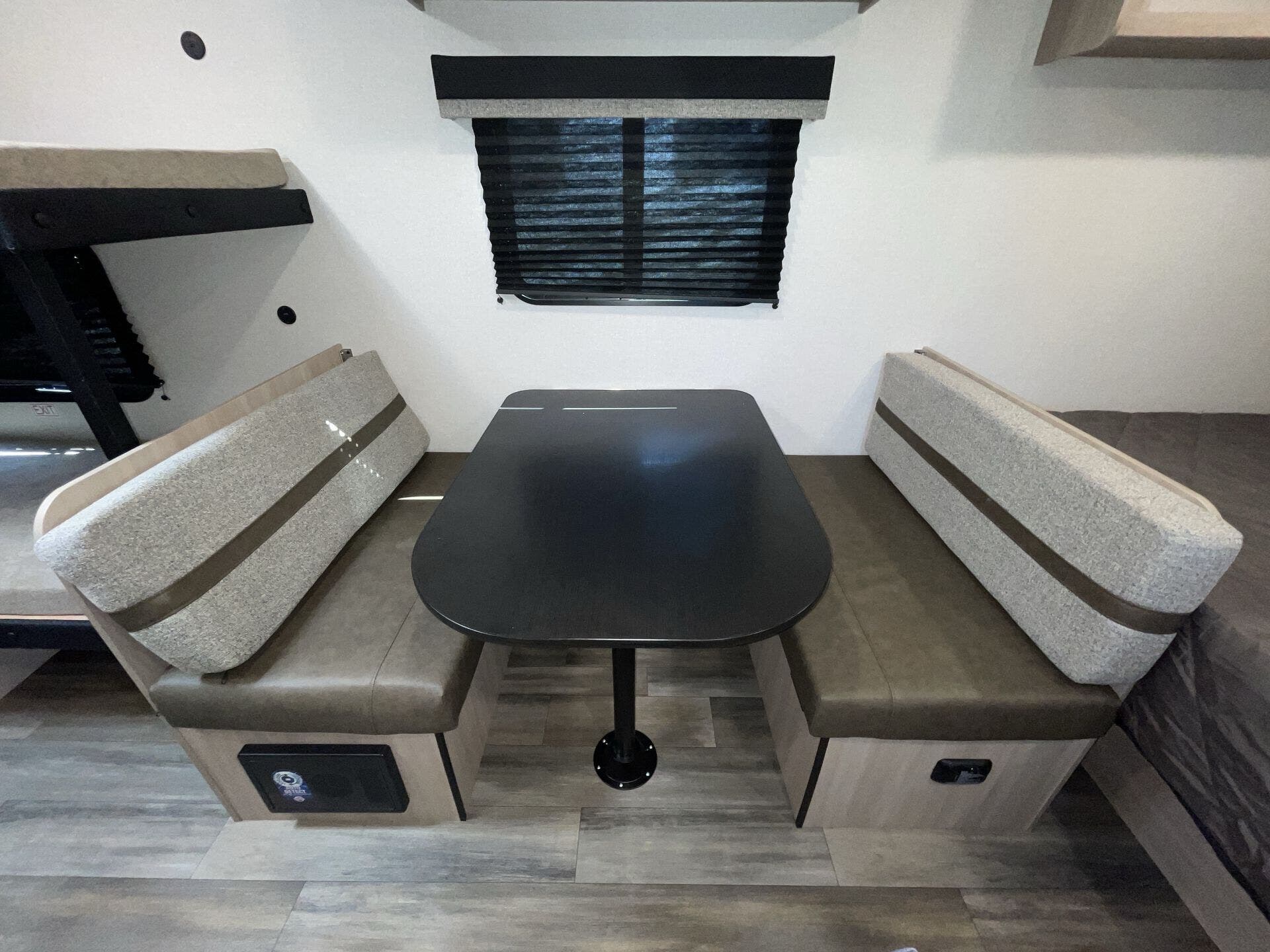- Comfort features: two roof vents, booth dinette with removable table, overhead cabinetry