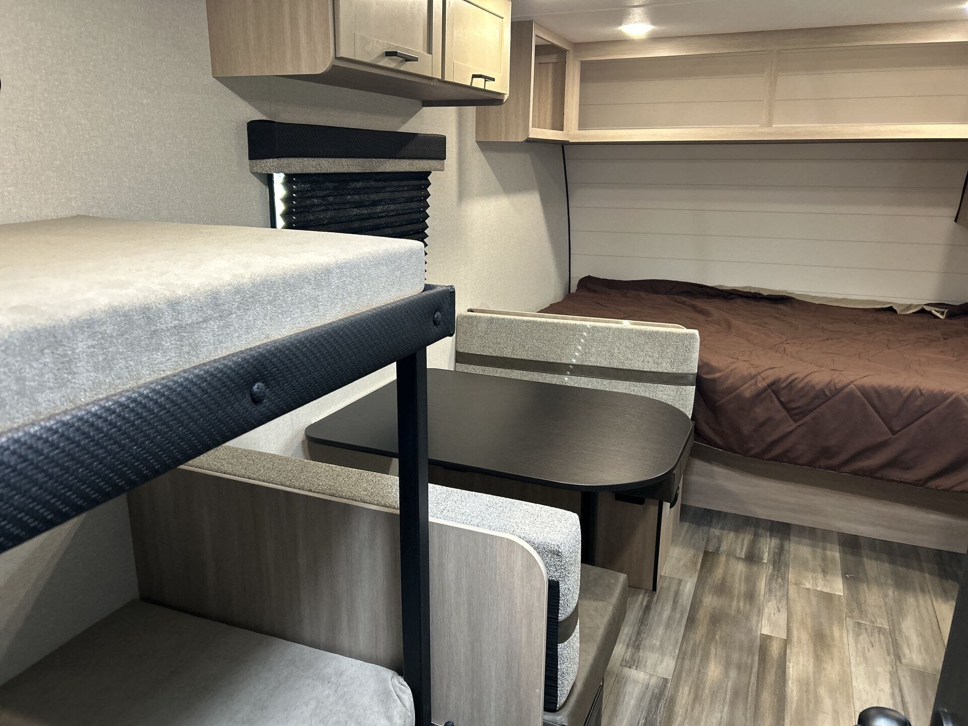 Bunk Beds, Dinette, Kitchen Sink, Medicine Cabinet, Non-Smoking Unit, Overhead Cabinetry, Shower, Toilet