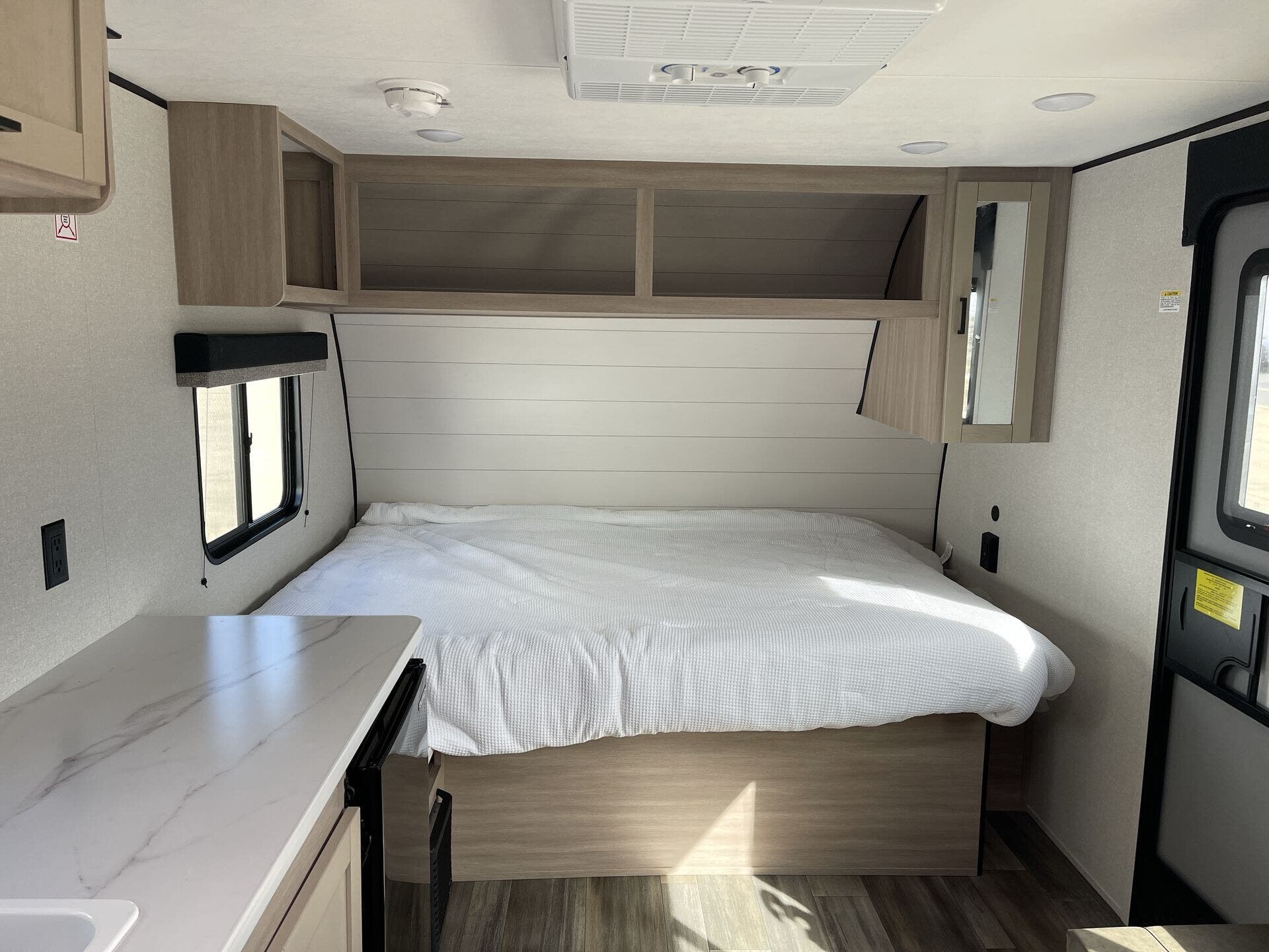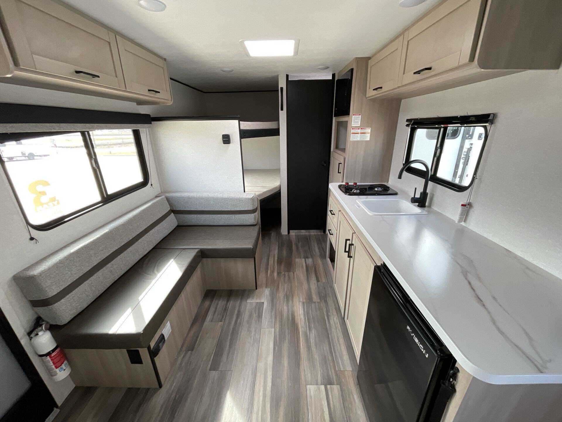 The CONV COLT 17DB floorplan features popular bunk-bed accommodations, a front private bedroom with a comfortable queen bed, a mid kitchen, a mid living area, and a rear bath. This arrangement provides a smart flow for family camping, weekend escapes, and friends on the road, while maintaining a compact exterior profile that remains easy to tow with a conventional vehicle.