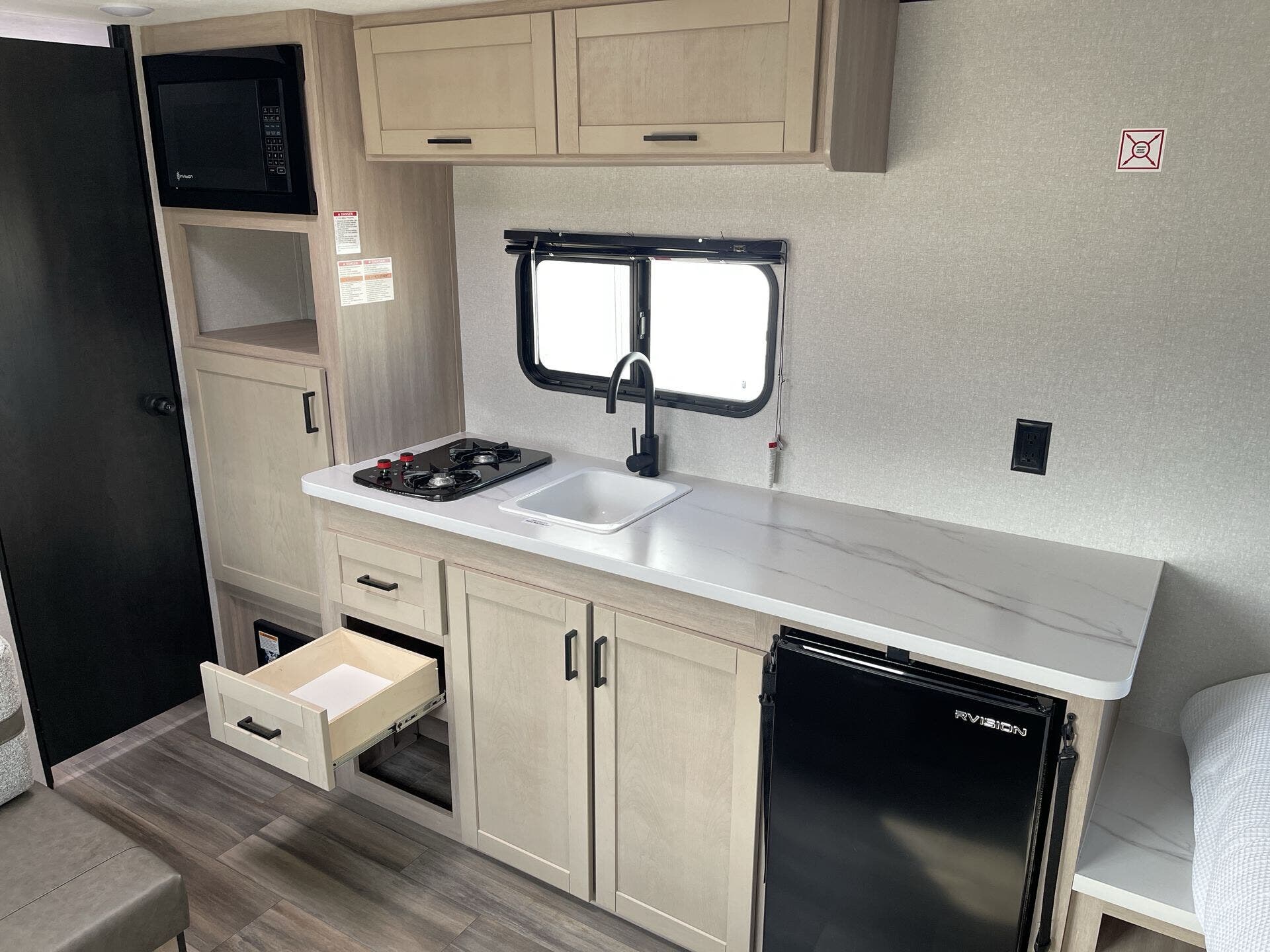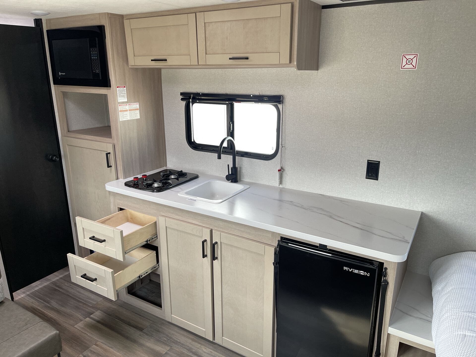 - Microwave, Refrigerator, Stove Top Burner for convenient meals on the go
