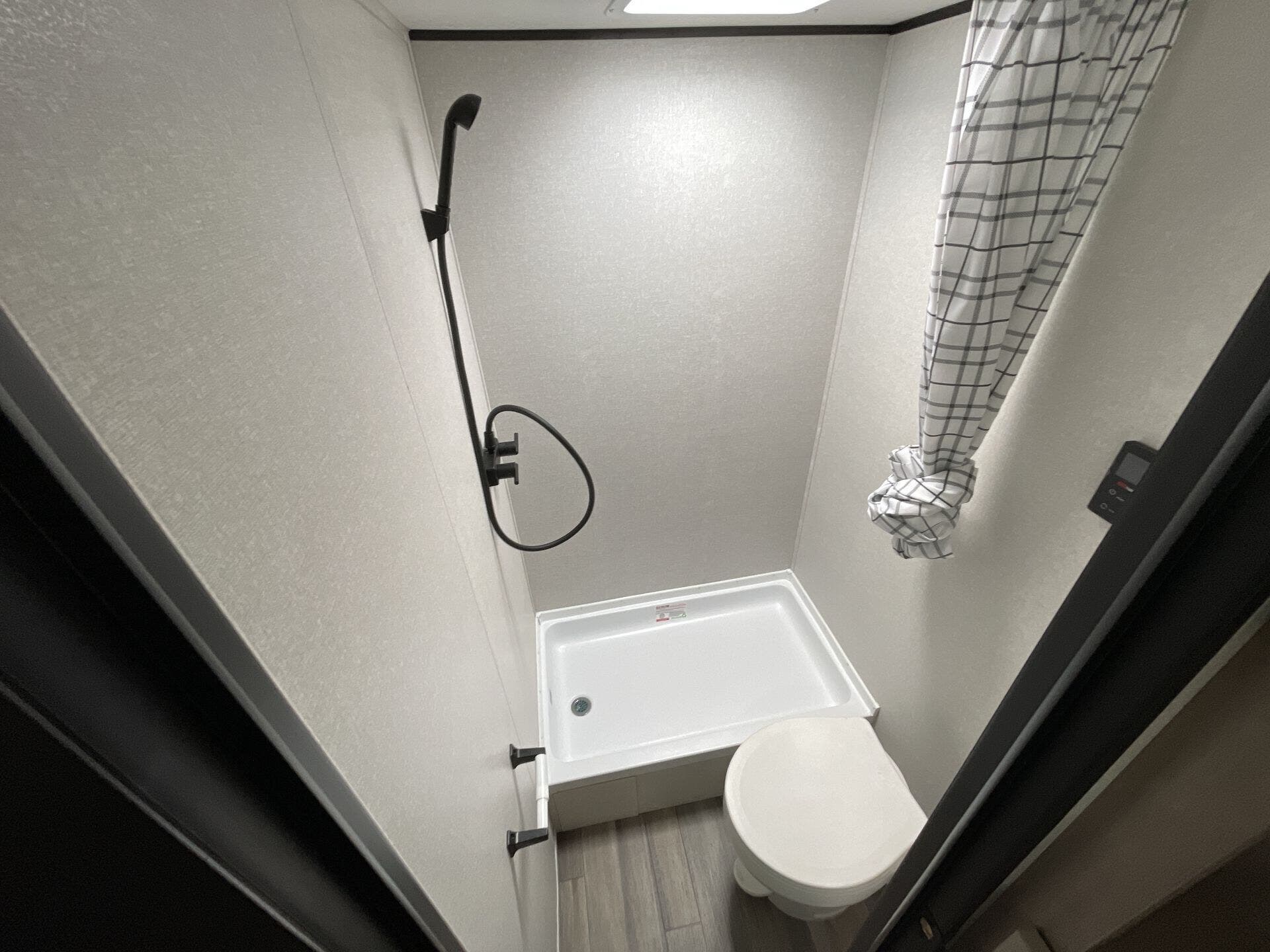 - Shower and Toilet with efficient black, grey, and freshwater systems