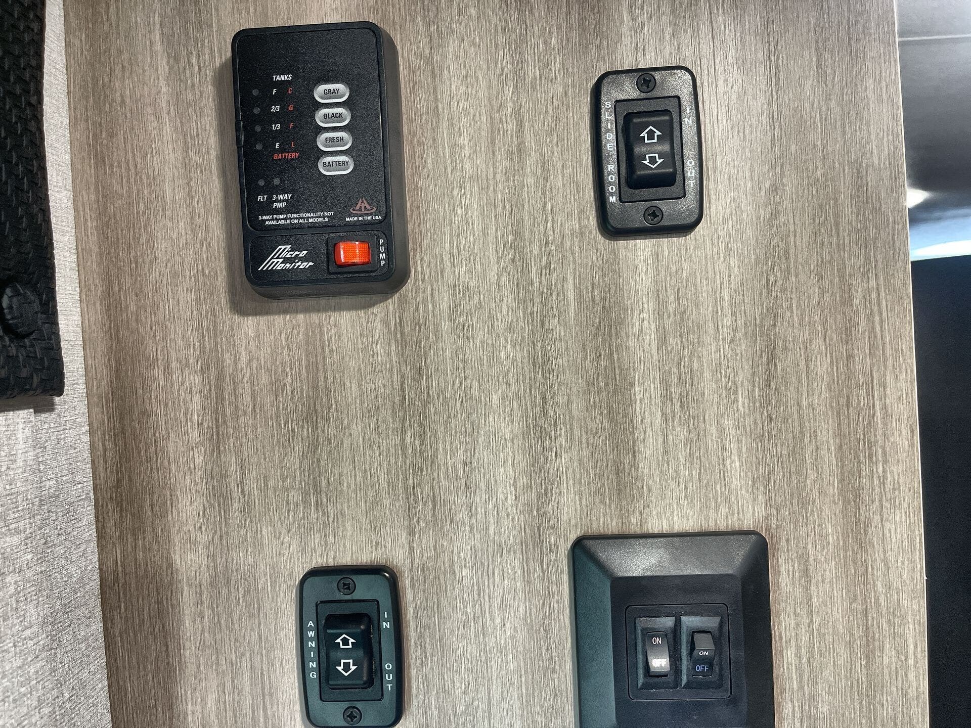 Awning, Backup Monitor, Hitch, Leveling Jacks, Power Awning, Slideout -