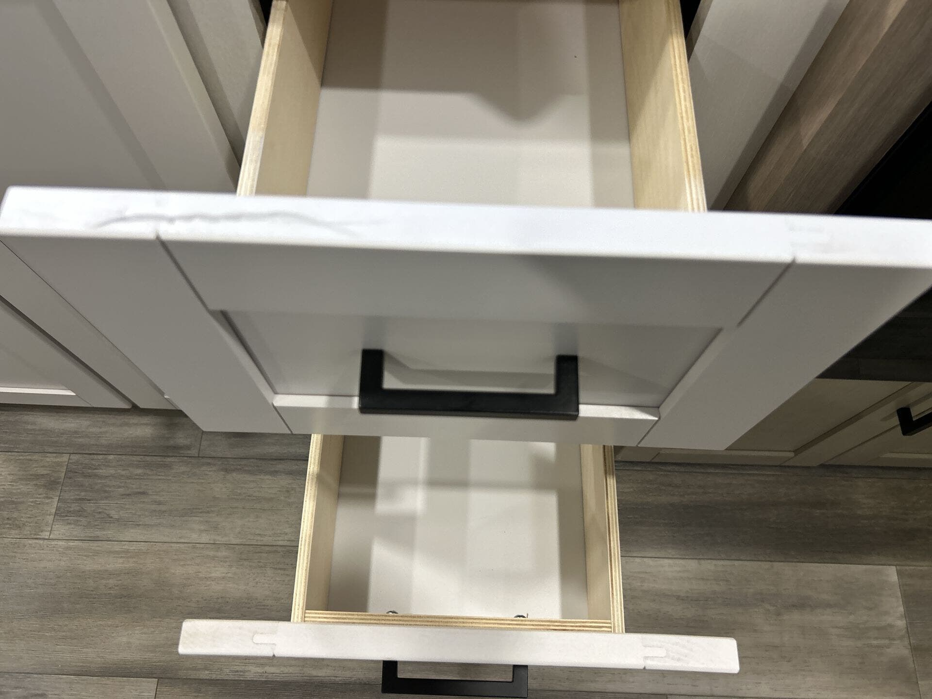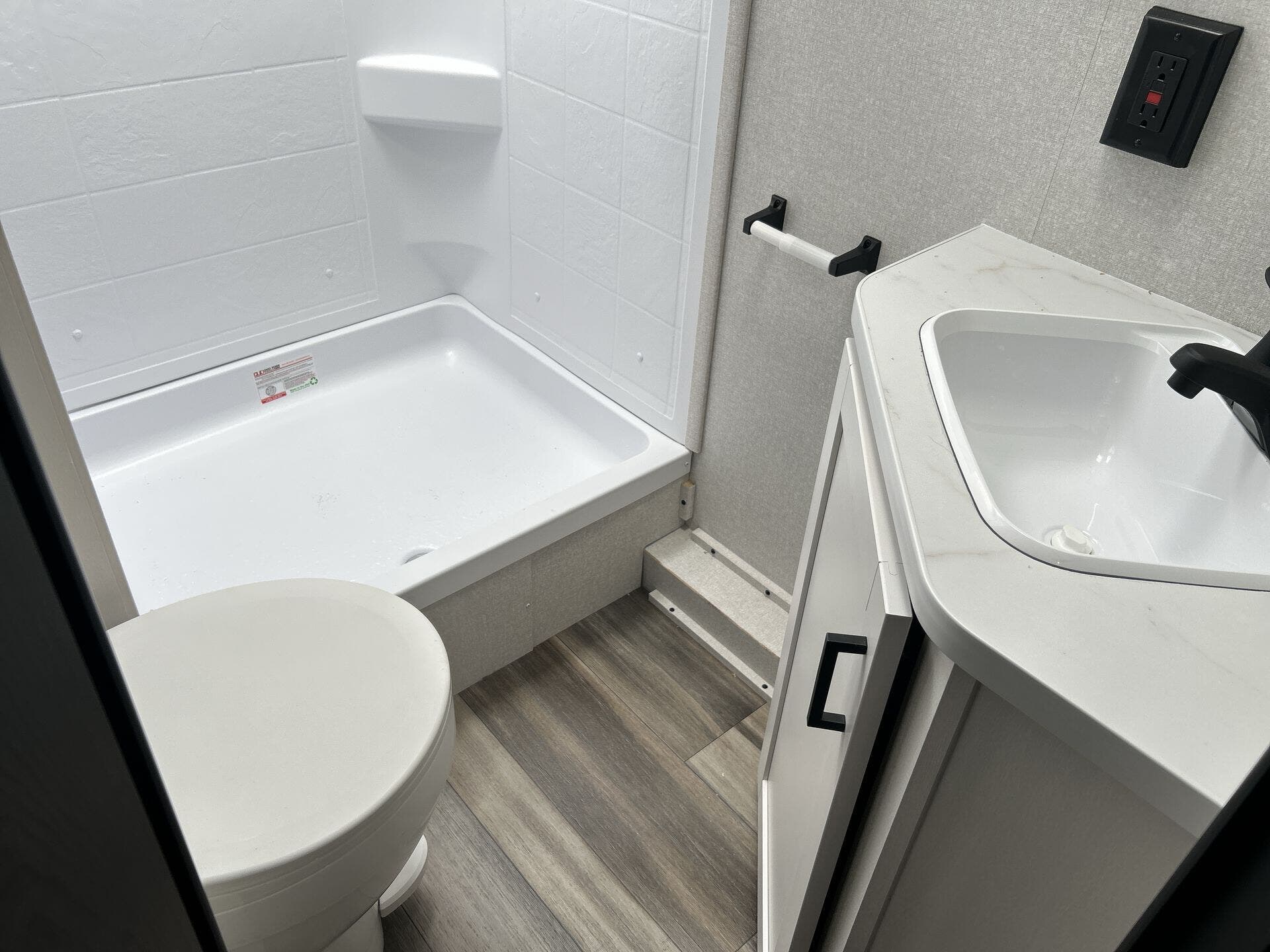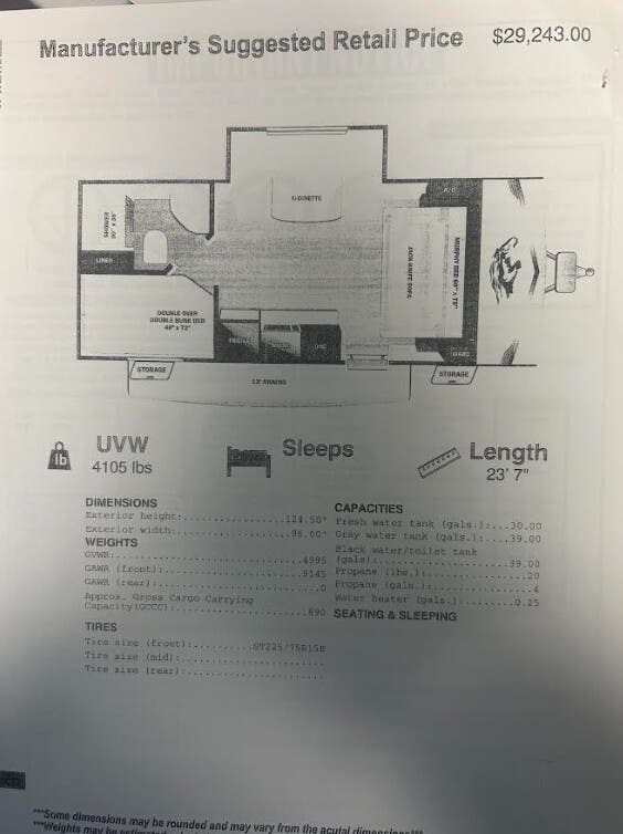 - Safety & Convenience: CO/LP Detectors, Smoke Detector, Fire Extinguisher, Leveling Jacks, Awning, Detachable Power Cord