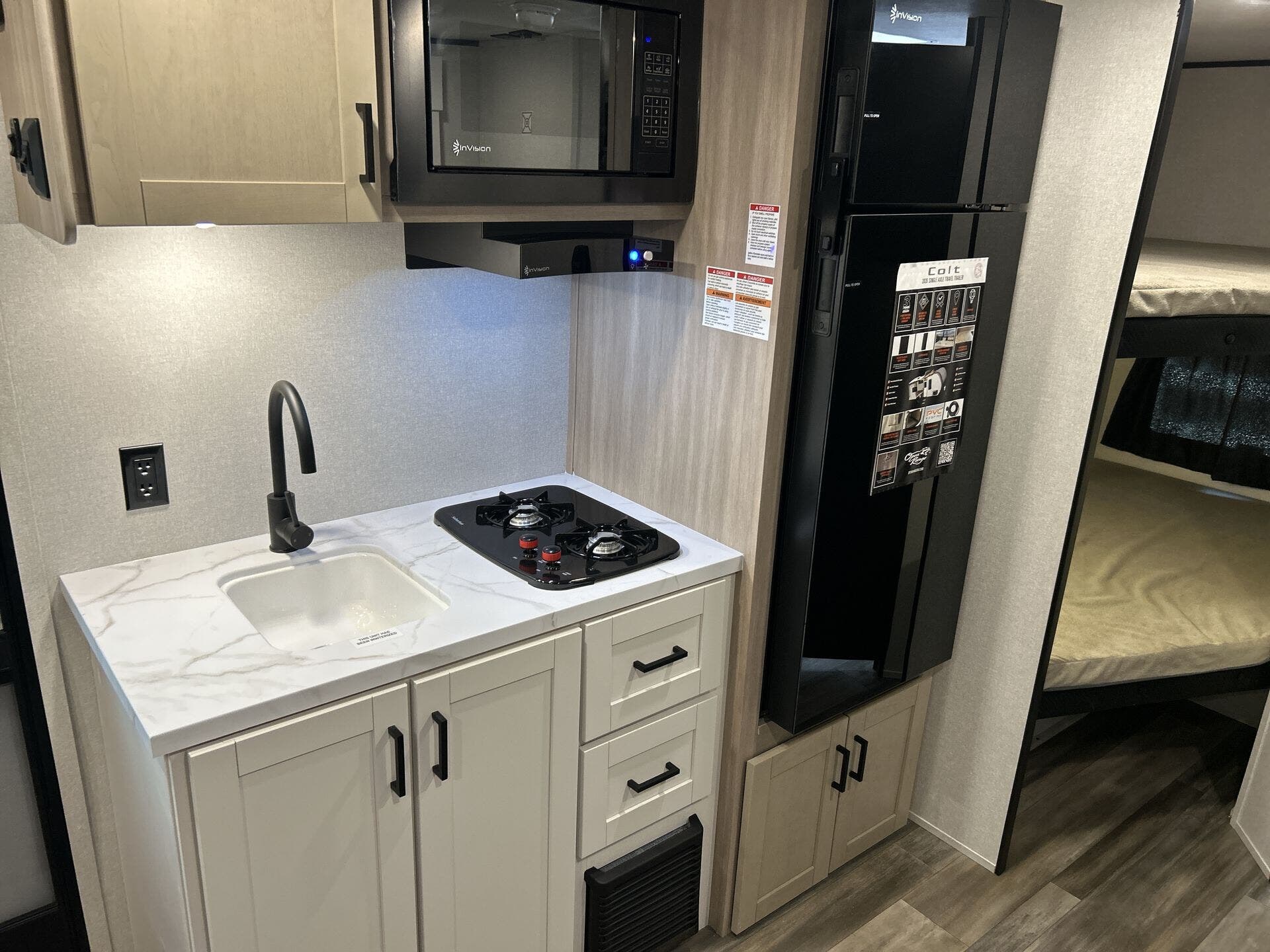 Meet the Highland Ridge Open Range CONV COLT 18MBS, a 2026 travel trailer built for families who crave reliability, comfort, and flexible living on the road. This towable RV offers bunk beds for kids, a queen bed for parents, and a smart single-slide layout that maximizes space without sacrificing maneuverability. With modern conveniences like a convection microwave and a full kitchen, you can enjoy home-style meals anywhere you roam. The compact length of 23 feet 7 inches makes it easy to tow with a wide range of SUVs or half-ton trucks, while the robust GVWR of 4,995 pounds keeps things light for fuel-conscious travelers.
