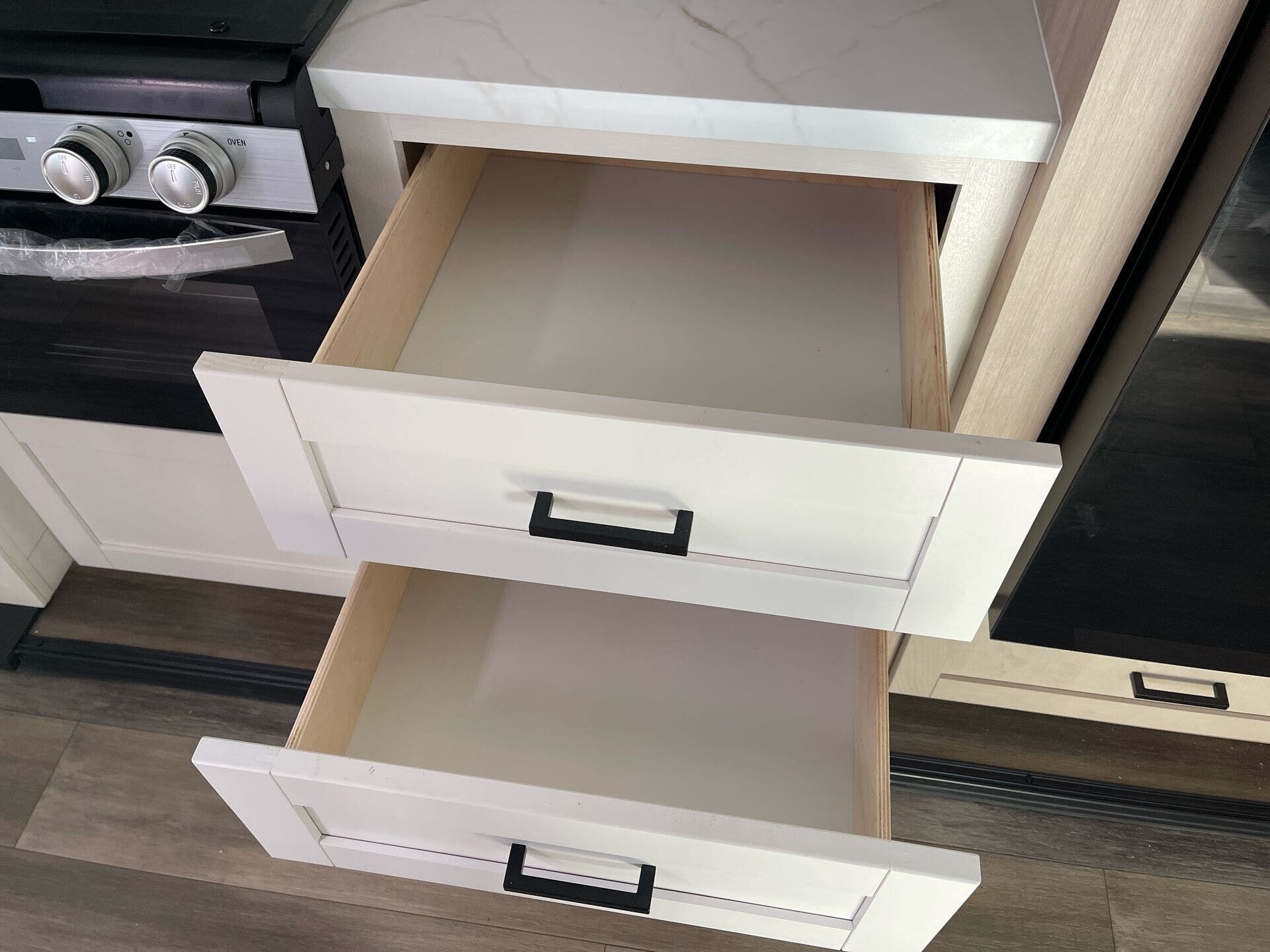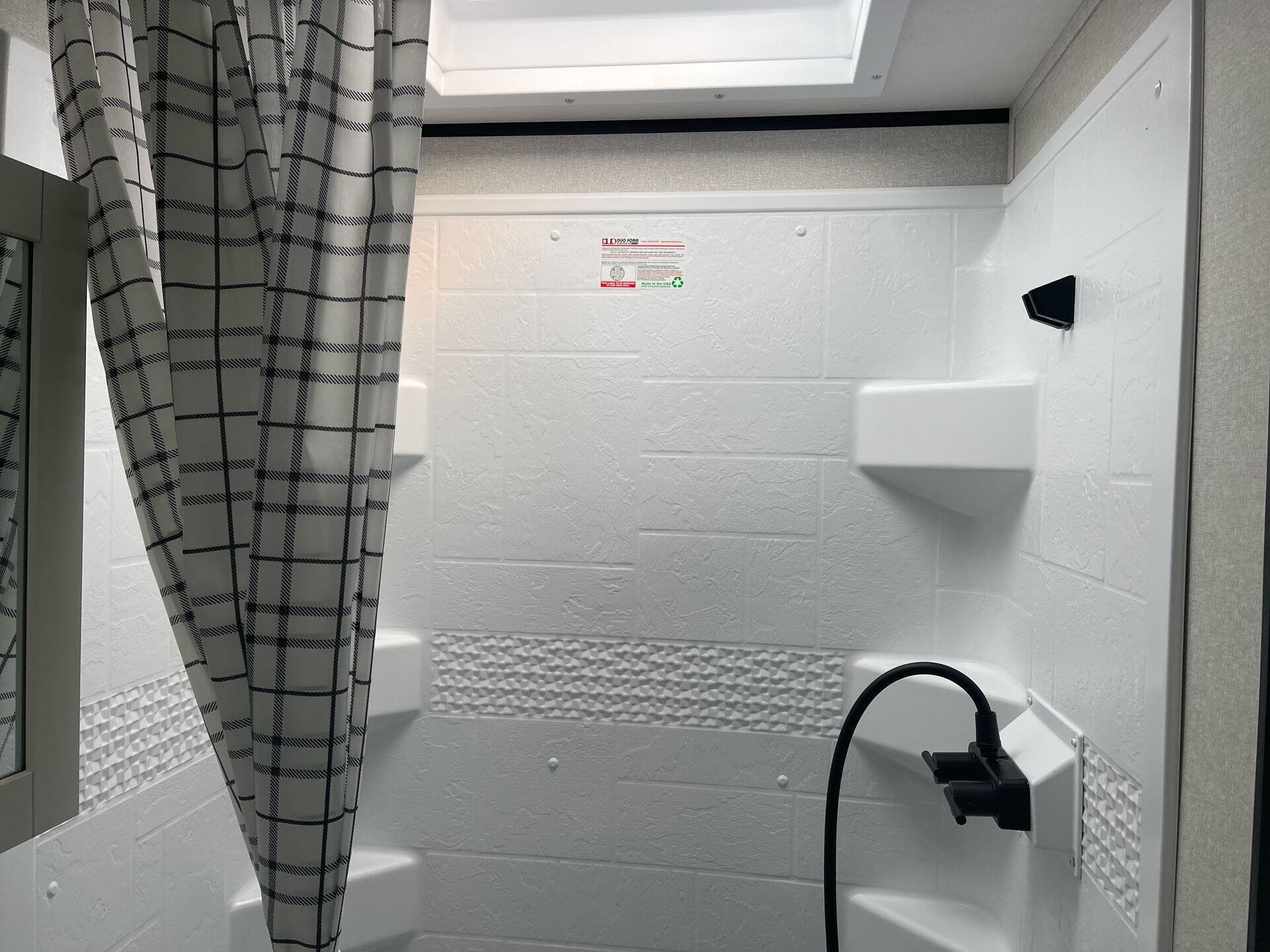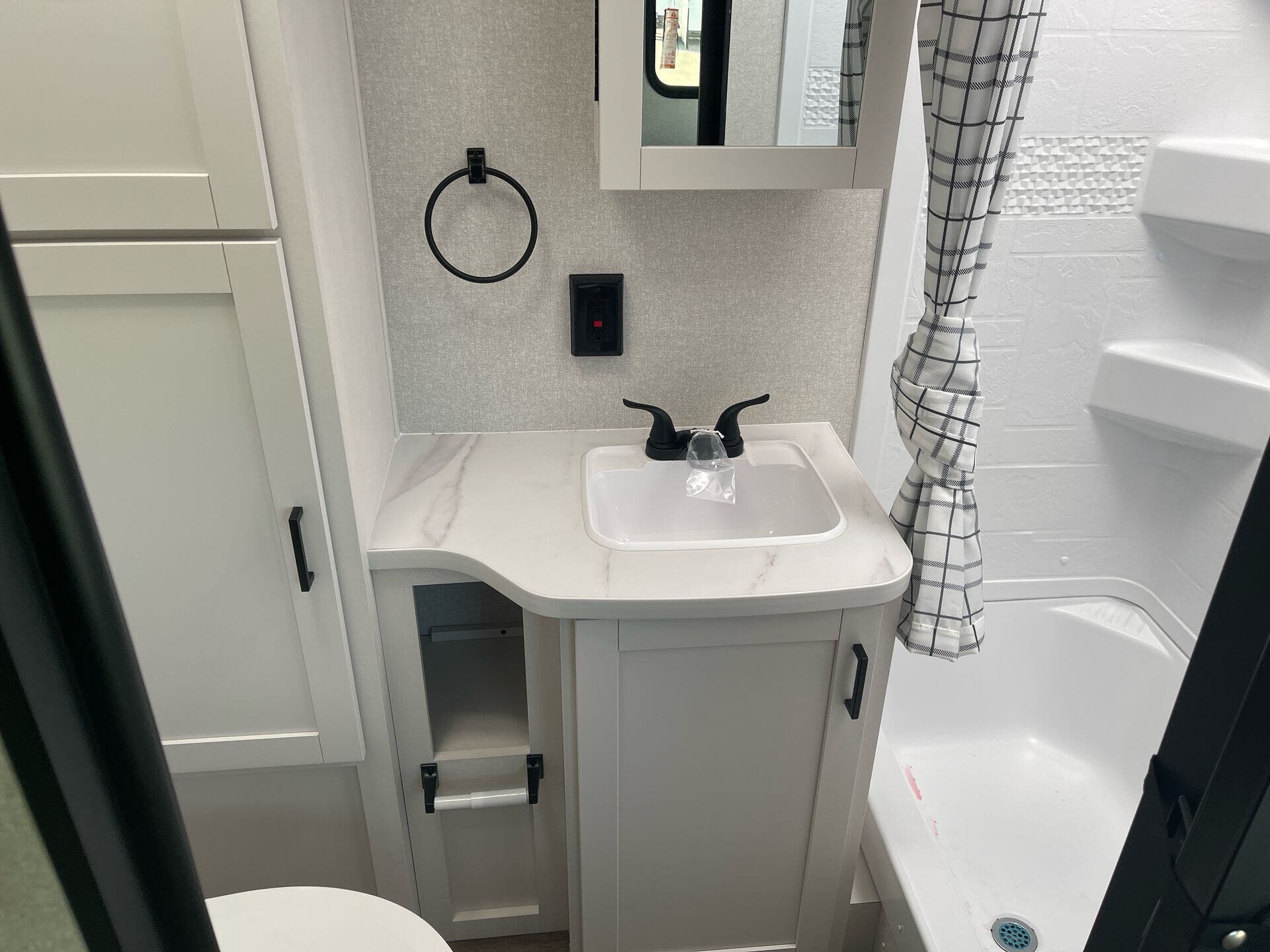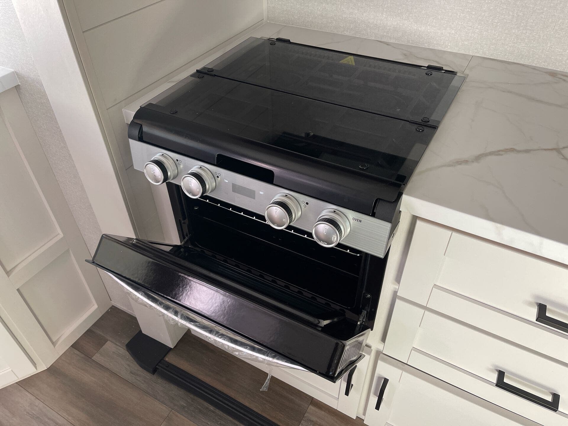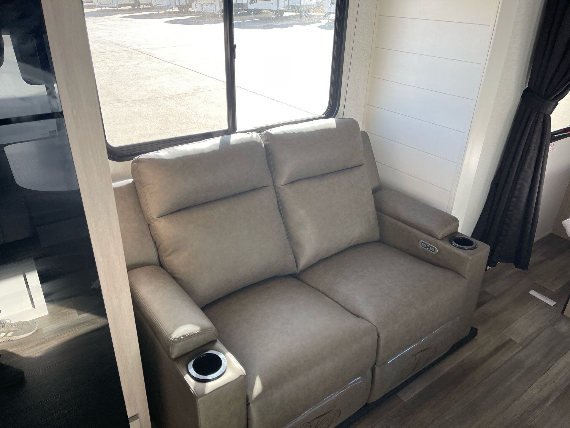 The 22MDS floorplan is designed for family comfort, featuring bunk beds and a queen-size mattress for flexible sleeping arrangements. Inside, you’ll find a complete kitchen setup with a refrigerator, microwave, and oven, plus a shower, toilet, and vanity for everyday living on the road. LED lighting and a skylight create a bright, welcoming atmosphere, while the compact yet functional layout makes efficient use of space for gatherings, meals, and downtime.