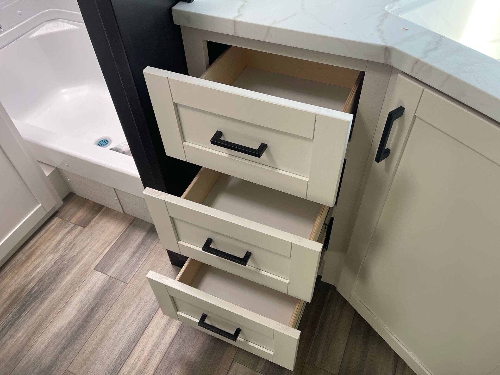Bunk Beds, Queen Mattress, Shower, Toilet, Vanity