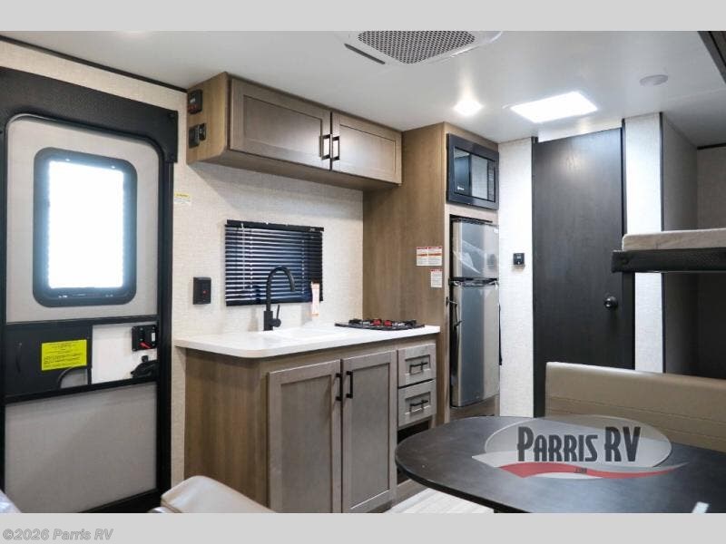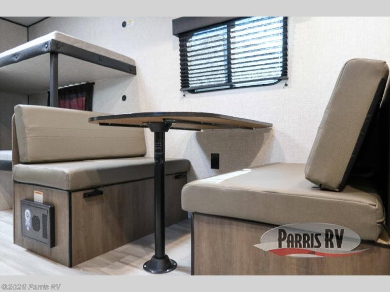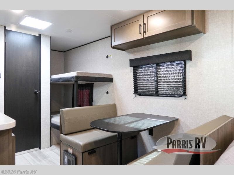 This Open Range Conventional COLT travel trailer is perfect for all your camping needs. There is a front queen bed and bunks beds for sleeping space, plus a booth dinette that will double as both dining and sleeping space for a guest or two little ones. A full kitchen includes a two burner cooktop and microwave to make meals each day, and the private bath with a tub/shower will make it easier than ever to wash up after a day outdoors.