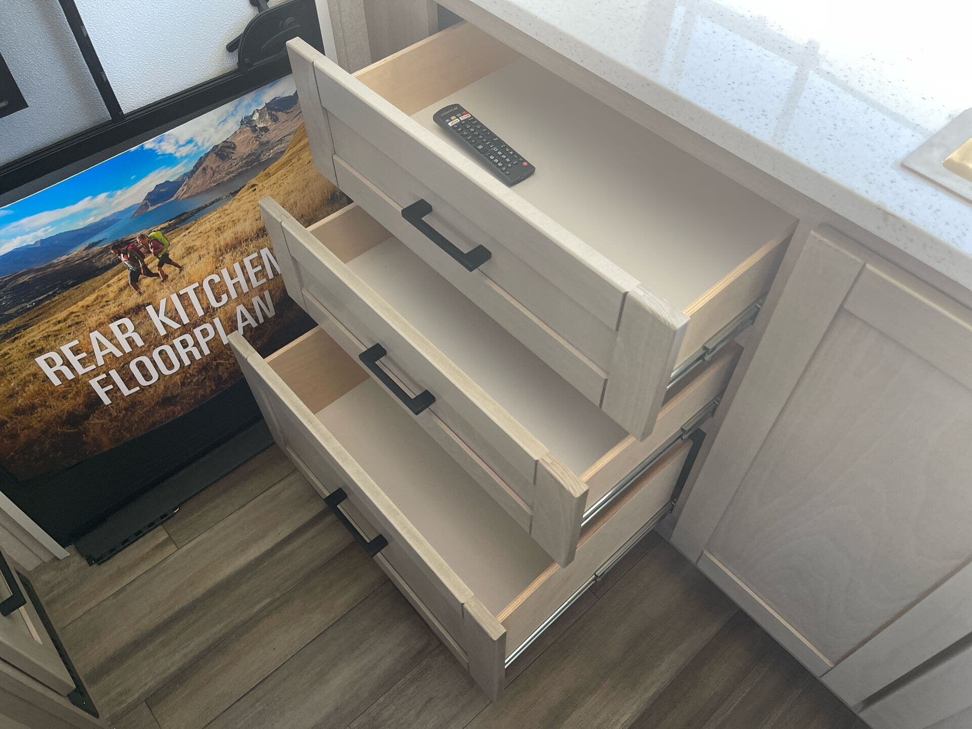 Dinette, Kitchen Sink, Murphy Bed, Queen Bed, Shower, Toilet