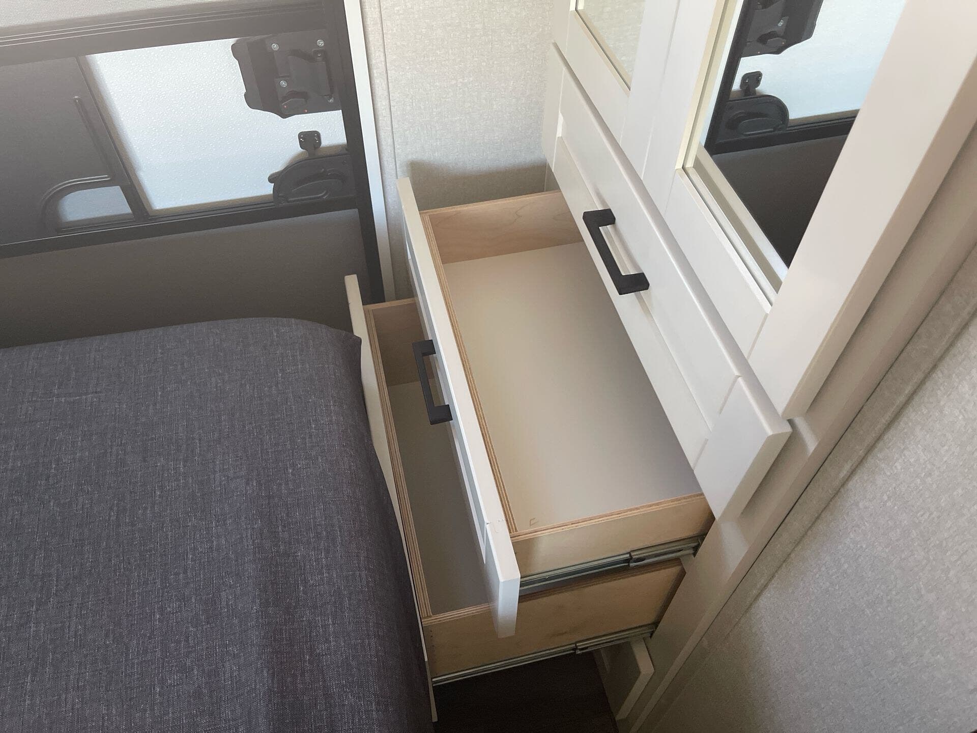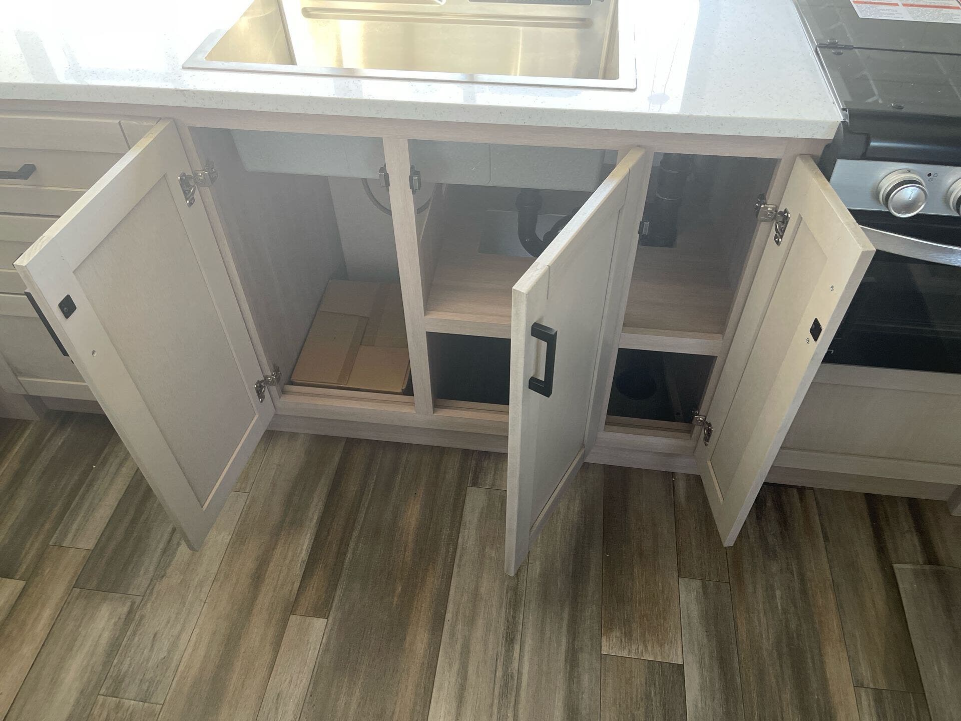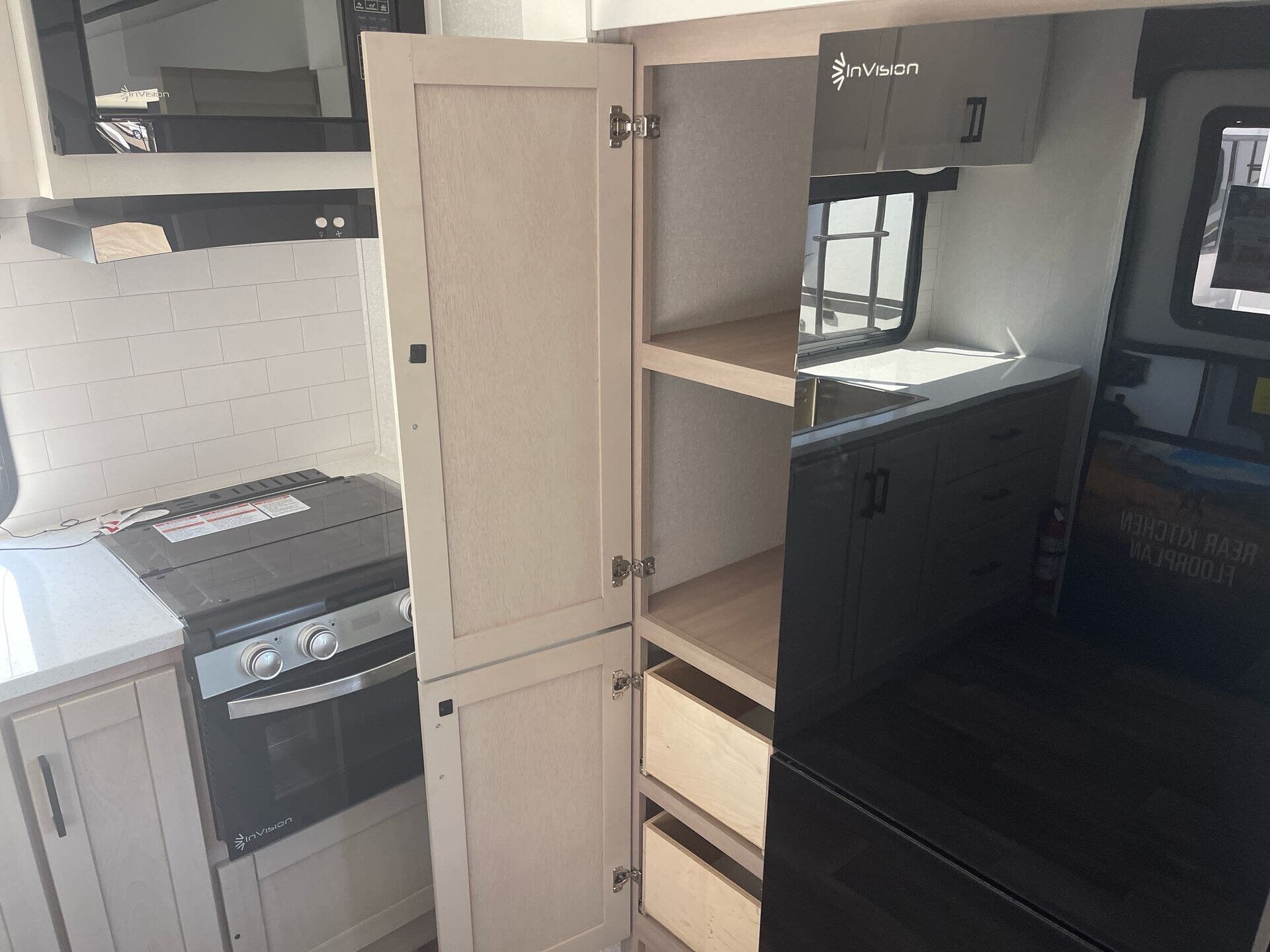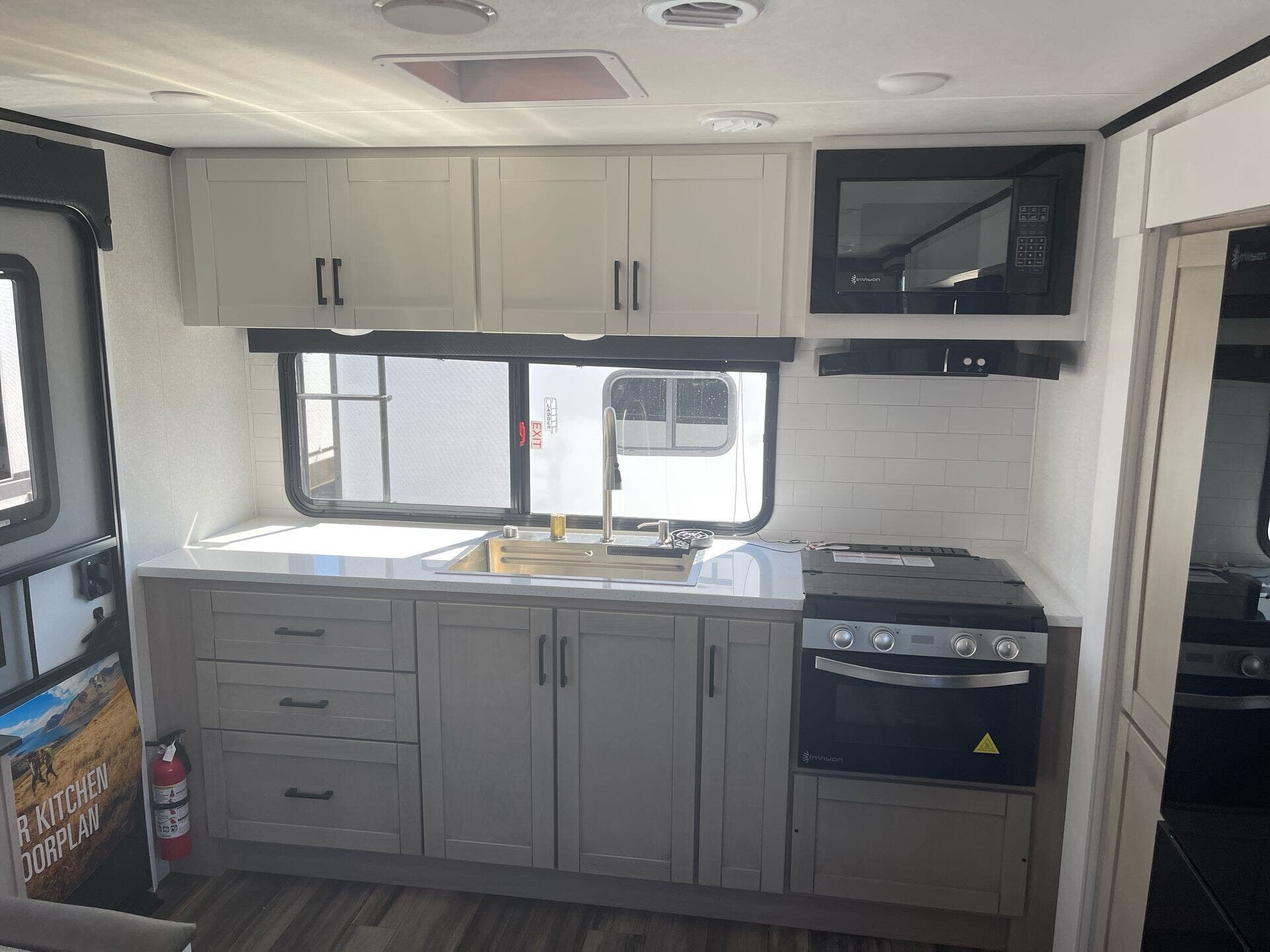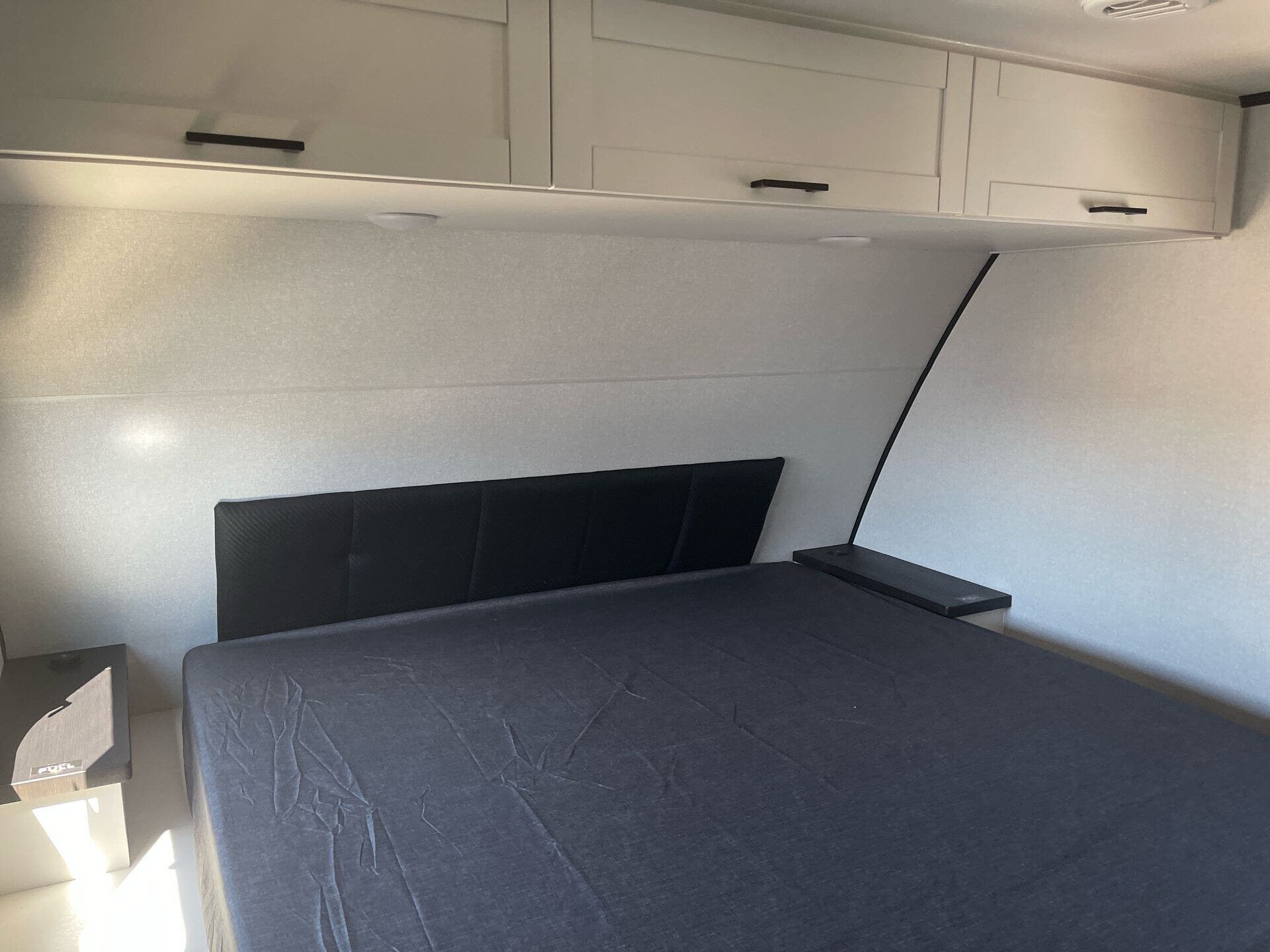 Built tough, it includes Highland Ridge’s TuffShell™ vacuum-bonded walls, a seamless PVC roof membrane, heated and enclosed underbelly for better cold-weather performance, and the Xtend Solar I package (200W solar + 30A controller) for off-grid capability. Utilities include a tankless water heater for endless hot showers.