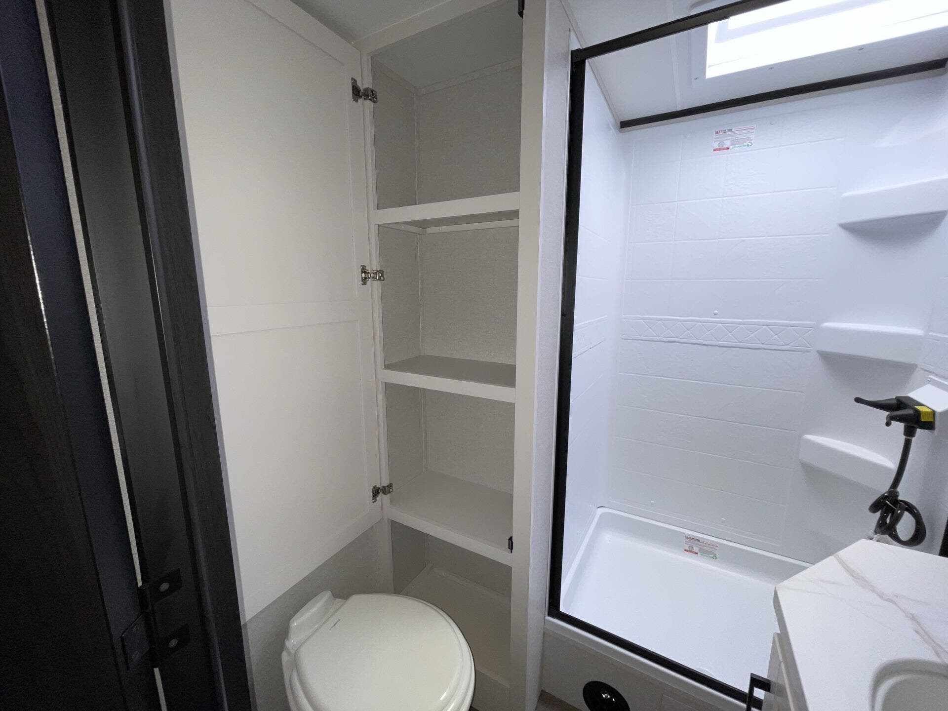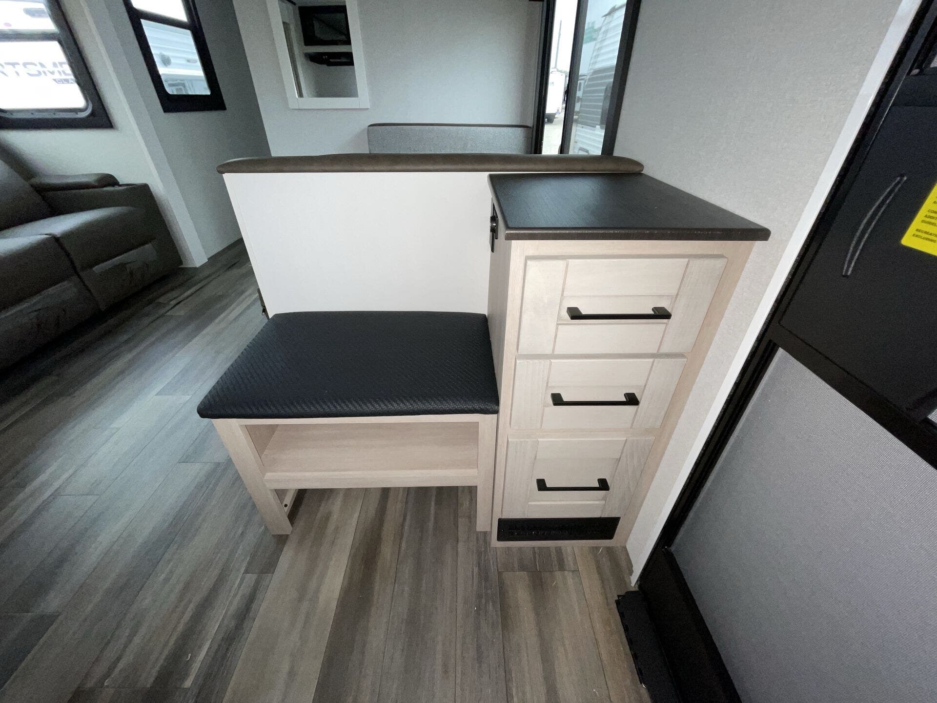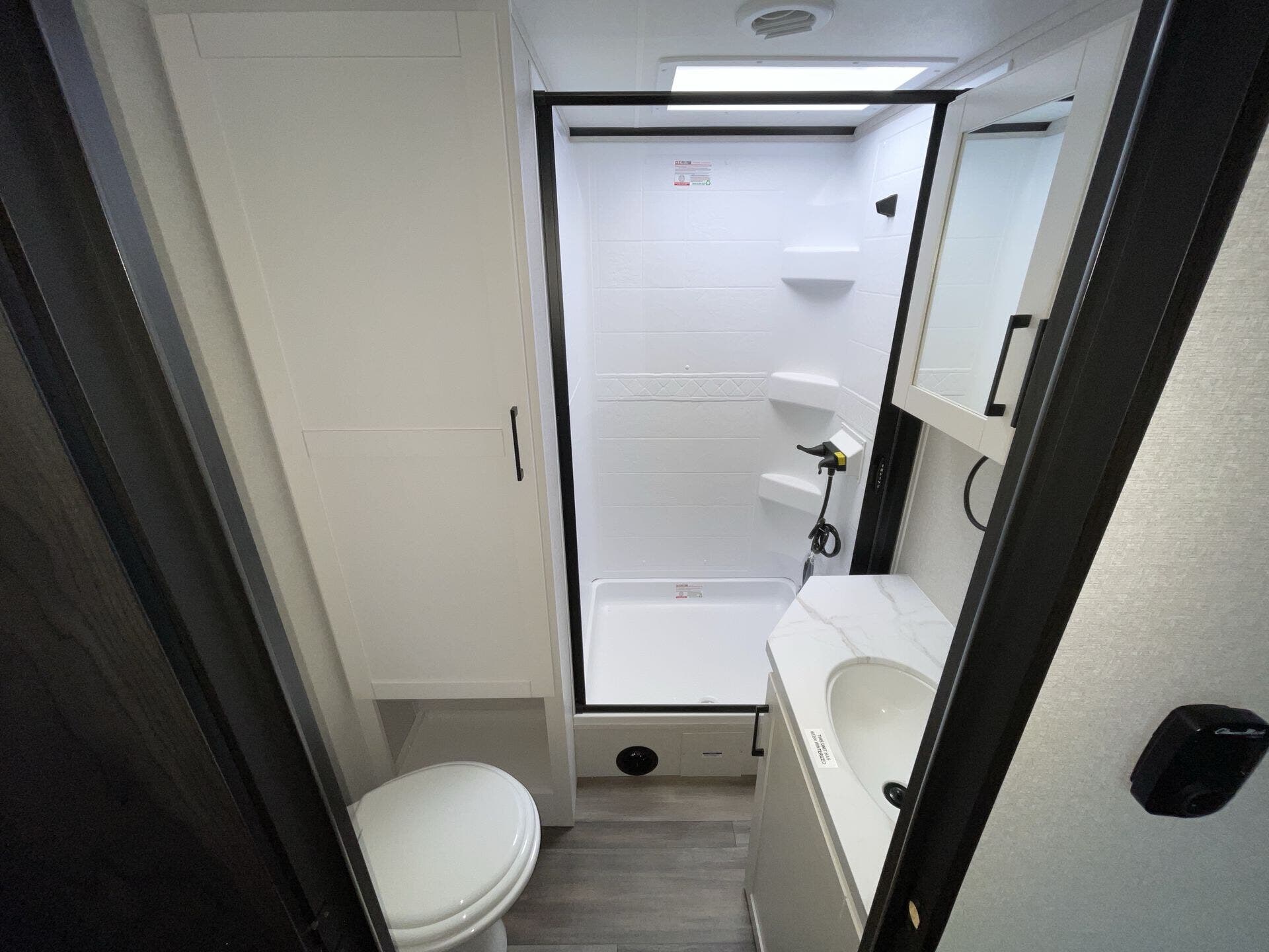 Bench Seat, Dinette Bed, Kitchen Sink, Medicine Cabinet, Overhead Cabinetry, Pantry, Queen Bed, Removable Table, Roof Vents, Shower, Theater Seating, Toilet, Wardrobe(s)