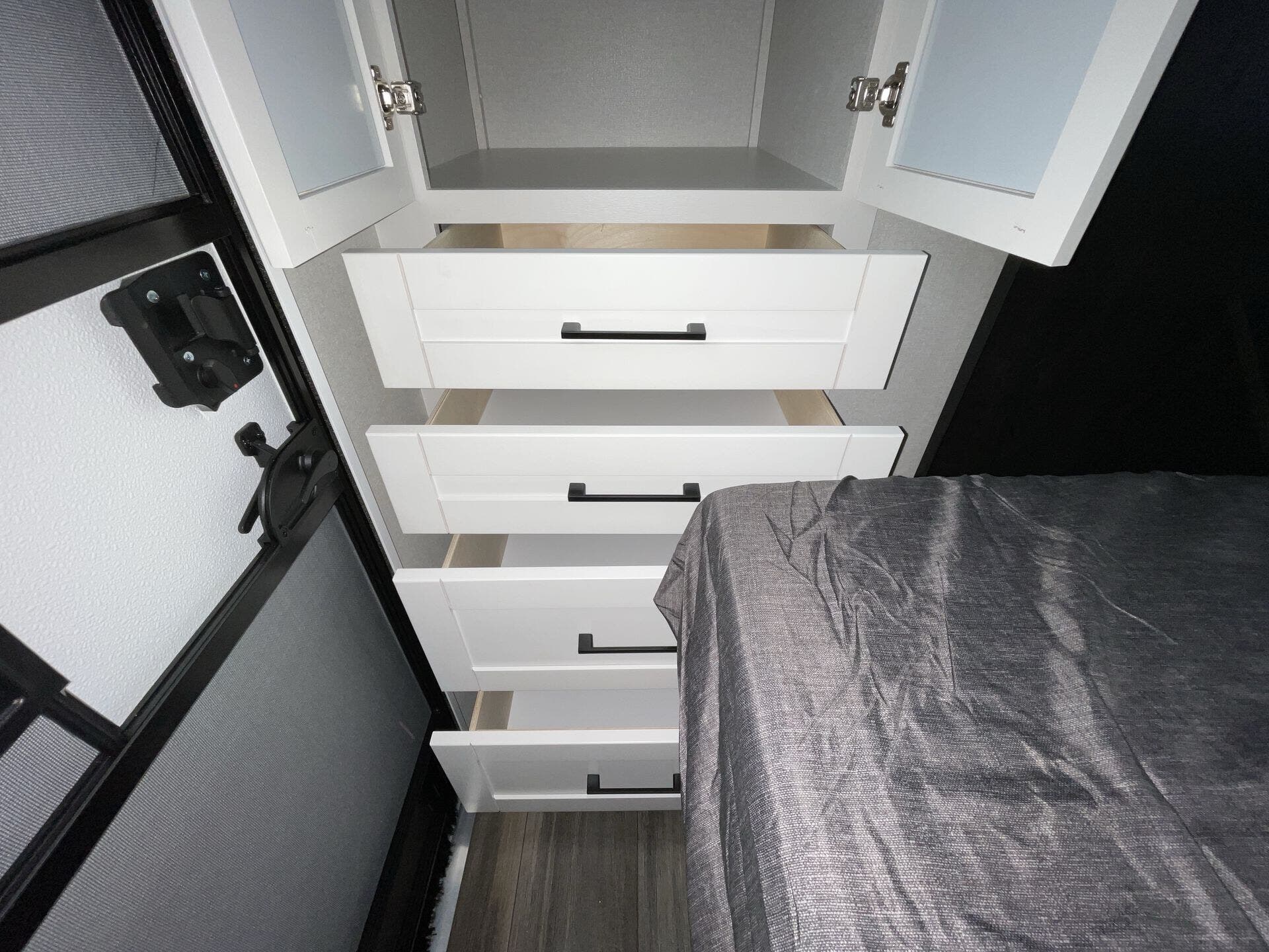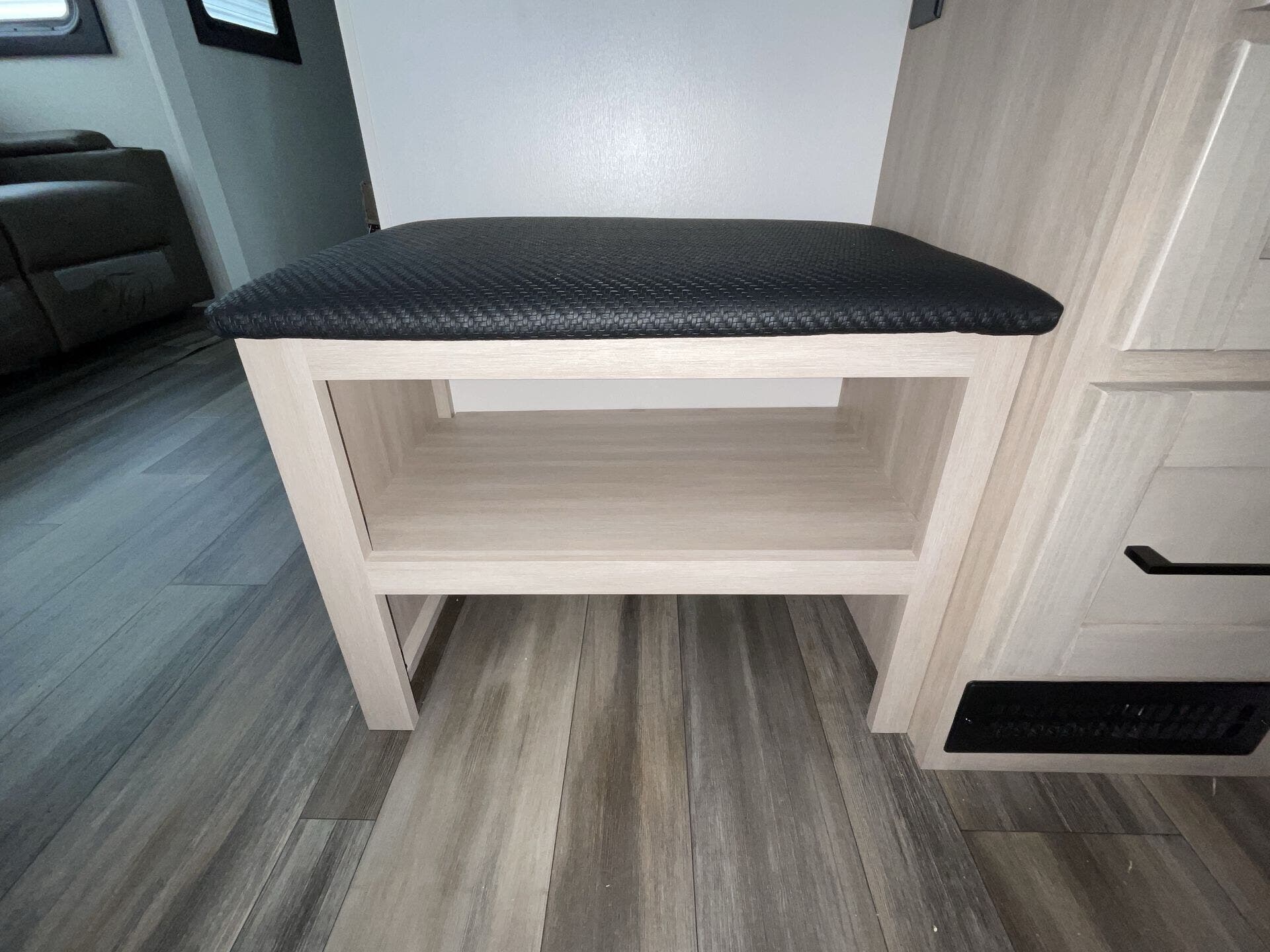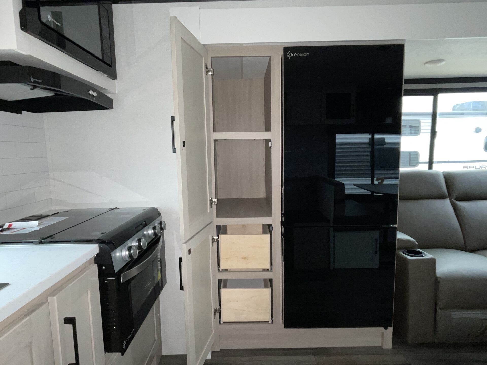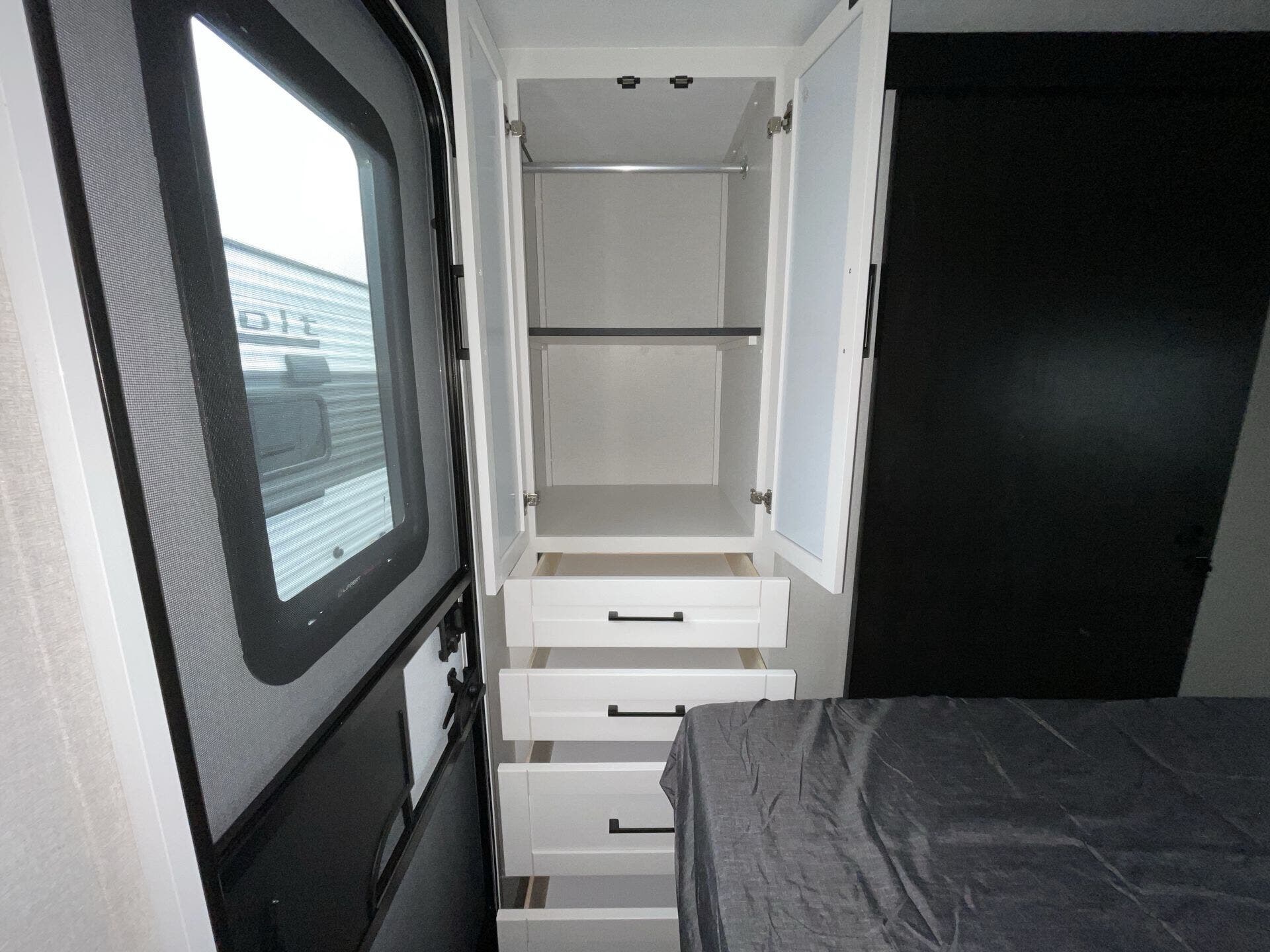 Bench Seat, Dinette Bed, Kitchen Sink, Medicine Cabinet, Overhead Cabinetry, Pantry, Queen Bed, Removable Table, Roof Vents, Shower, Theater Seating, Toilet, Wardrobe(s)