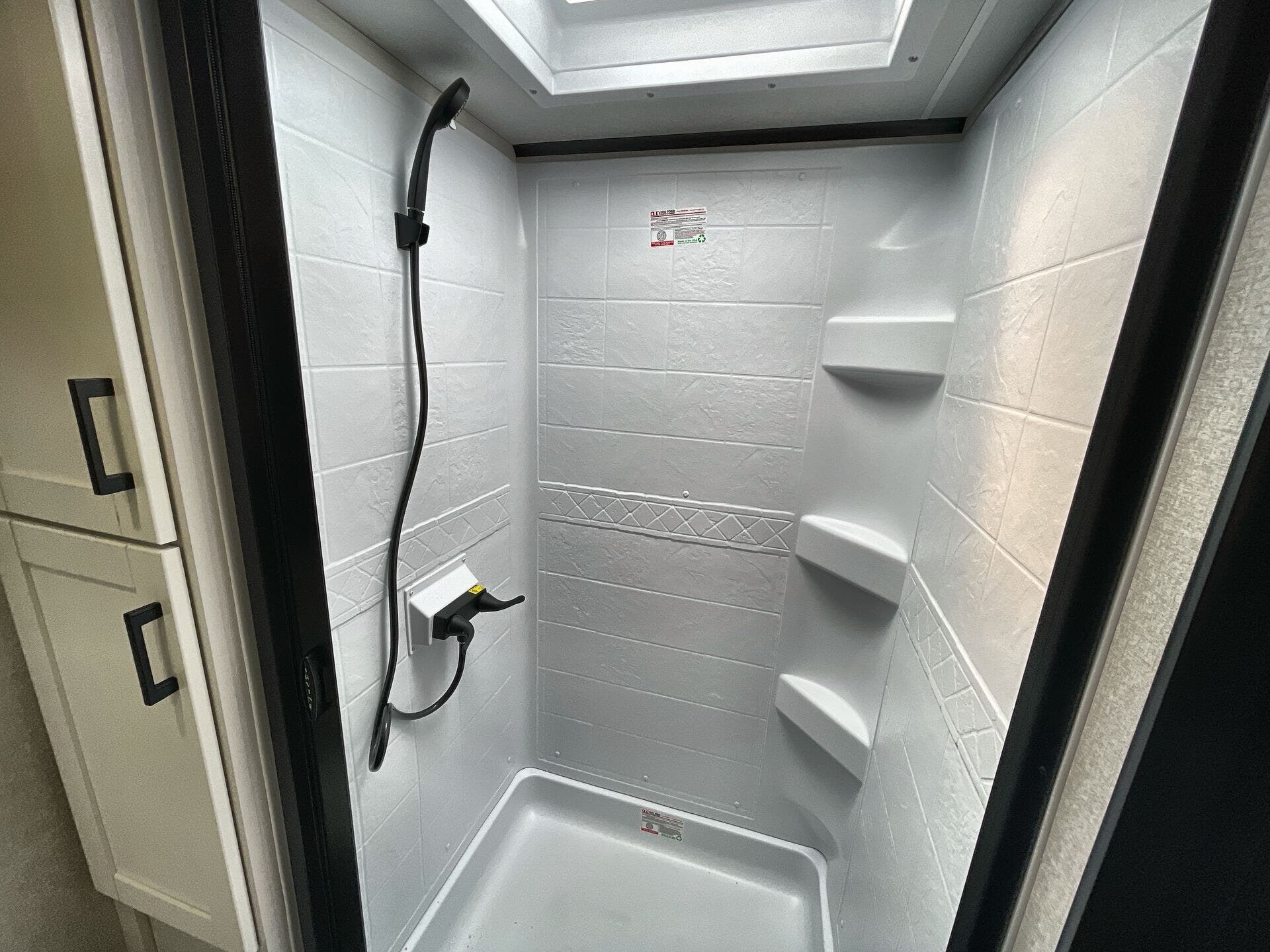 - TV for on-the-road entertainment and a Medicine Cabinet for convenient bathroom storage