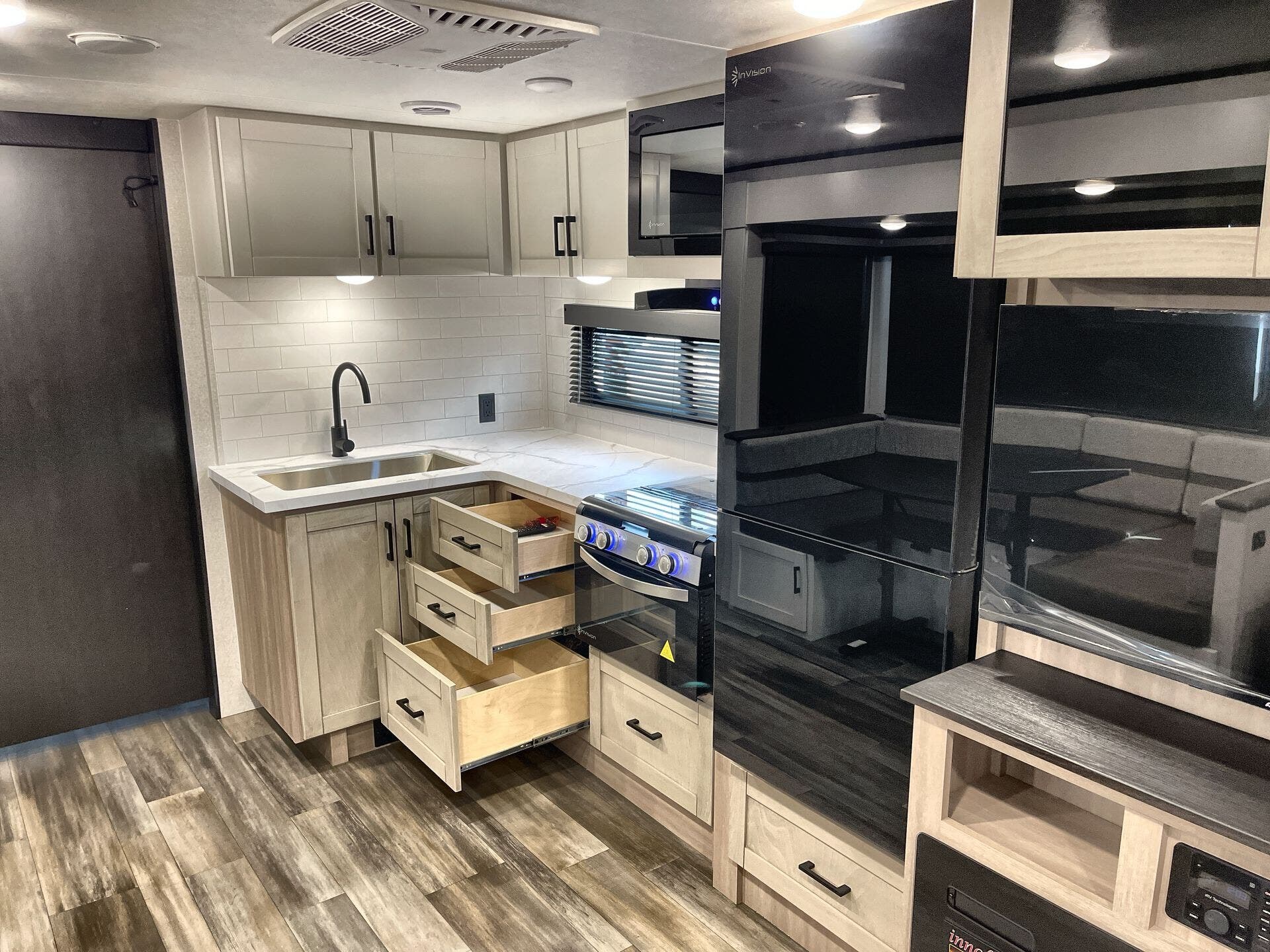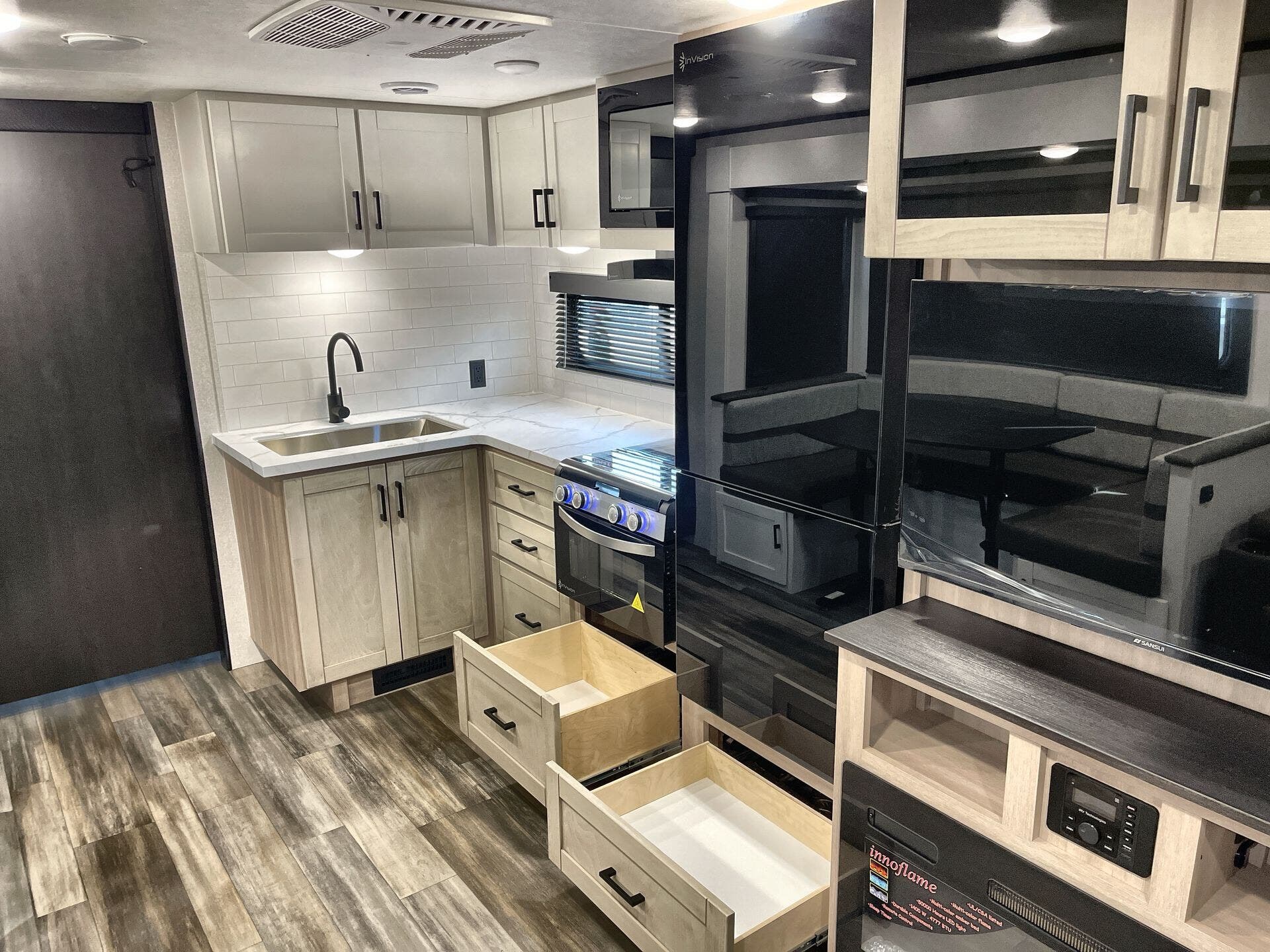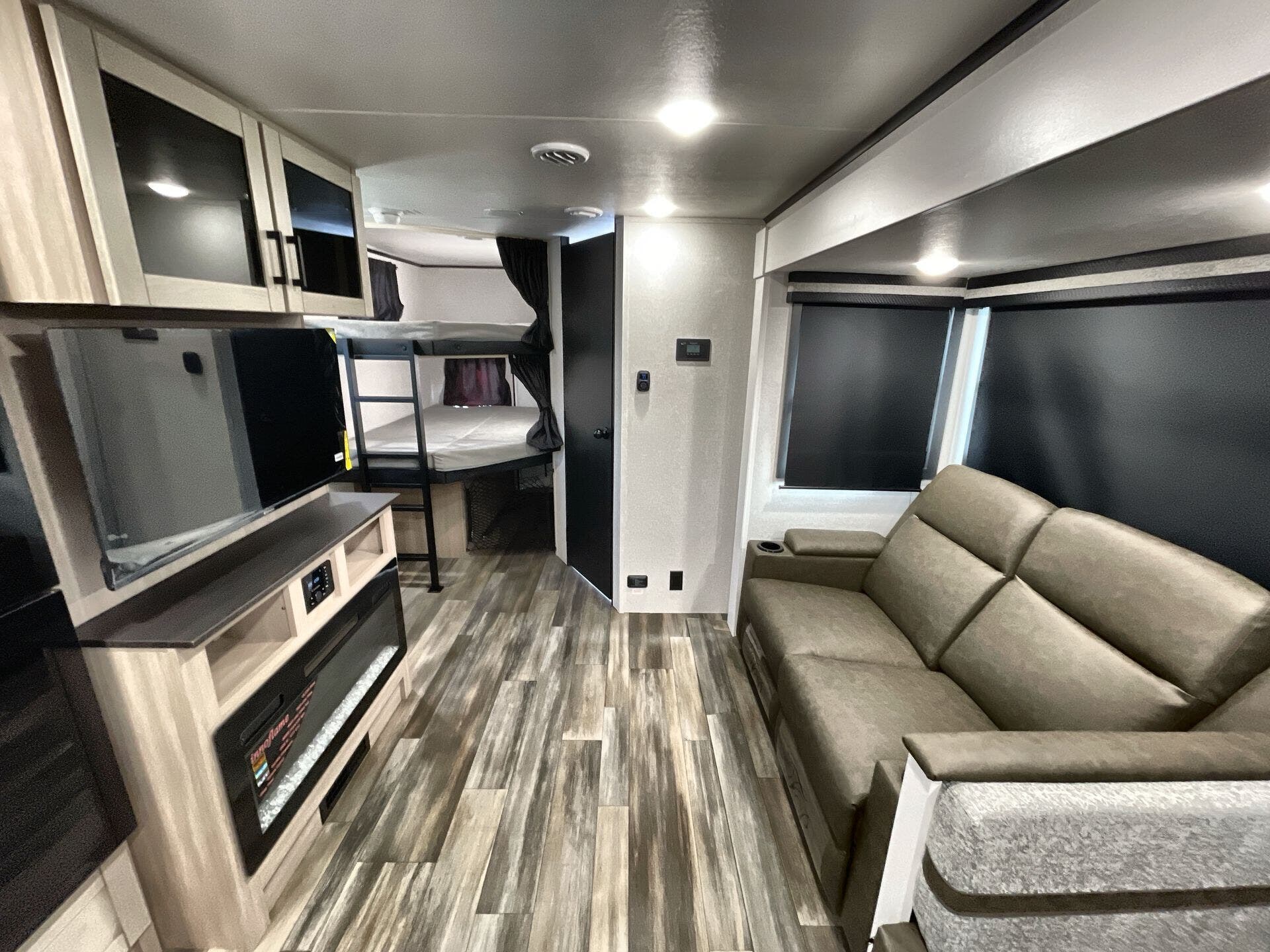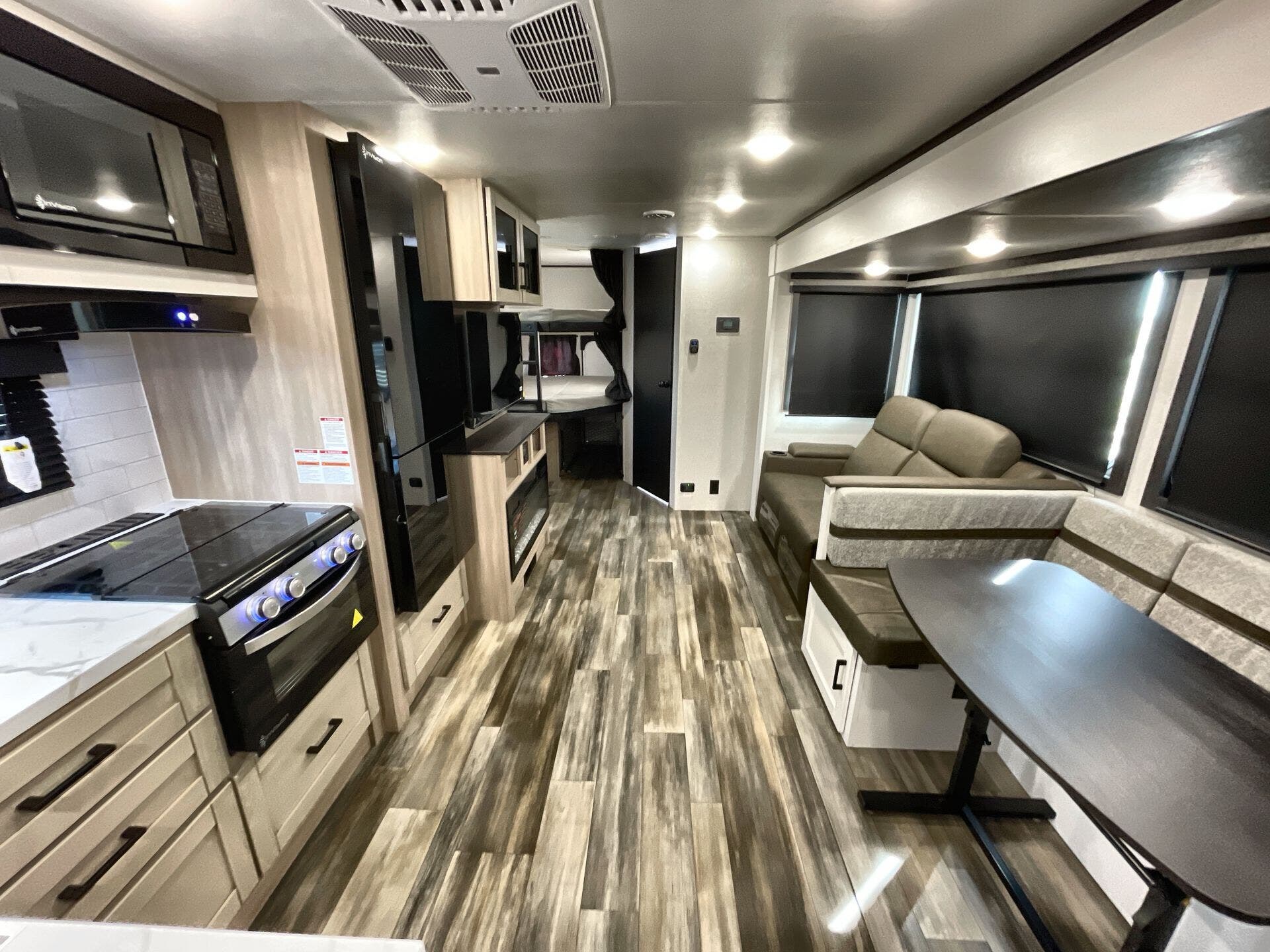 This RV combines family-friendly sleeping arrangements with a practical, feature-rich kitchen and living space. The Open Range Light line from Highland Ridge is known for reliable builds, thoughtful layouts, and strong resale value. The 270DBL’s front bedroom, rear bath configuration, and mid-dining/kitchen area create a balanced flow that’s easy to live in, whether you’re weekend cruising or embarking on extended adventures.