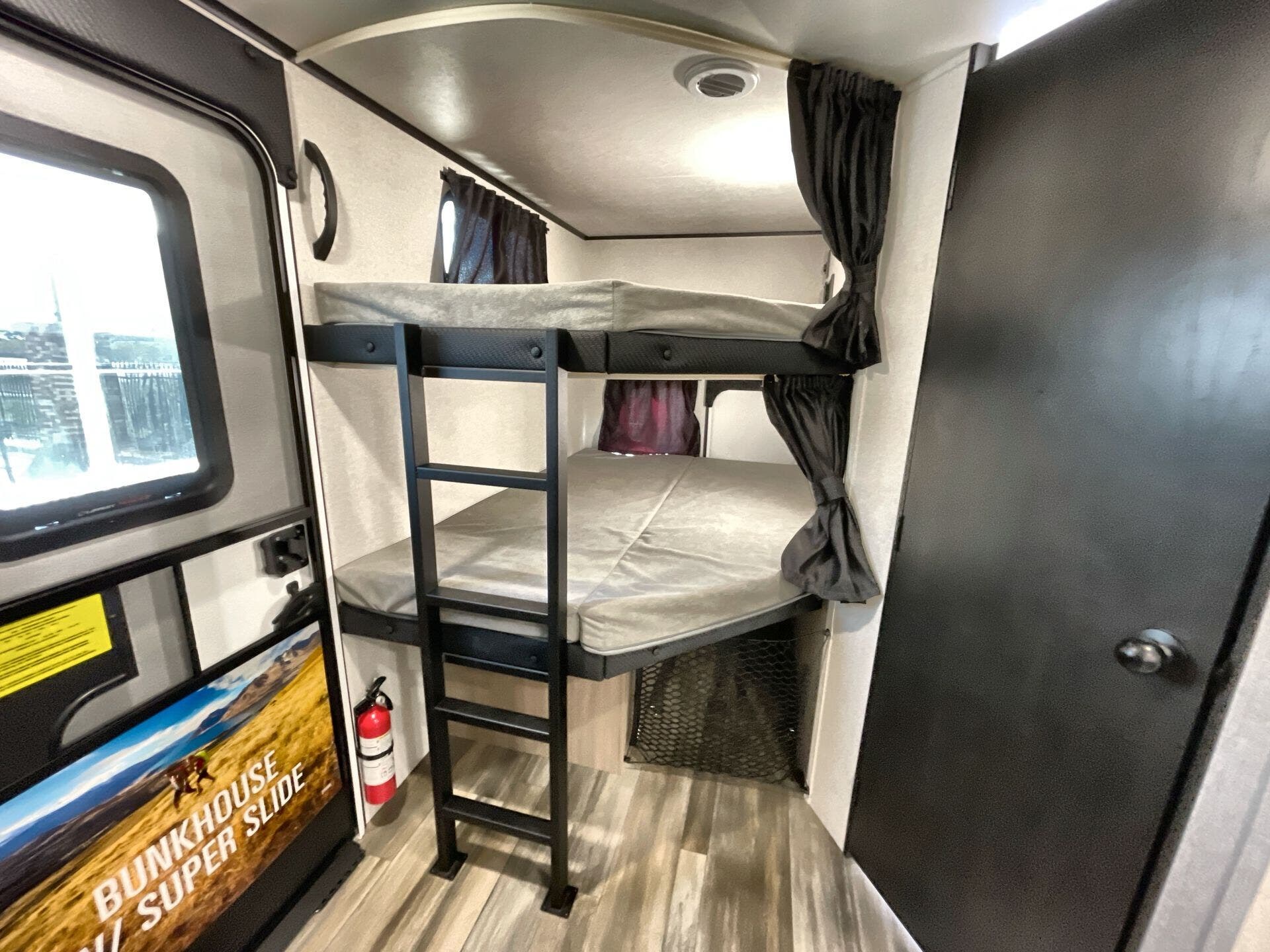- Sleeping zones: Queen Bed in the front, Bunk Beds for kids or guests
