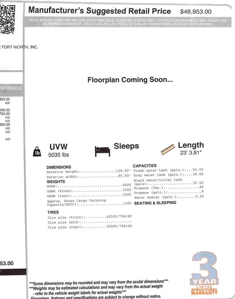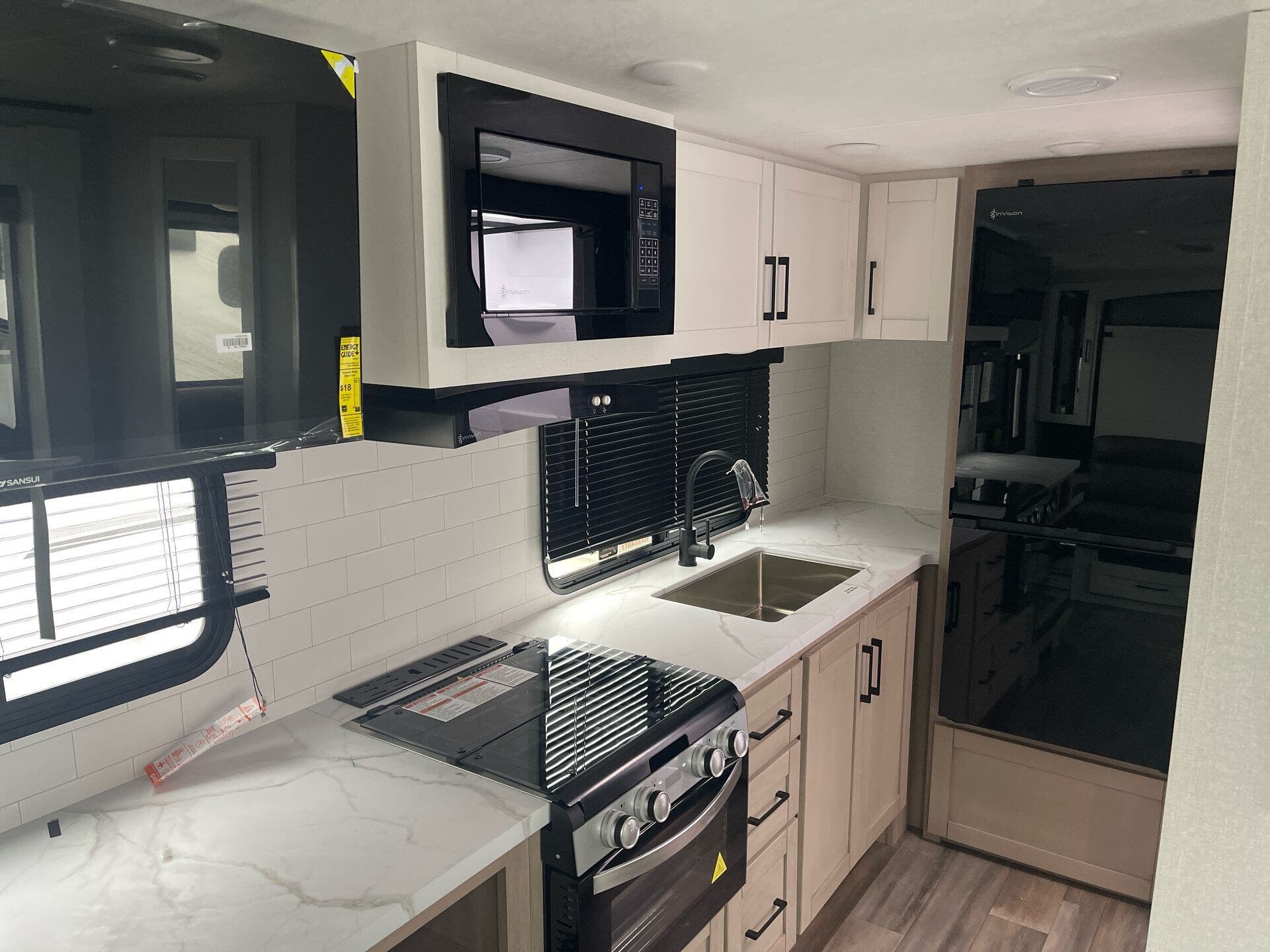 - Reliable utilities: 55 gallons of fresh water, 30 gallons black water, and 38 gallons grey water capacity.