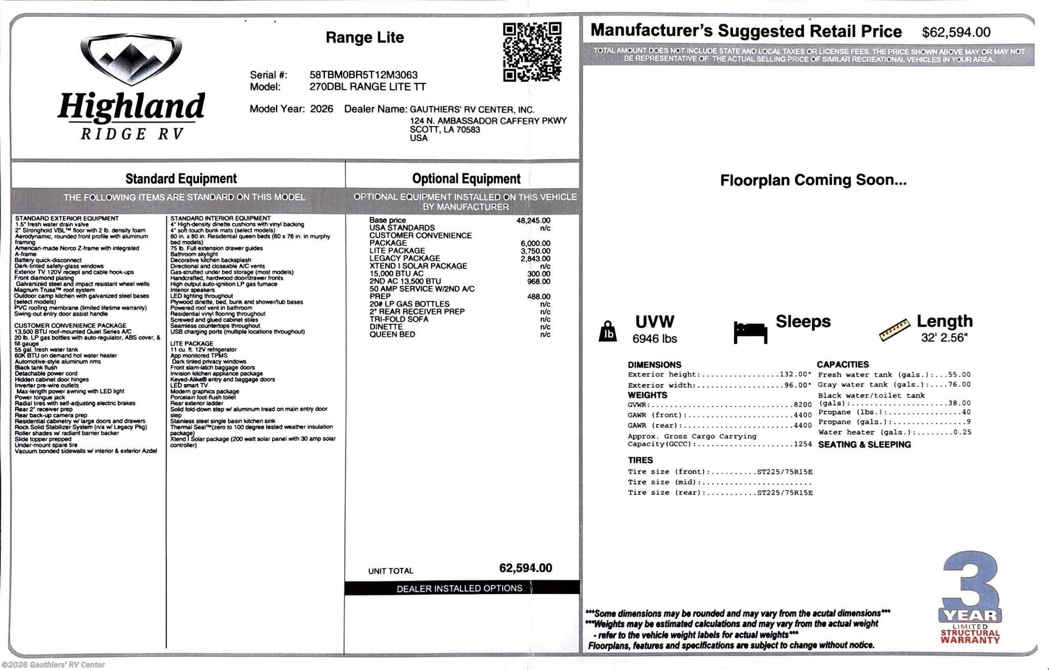 - MSRP $62,594.00