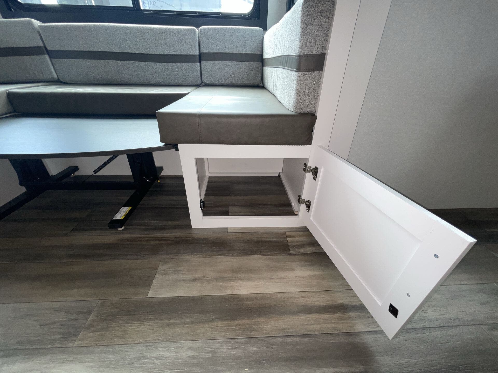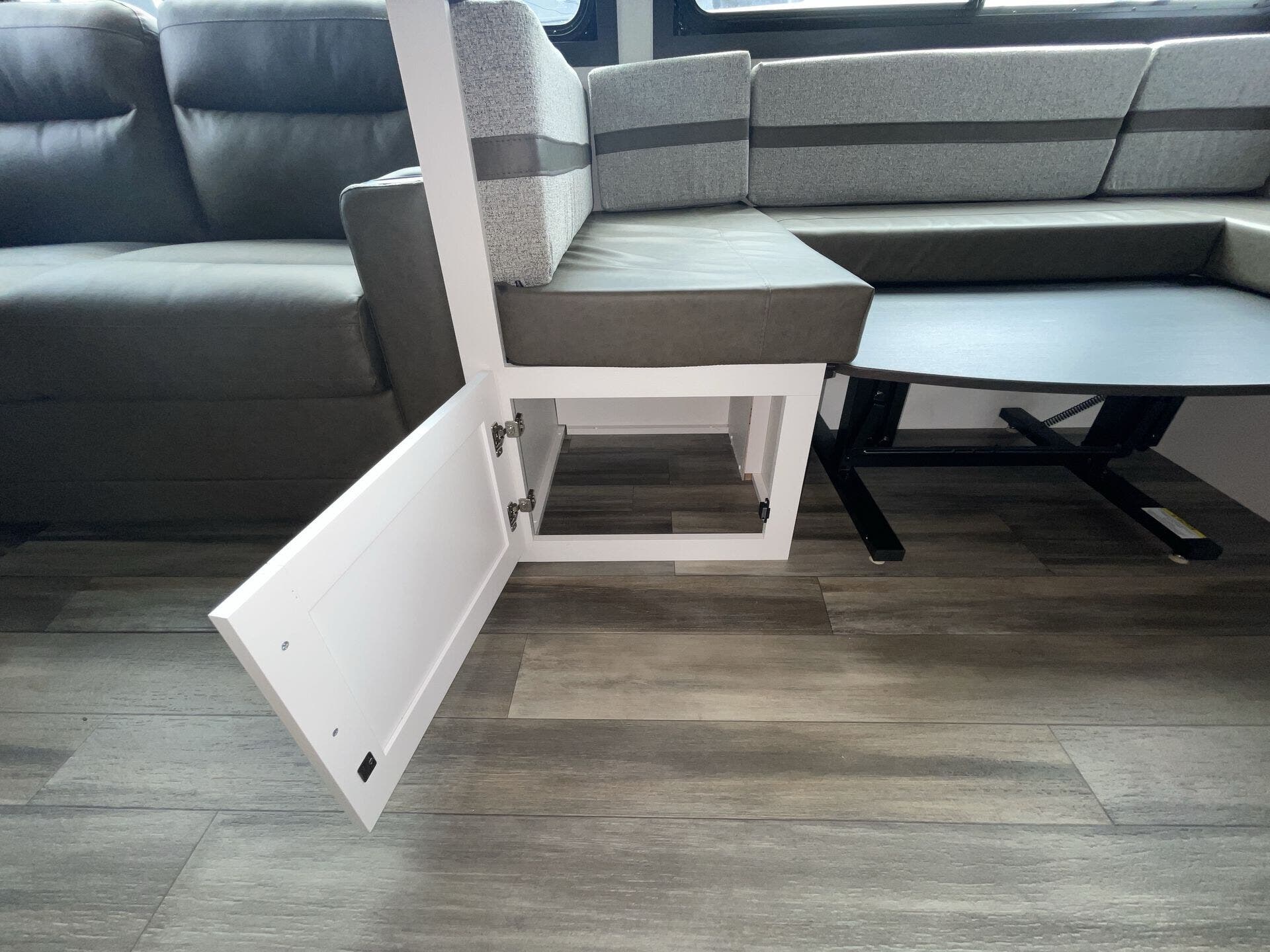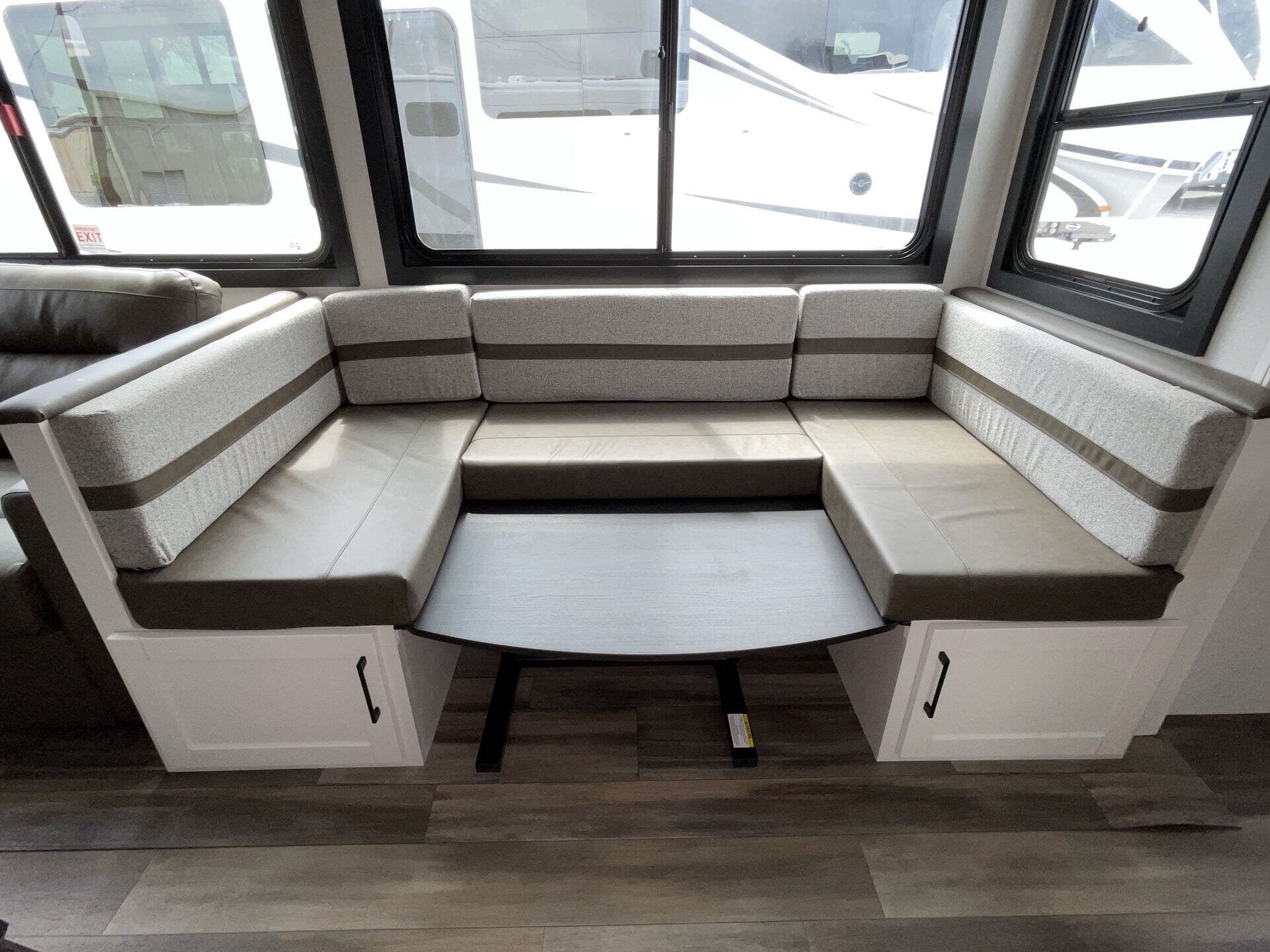 - U-shaped dinette for dining, lounging, and extra sleeping