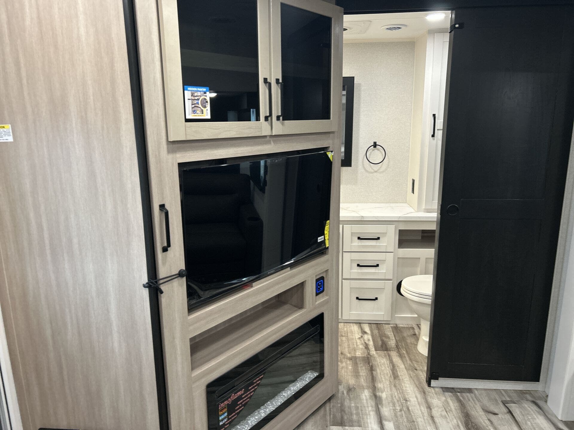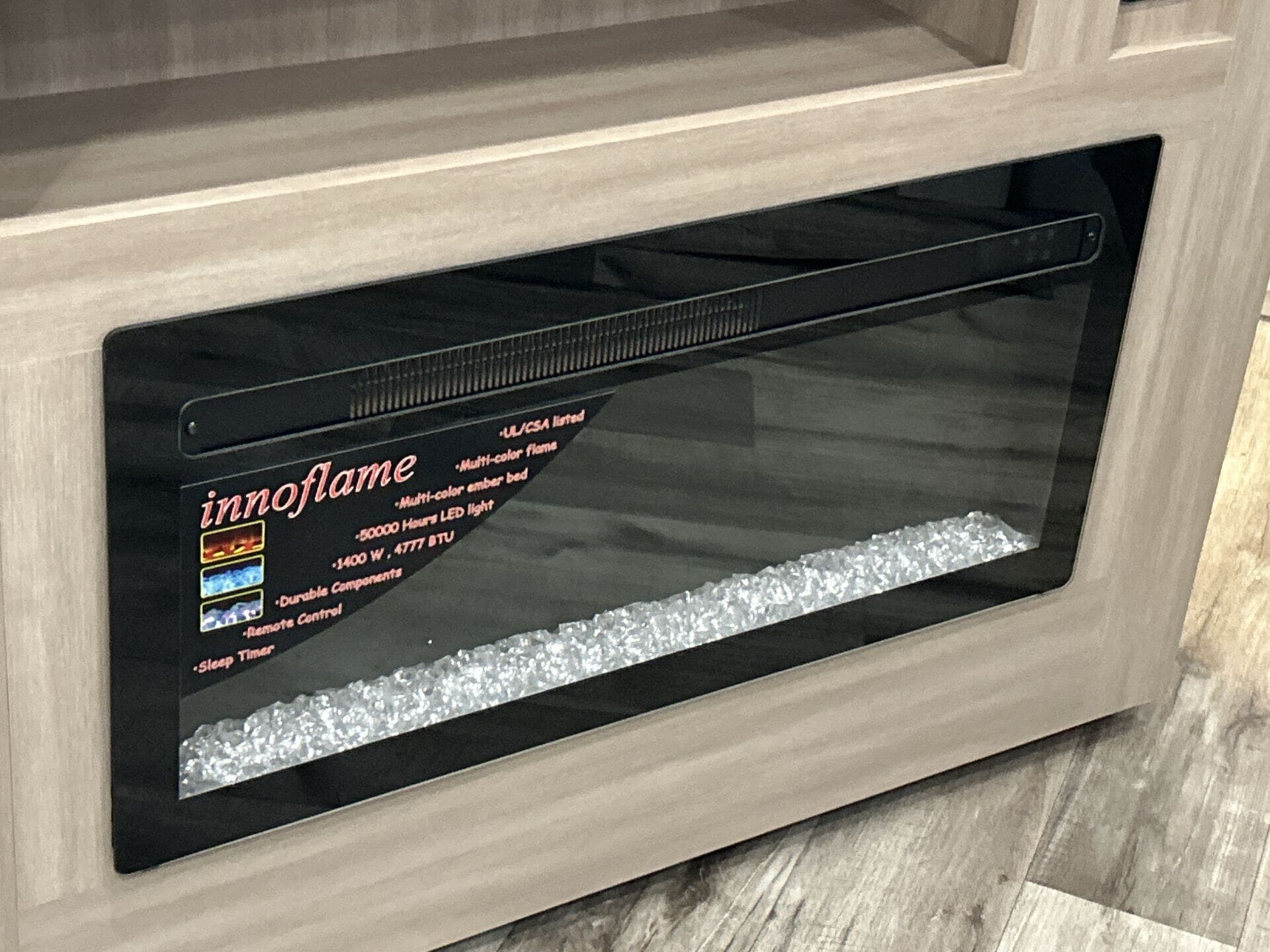 Bench Seat, Fireplace, Free Standing Dinette w/Chairs, Glass Shower Door, Hide-A-Bed, Medicine Cabinet, Non-Smoking Unit, Pantry, Queen Bed, Roof Vents, Shower, Sofa Bed, Solid Surface Countertops, Toilet, Wardrobe(s)
