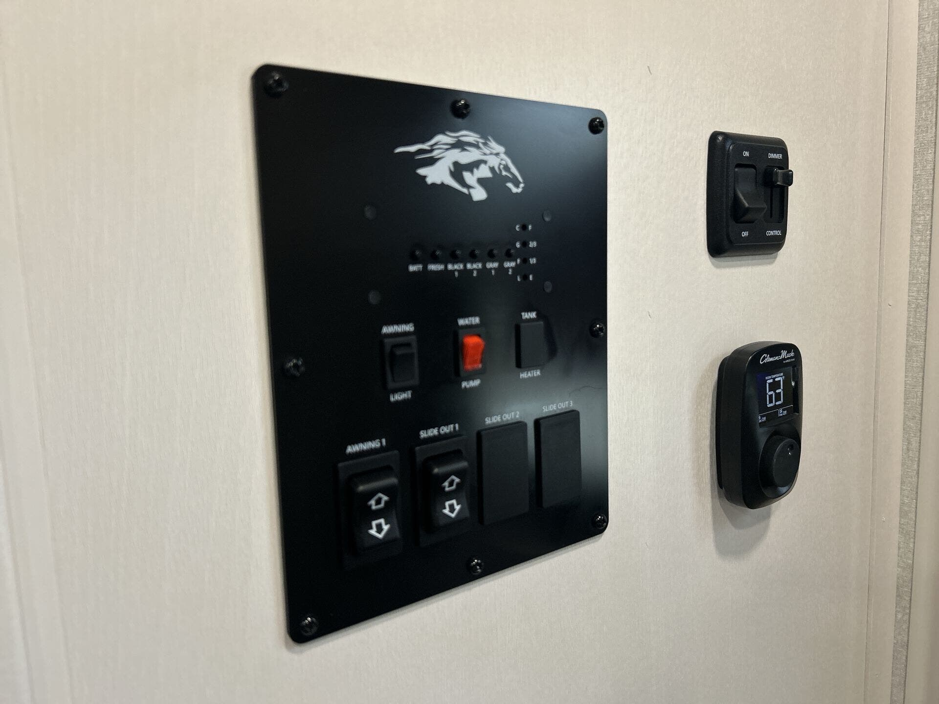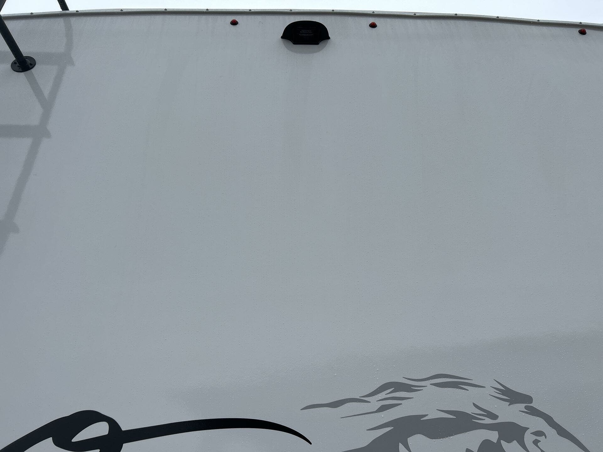 - Exterior features: Power awning, roof deck, roof vents, slam latch baggage doors
