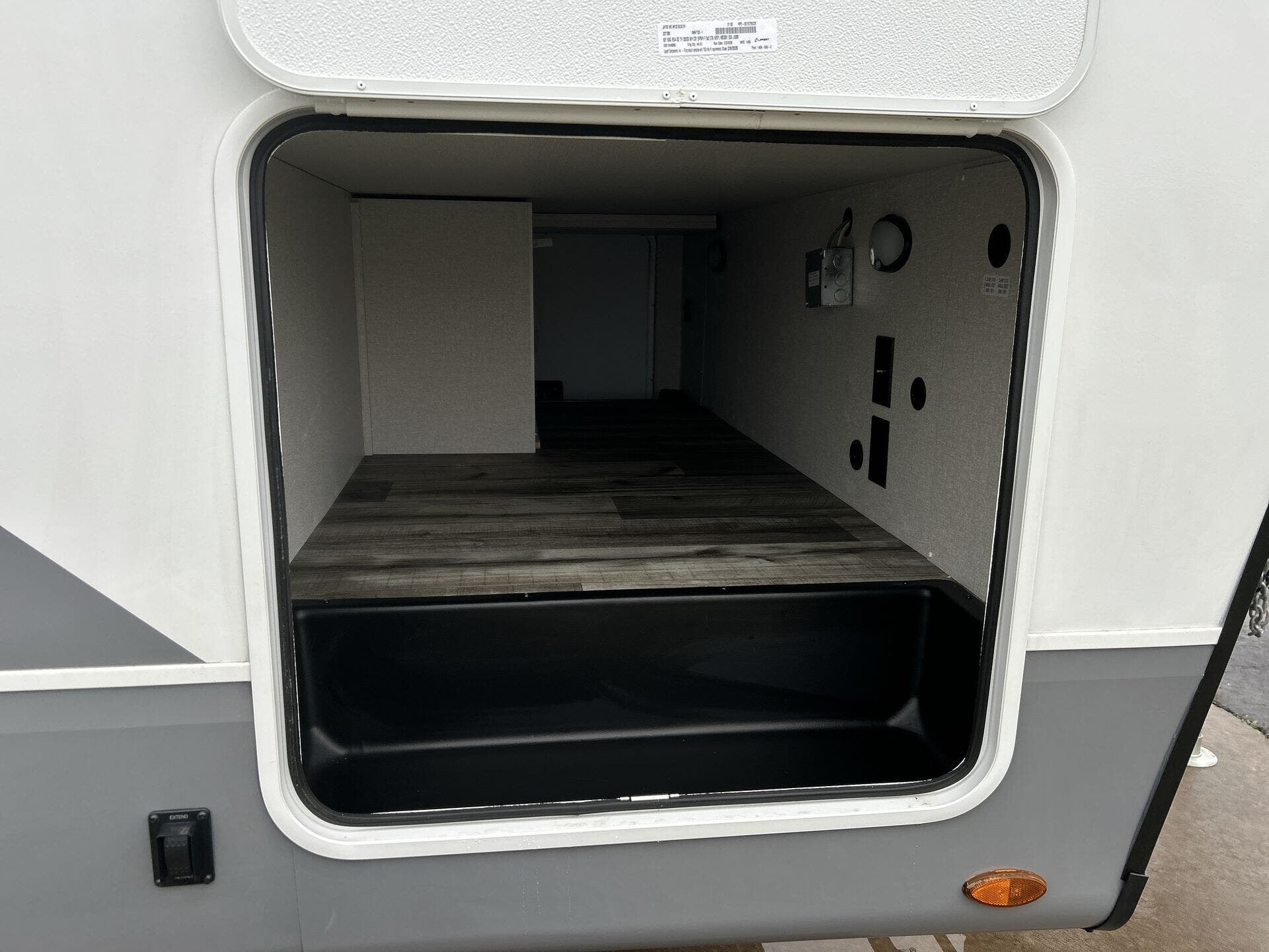 Awning, Black Tank Flush, Detachable, Detachable Power Cord, Heated Underbelly, Hitch, Ladder, Leveling Jacks, Pass Thru Storage, Power Awning, Roof Deck, Roof Vent, Screen Door, Skylight, Slam Latch Baggage Doors, Slideout, Spare Tire Kit -