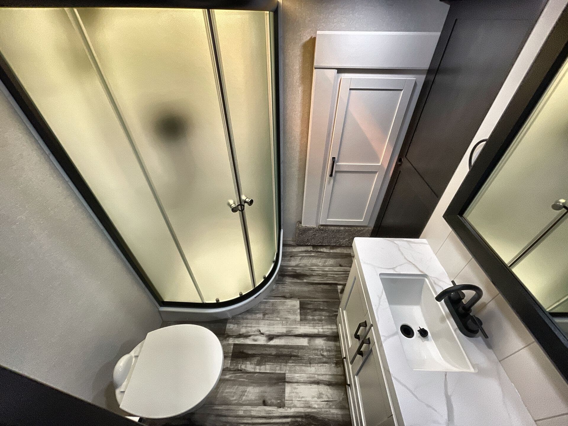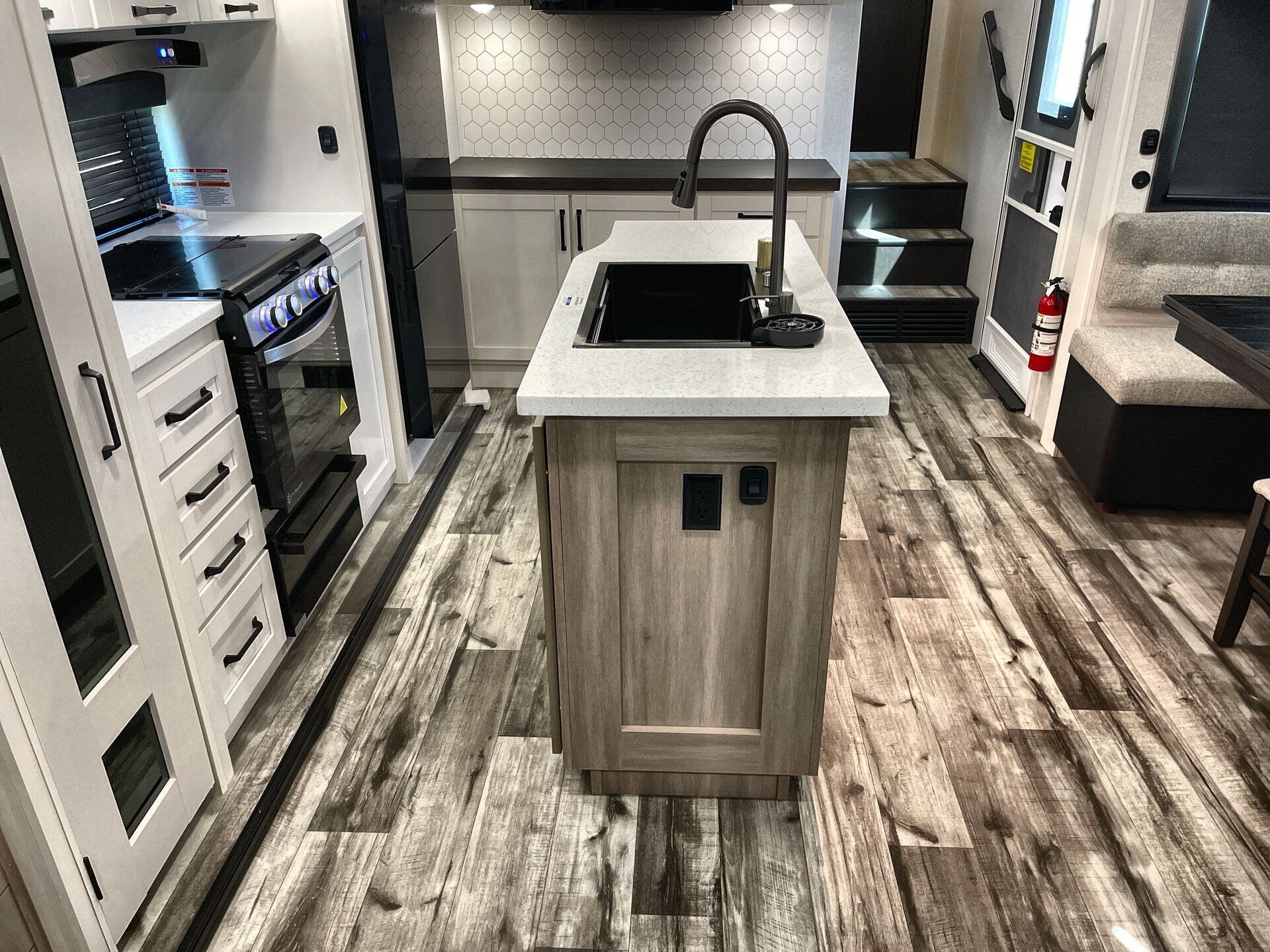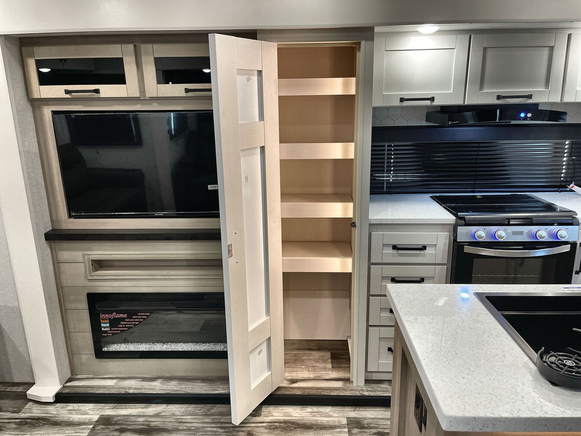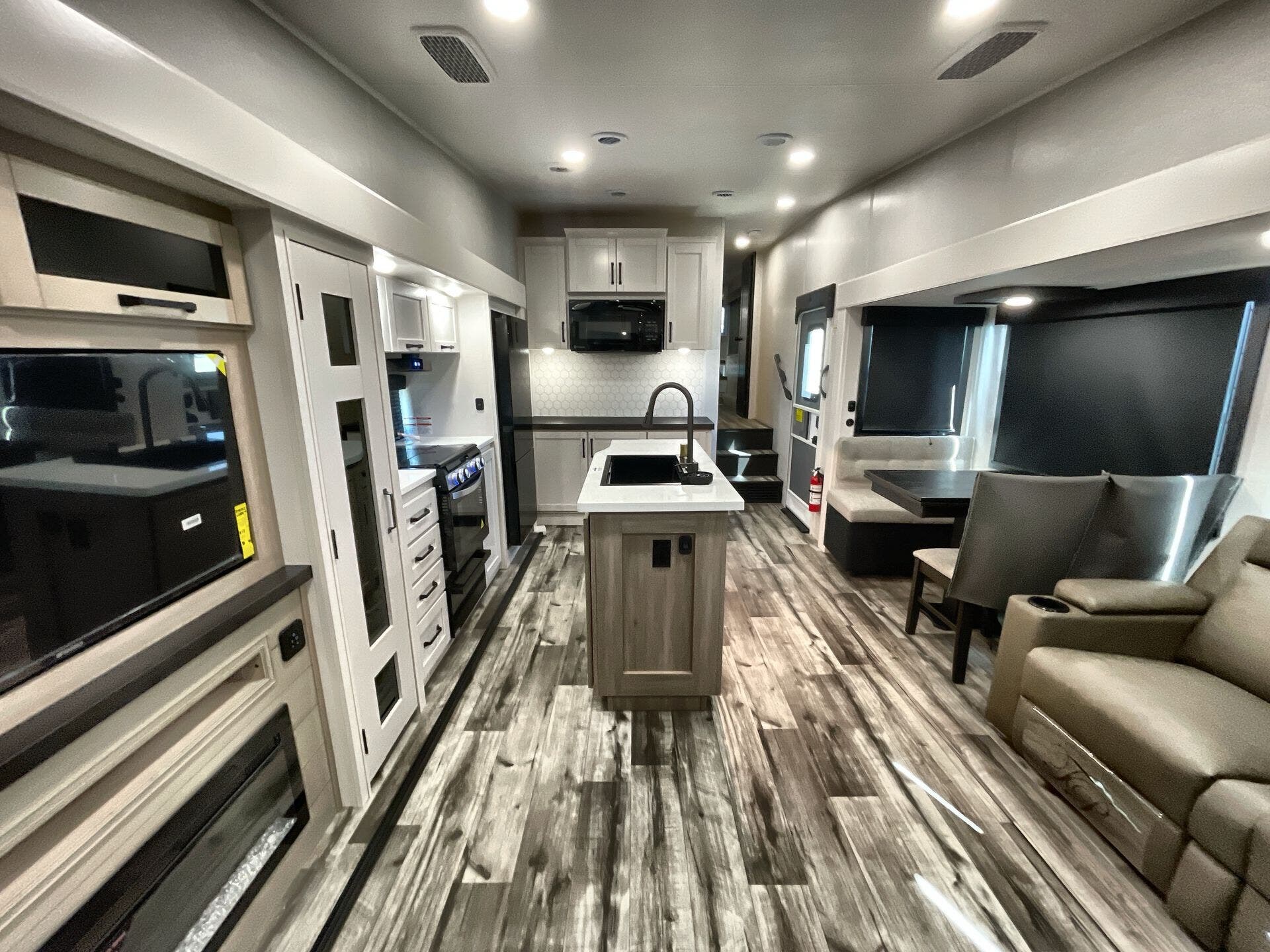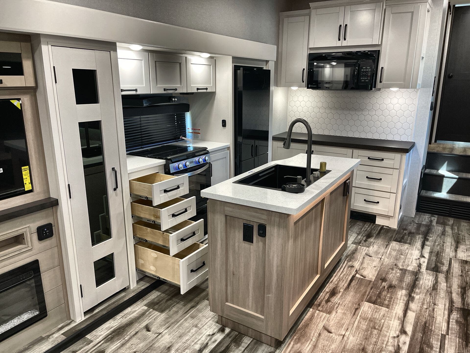 Free Standing Dinette w/Chairs, Island Kitchen, Kitchen Sink, Medicine Cabinet, Pantry, Shower, Toilet