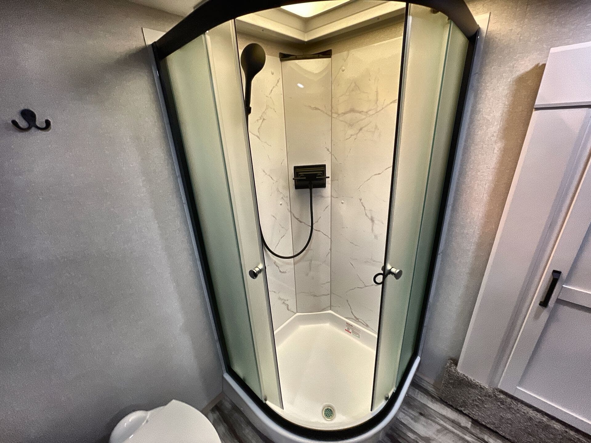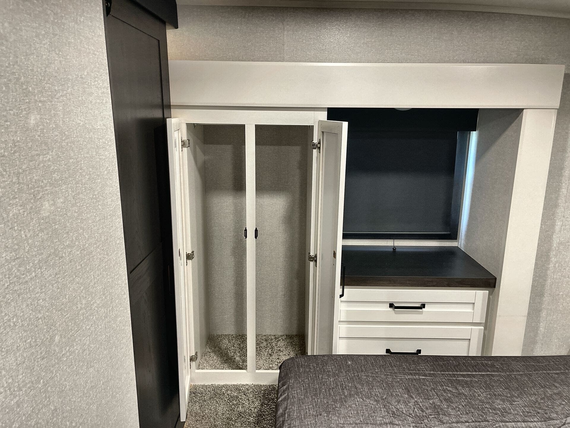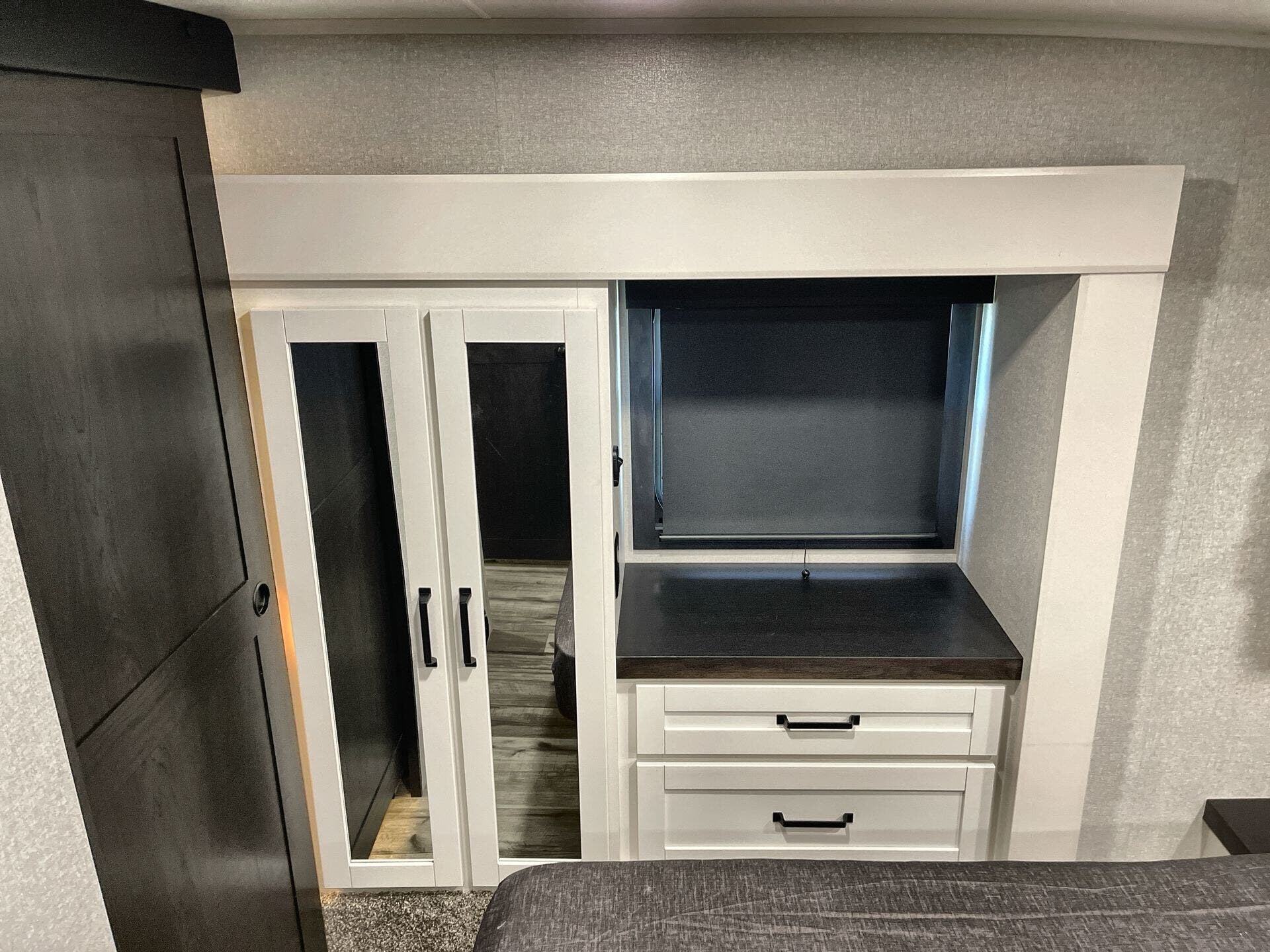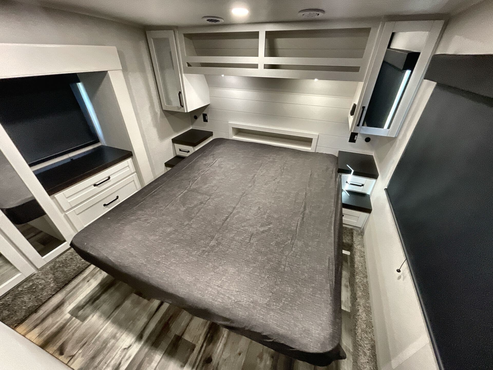 Inside this RV you’ll find a complete kitchen with modern conveniences and a focus on comfort, safety, and practicality. The model includes a Microwave, Oven, Refrigerator, and Stove to simplify meal preparation on the road. The island kitchen and pantry deliver ample workspace and storage, complemented by a kitchen sink and medicine cabinet. For safety, the Roamer 29RLDS comes equipped with a CO Detector, LP Detector, Smoke Detector, and Fire Extinguisher, along with an efficient Air Conditioning system to maintain a comfortable interior. The layout accommodates essential shower and toilet facilities and a TV for leisure and on-the-road entertainment.