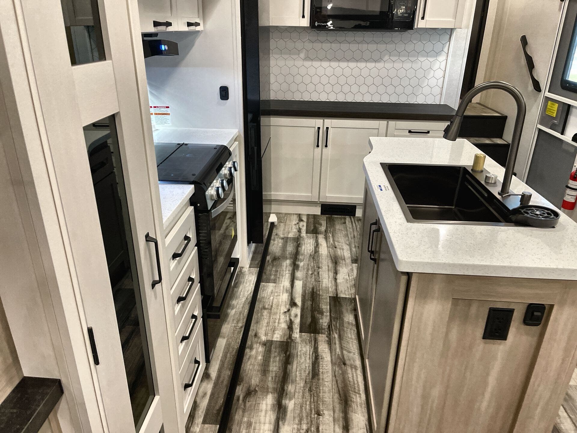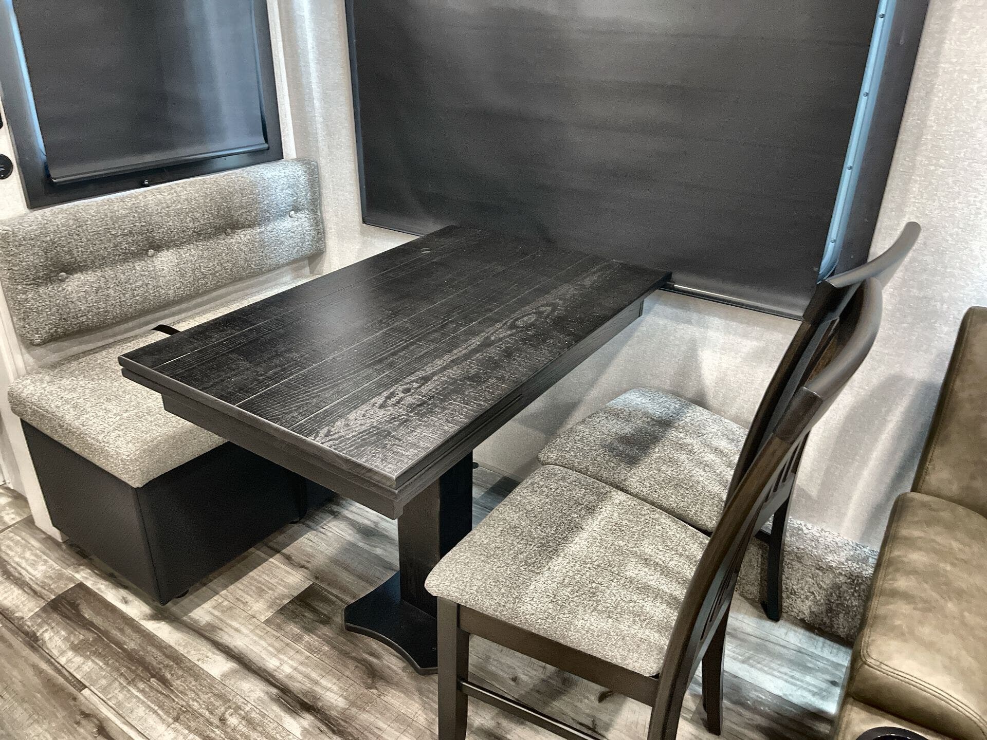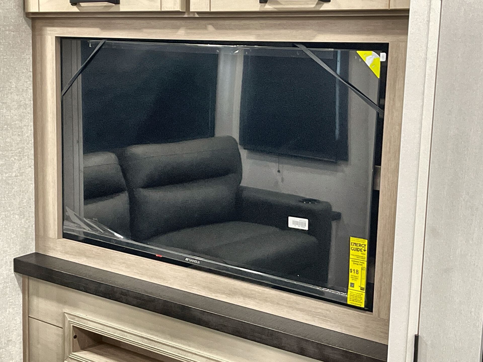 The 29RLDS floorplan centers on a Rear Kitchen layout, showcasing an island kitchen with a full-function galley, including a kitchen sink and pantry, plus generous counter space. The Rear Entertainment area provides a welcoming hub for movie nights, while the Mid Bath helps keep the bedroom area private and comfortable. A Front Bedroom retreat completes the layout for winding down after a day of exploration. The design also features a Slideout to expand the living area and a Free Standing Dinette with Chairs for flexible dining and work space. A TV is integrated into the living area for effortless entertainment.
