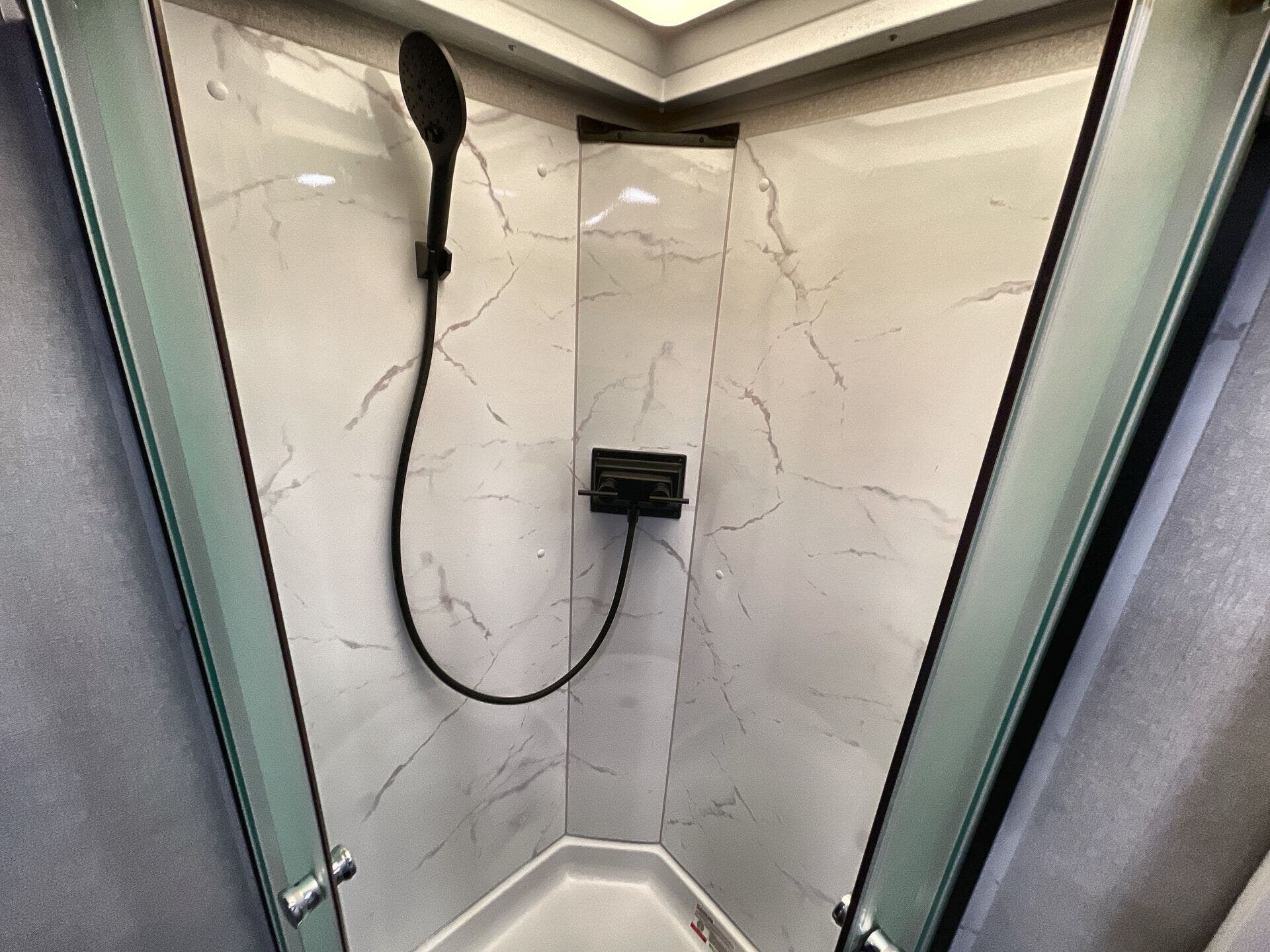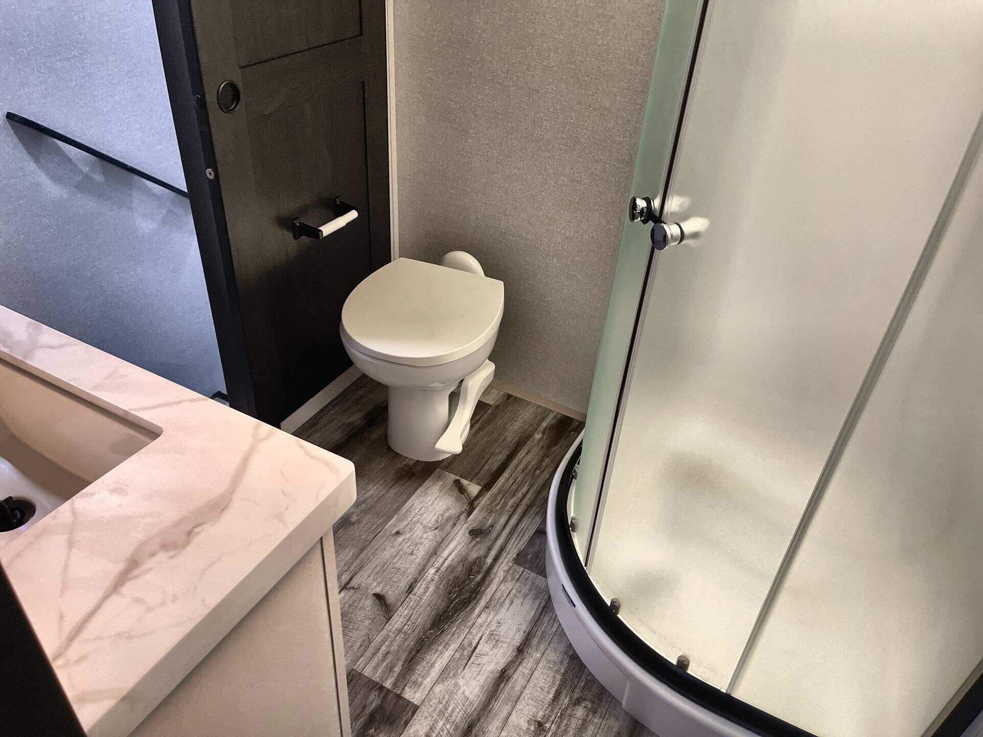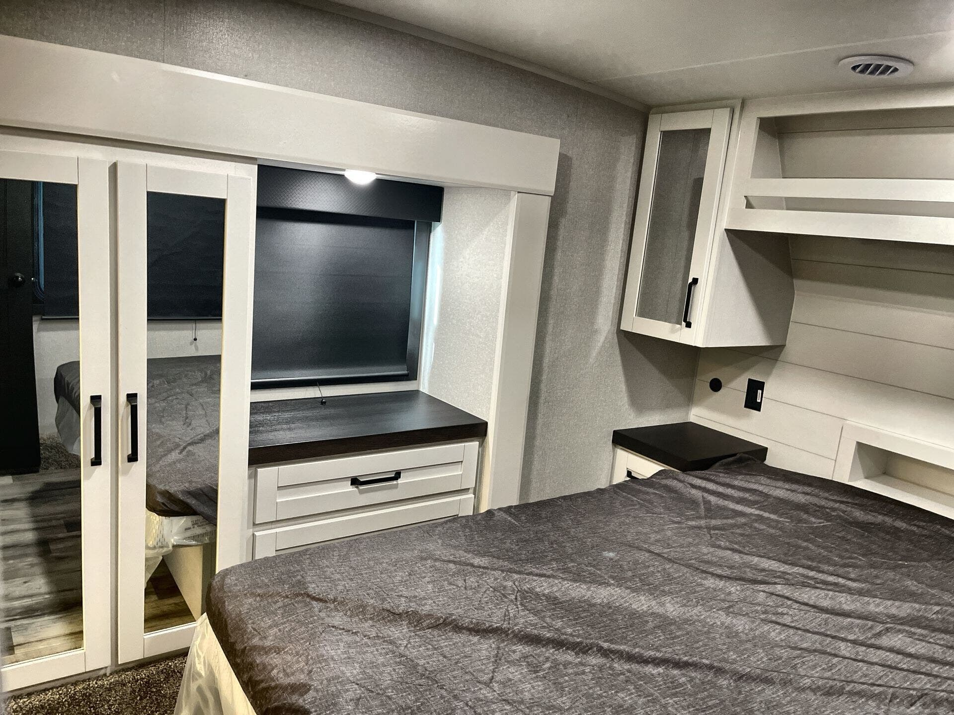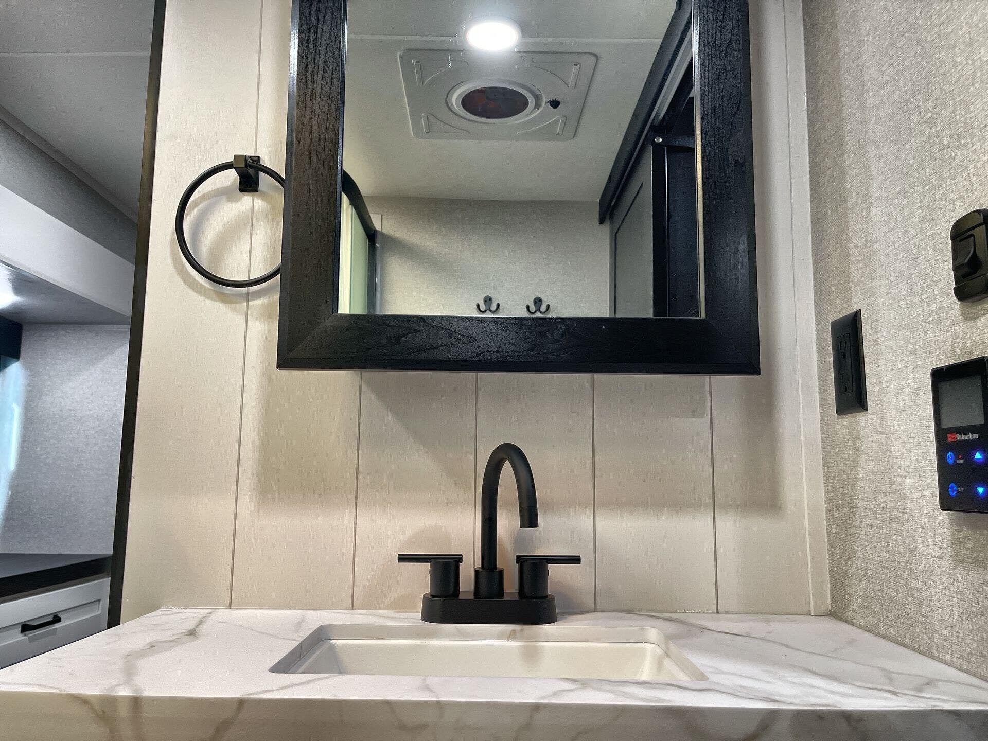Inside this RV you’ll find a complete kitchen with modern conveniences and a focus on comfort, safety, and practicality. The model includes a Microwave, Oven, Refrigerator, and Stove to simplify meal preparation on the road. The island kitchen and pantry deliver ample workspace and storage, complemented by a kitchen sink and medicine cabinet. For safety, the Roamer 29RLDS comes equipped with a CO Detector, LP Detector, Smoke Detector, and Fire Extinguisher, along with an efficient Air Conditioning system to maintain a comfortable interior. The layout accommodates essential shower and toilet facilities and a TV for leisure and on-the-road entertainment.