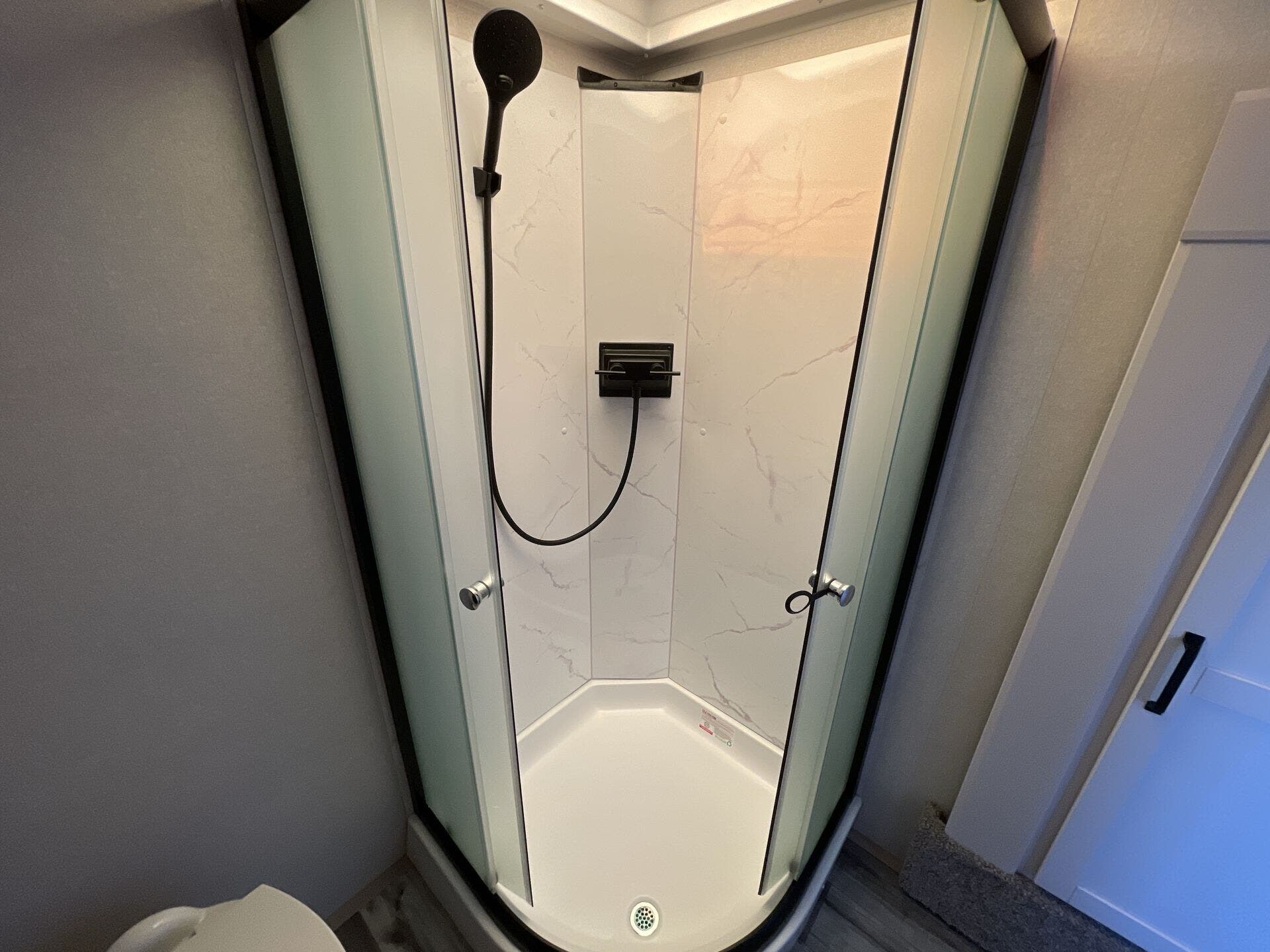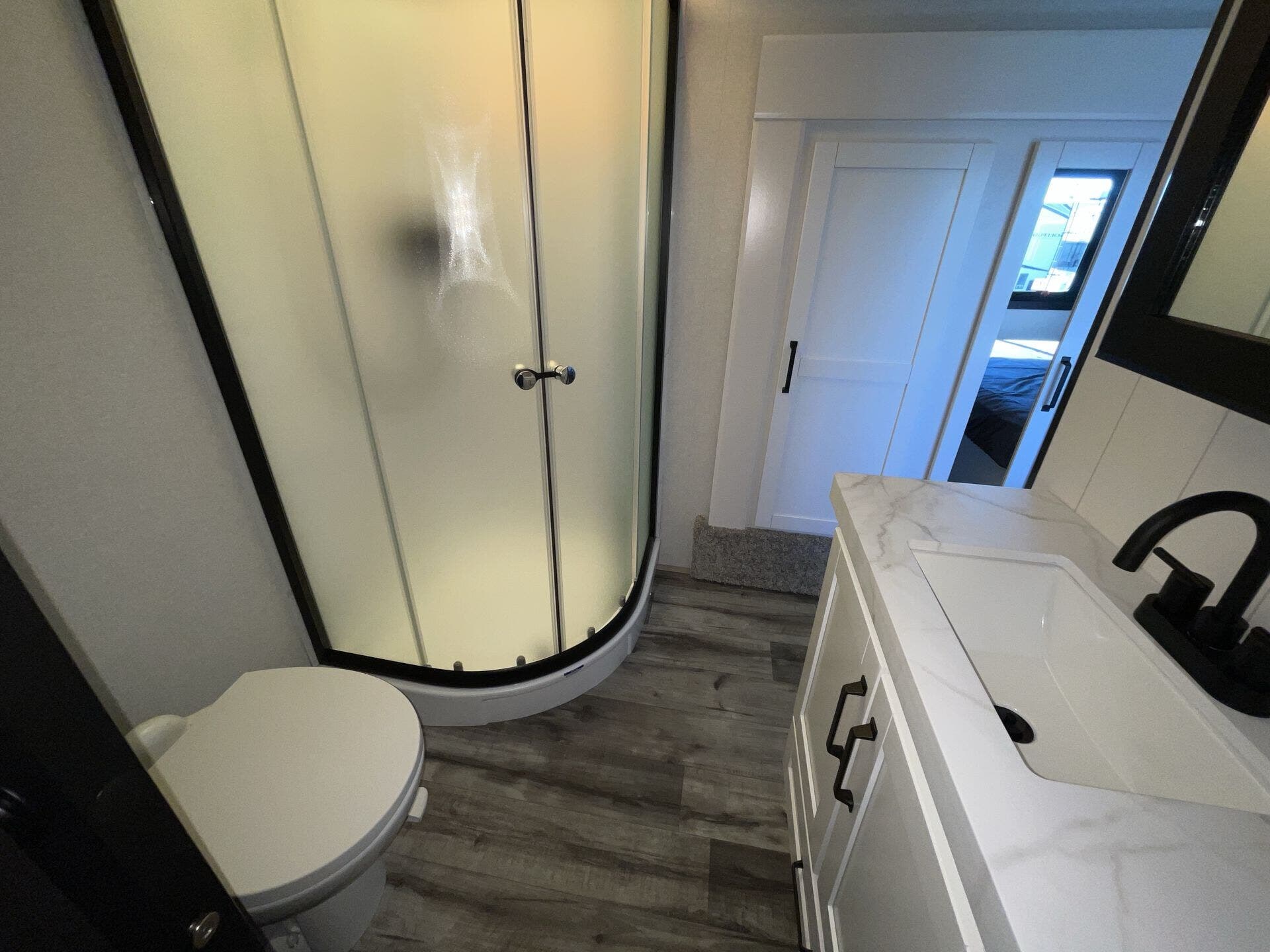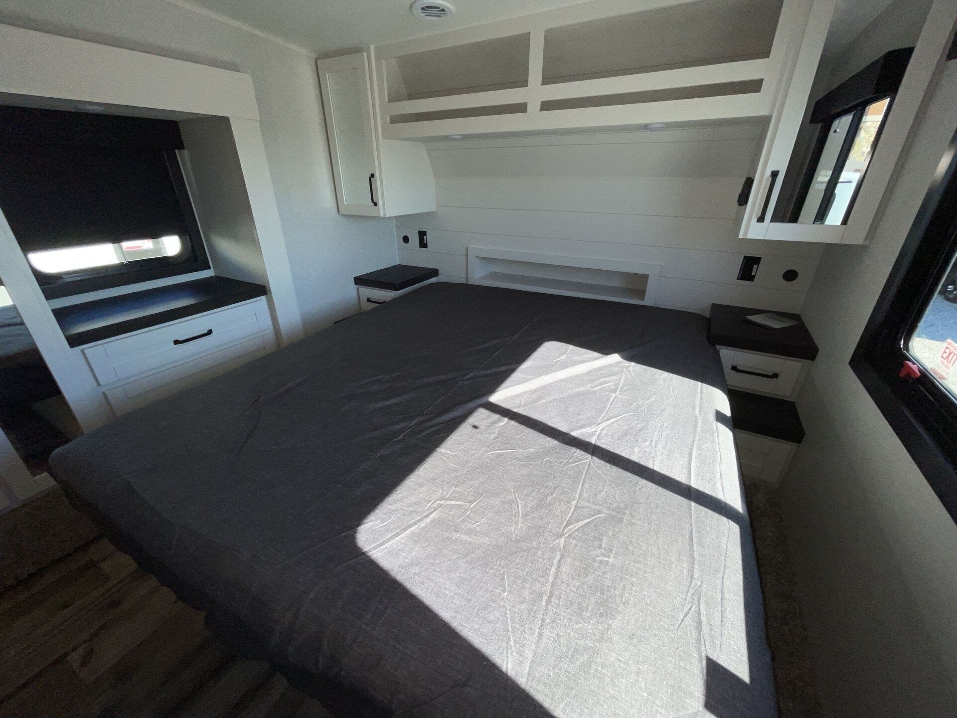 At the front, the private master bedroom ensures a peaceful retreat with a queen bed, large wardrobe, and direct access to the spacious dual-entry bathroom featuring a glass shower and linen storage. Outside, you’ll find a power awning with LED lighting, a premium outdoor kitchen, and plenty of storage for all your gear. Whether you’re chasing sunsets or setting up camp by the lake, the 2026 Highland Ridge Open Range Roamer 29RLDS delivers first-class comfort, thoughtful design, and unbeatable value for every kind of traveler.