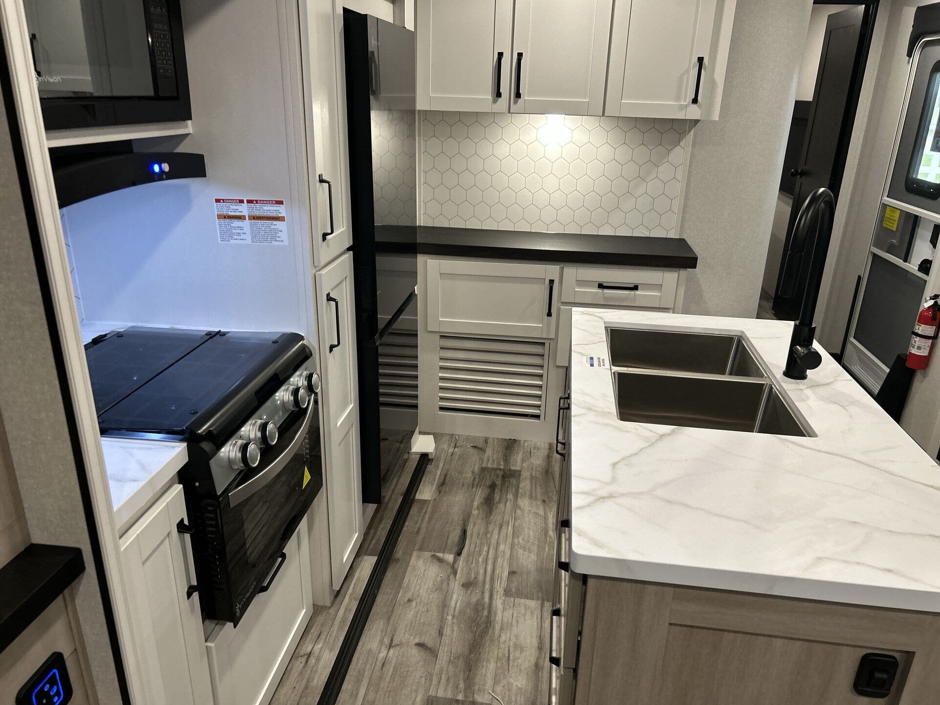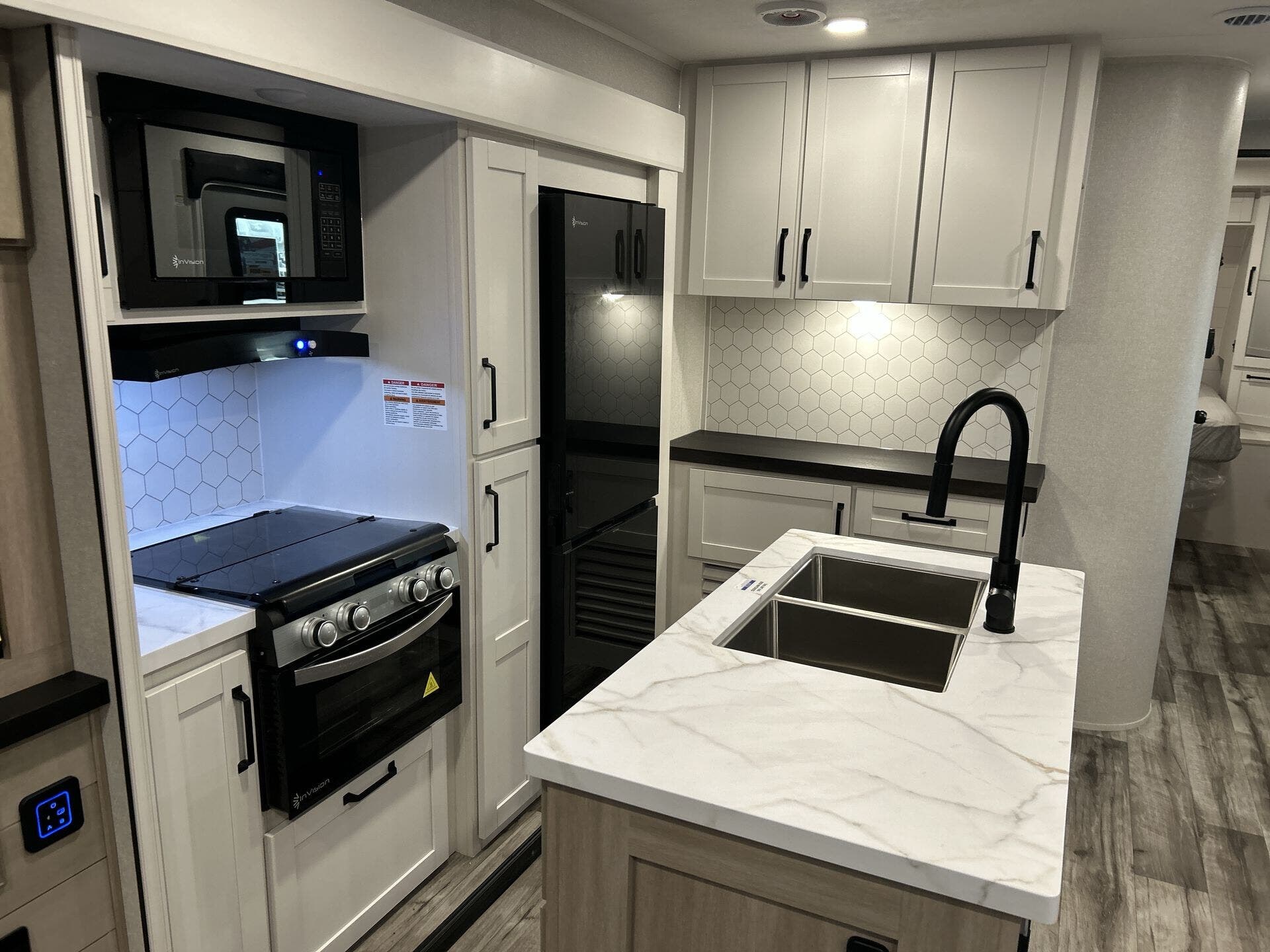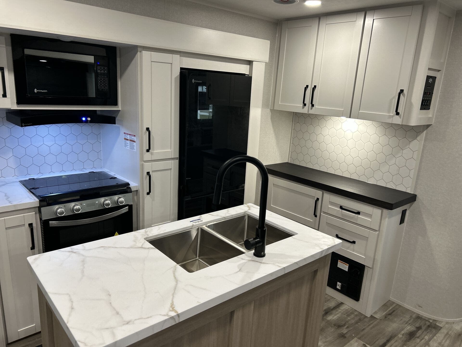 Awning, Black Tank Flush, Detachable, Detachable Power Cord, Griddle, Heated Underbelly, Hitch, Ladder, Outside Kitchen, Roof Deck, Skylight, Slam Latch Baggage Doors -