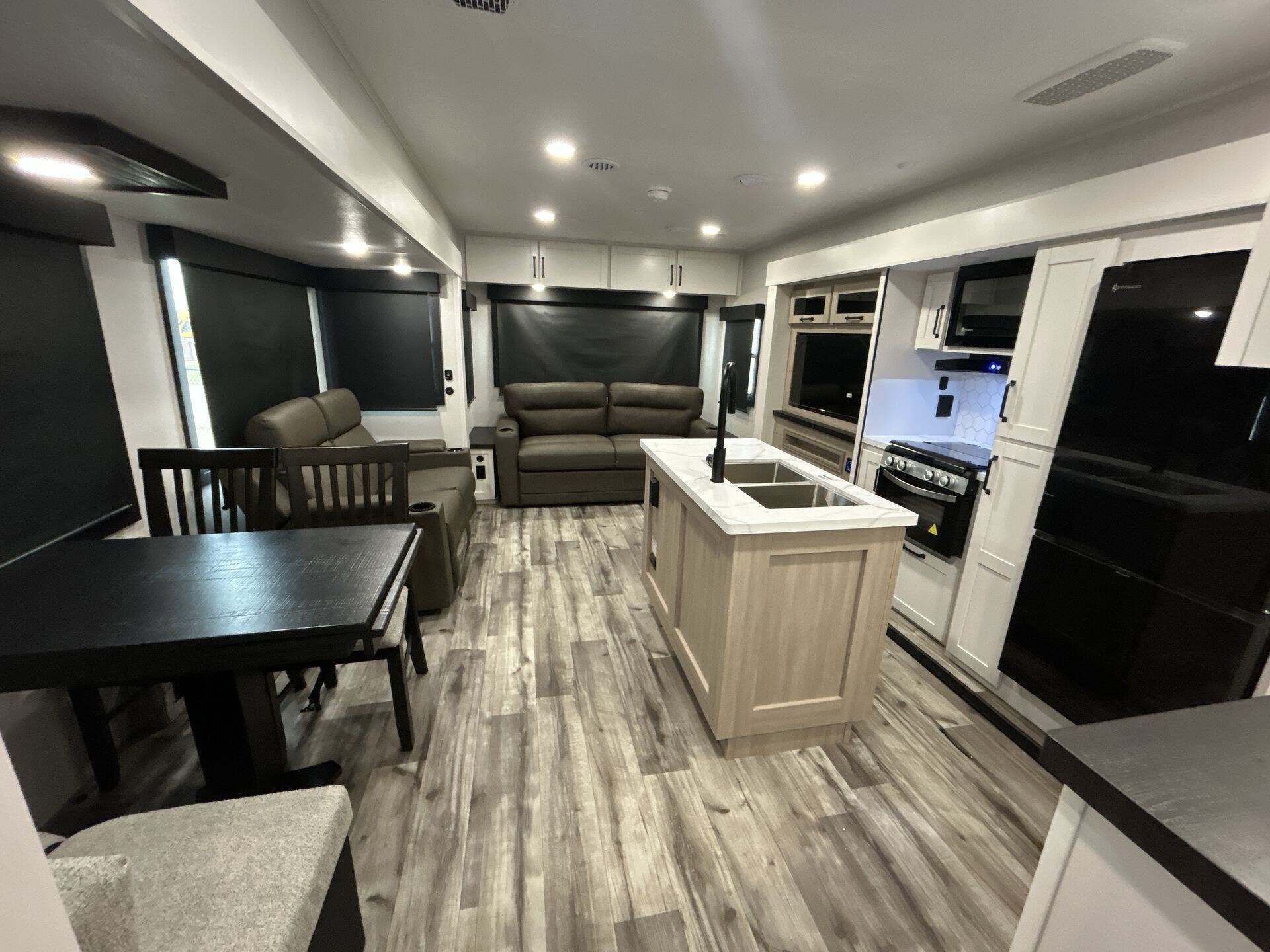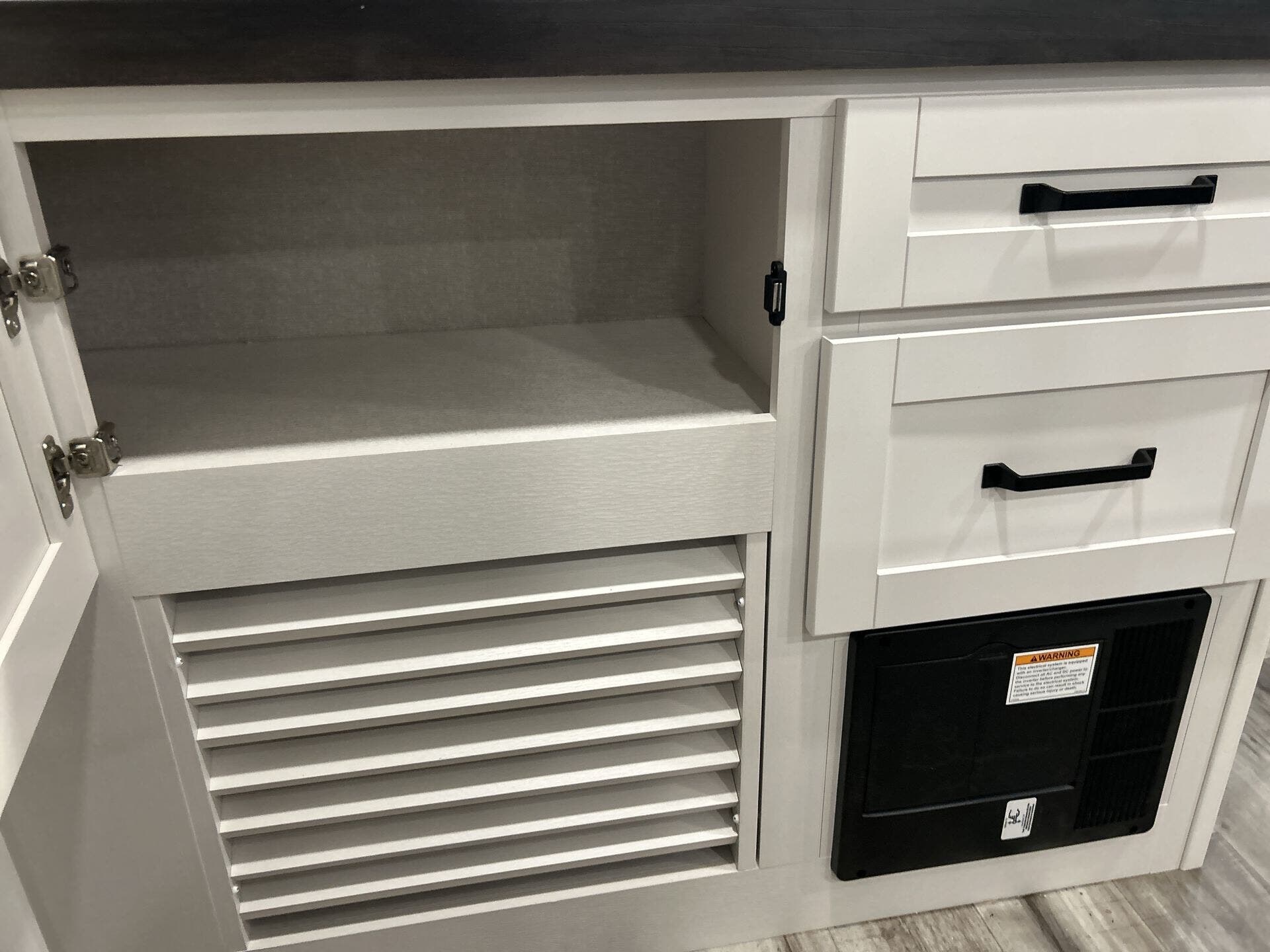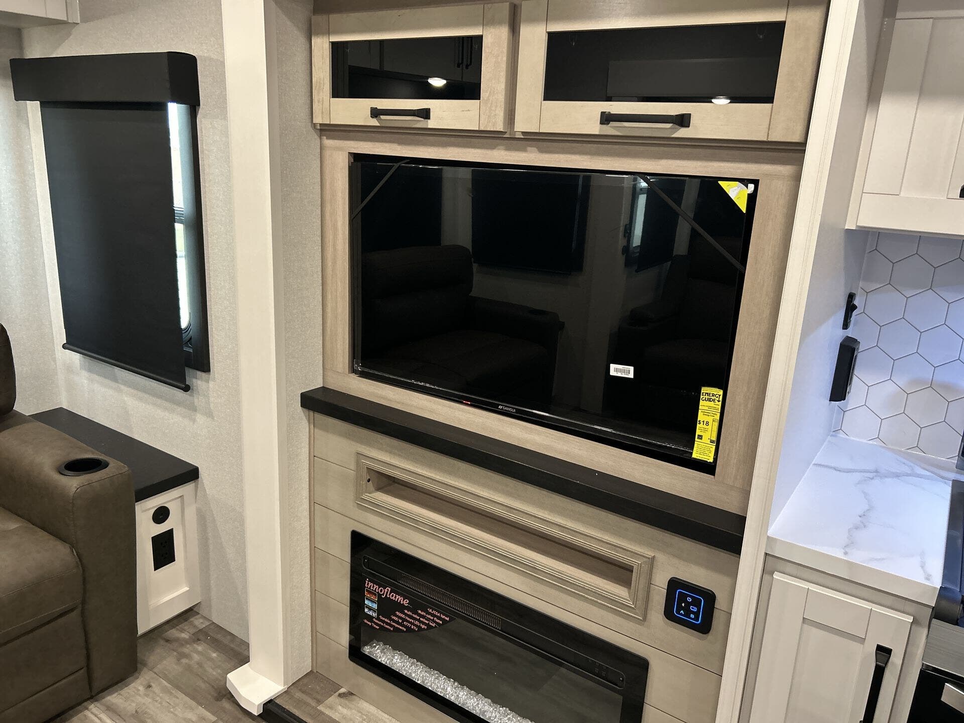 The Open Range Roamer is equipped with a comprehensive list of comforts and utilities to elevate your RV experience. Enjoy powerful climate control with a 15,000 BTU air conditioner and a reliable furnace for cooler nights. The interior features a cozy fireplace, theater seating, and a hide-a-bed sofa for flexible sleeping arrangements and social moments. Prepare meals with a microwave and refrigerator, and rely on the water heater for hot showers after your outdoor adventures. An inverter and built-in solar panel offer energy independence, while a detachable power cord adds convenience at campgrounds with limited hookups.