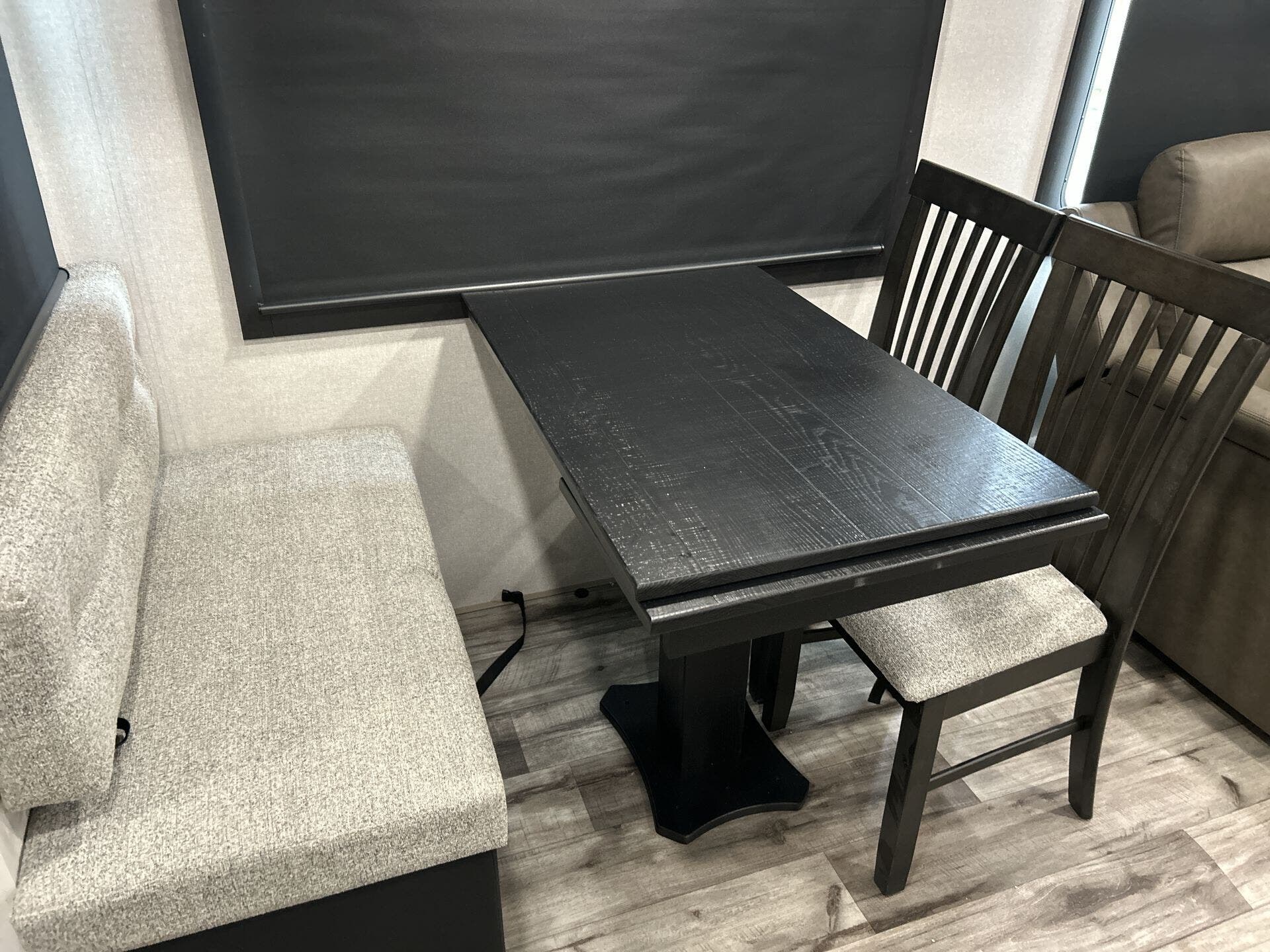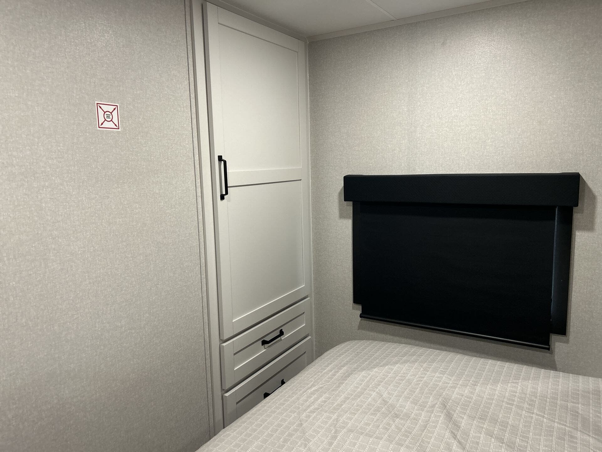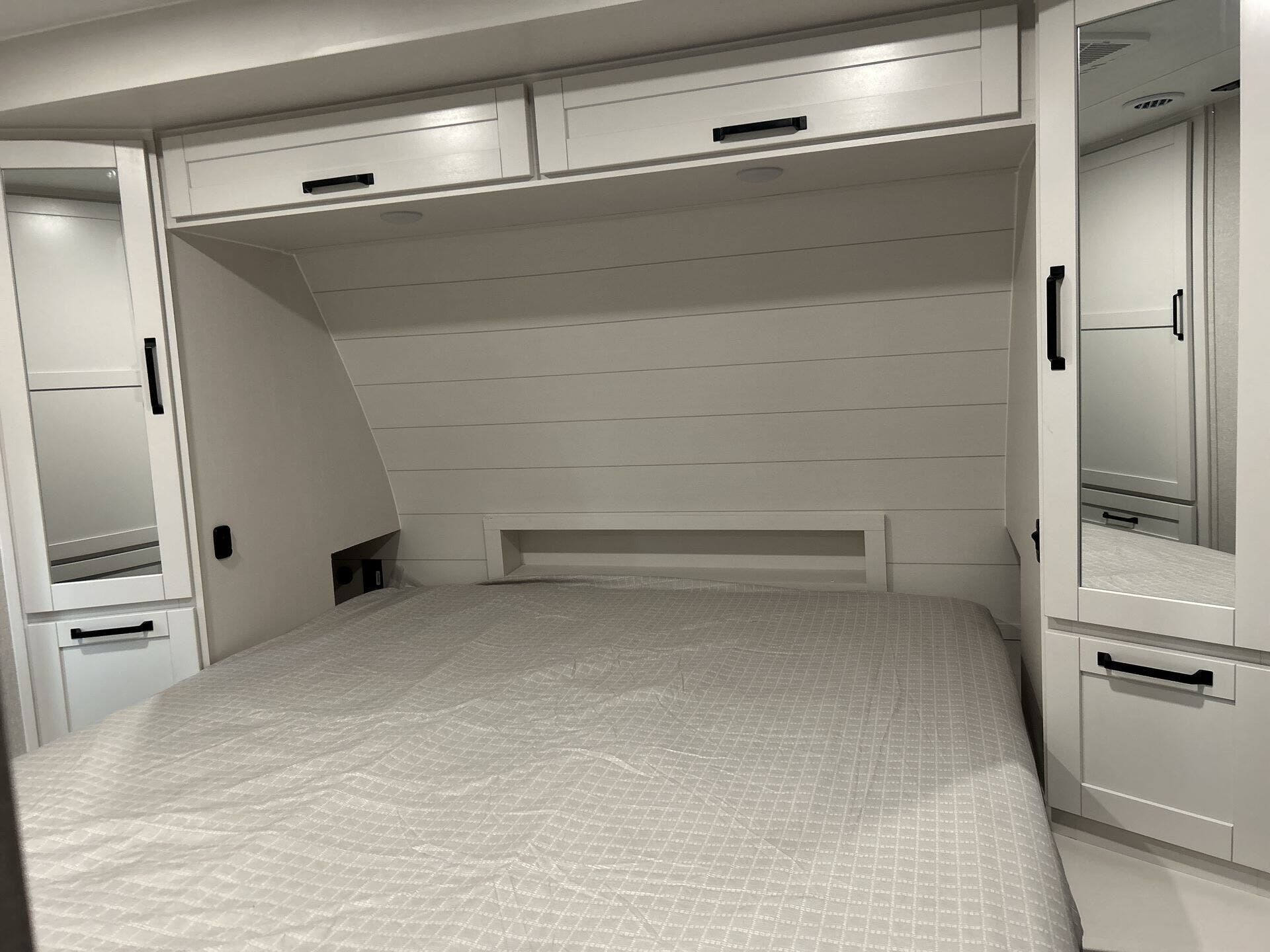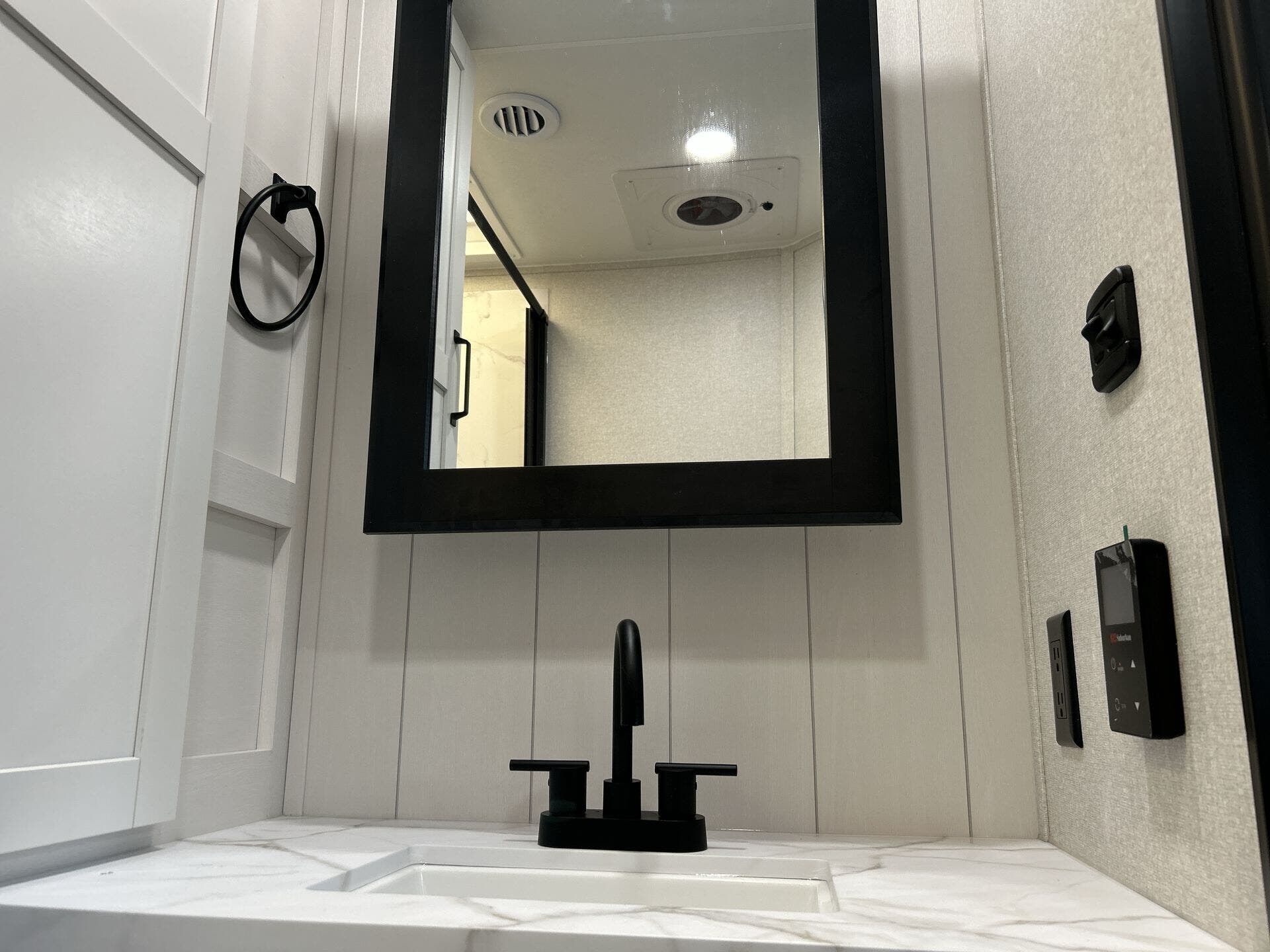 The Open Range Roamer is equipped with a comprehensive list of comforts and utilities to elevate your RV experience. Enjoy powerful climate control with a 15,000 BTU air conditioner and a reliable furnace for cooler nights. The interior features a cozy fireplace, theater seating, and a hide-a-bed sofa for flexible sleeping arrangements and social moments. Prepare meals with a microwave and refrigerator, and rely on the water heater for hot showers after your outdoor adventures. An inverter and built-in solar panel offer energy independence, while a detachable power cord adds convenience at campgrounds with limited hookups.