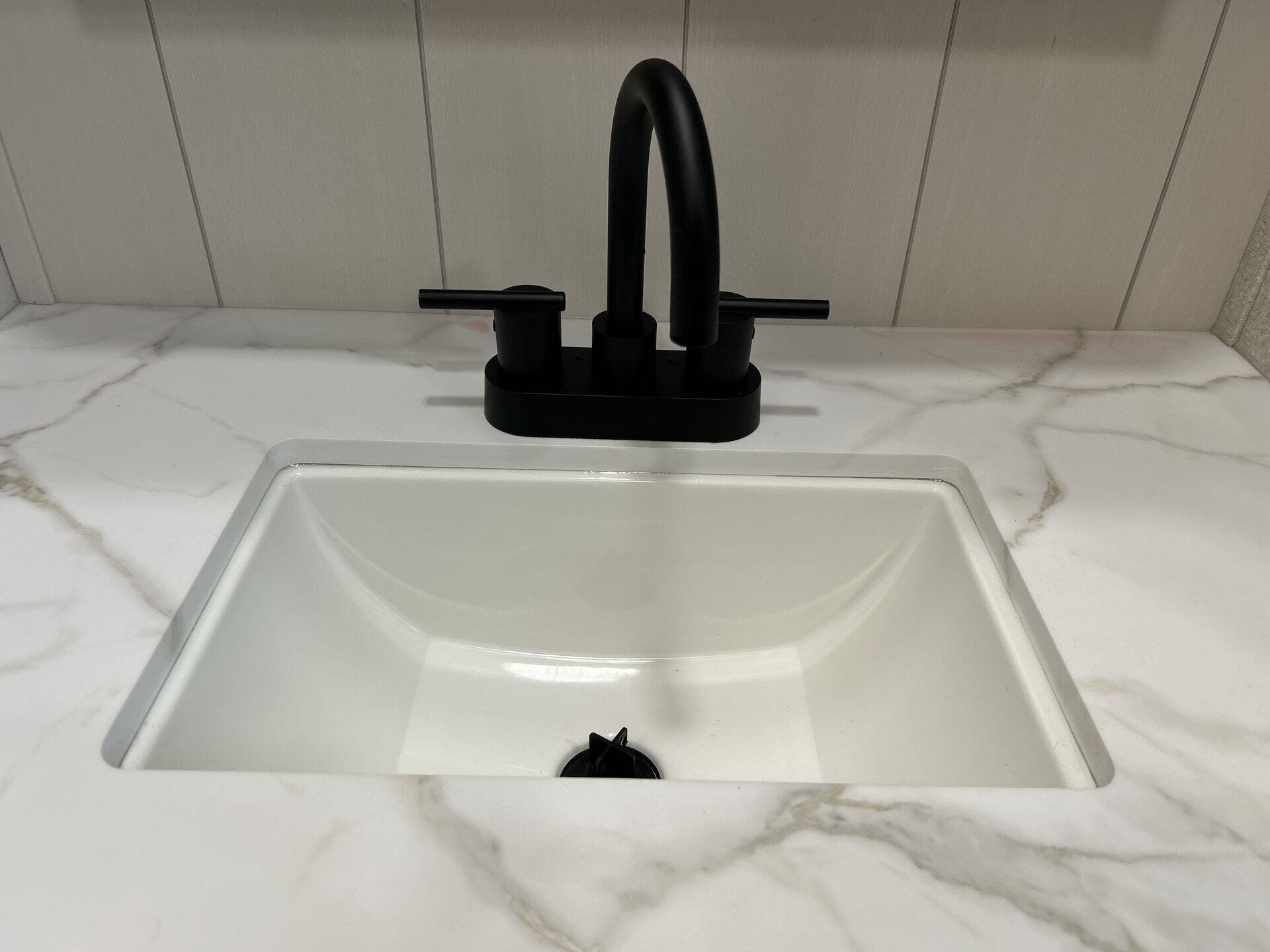 - Floorplan: Front Bedroom, Kitchen Island, Rear Living Area