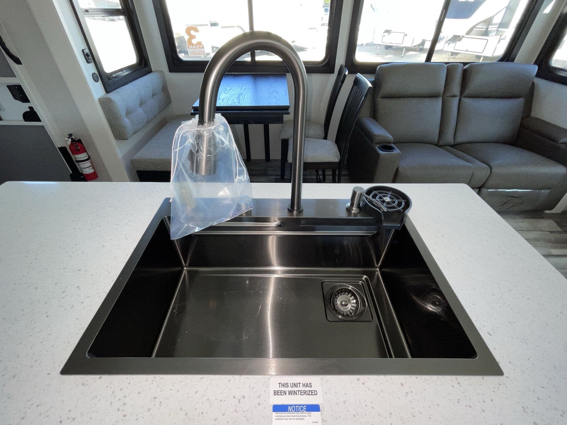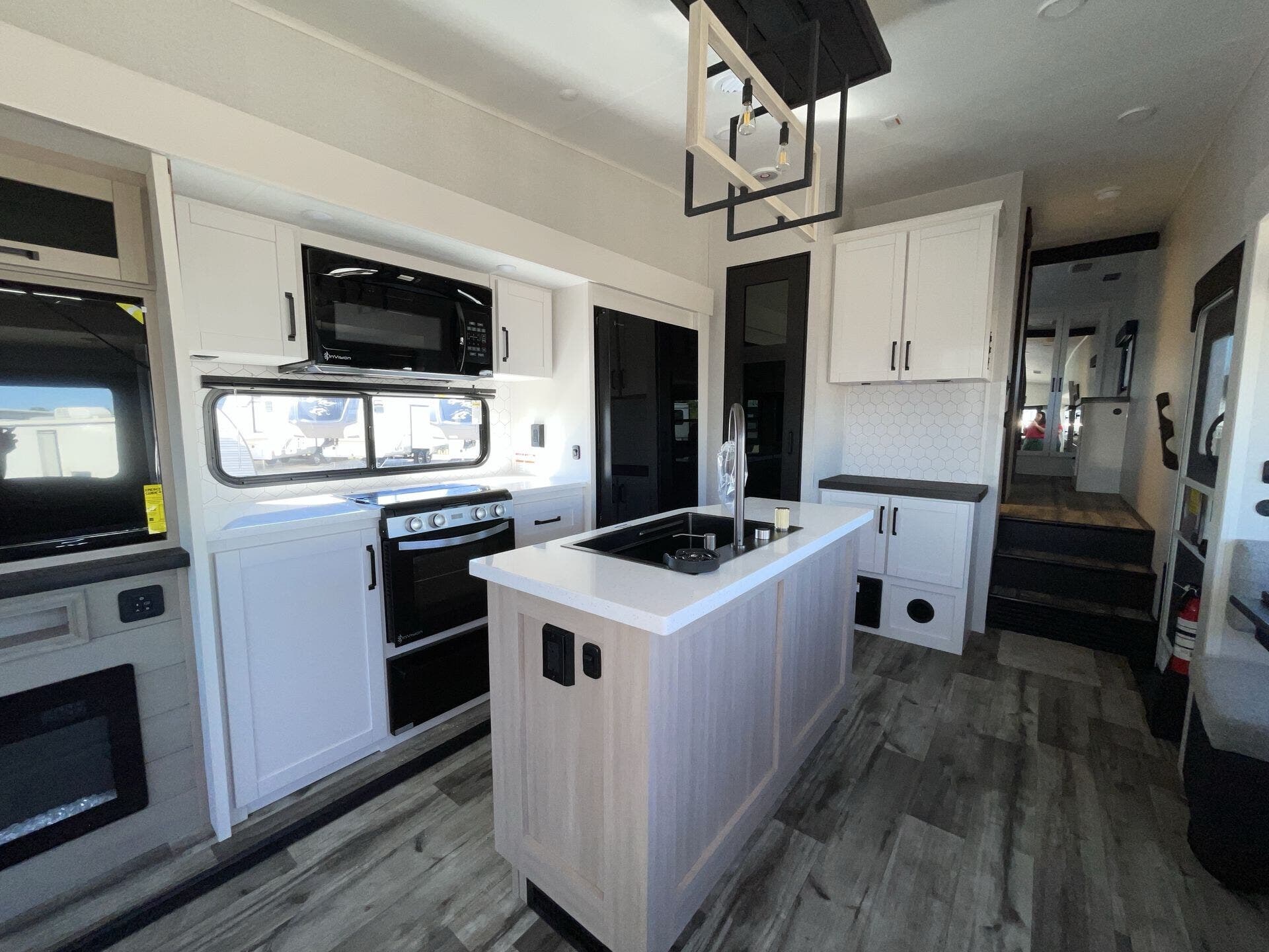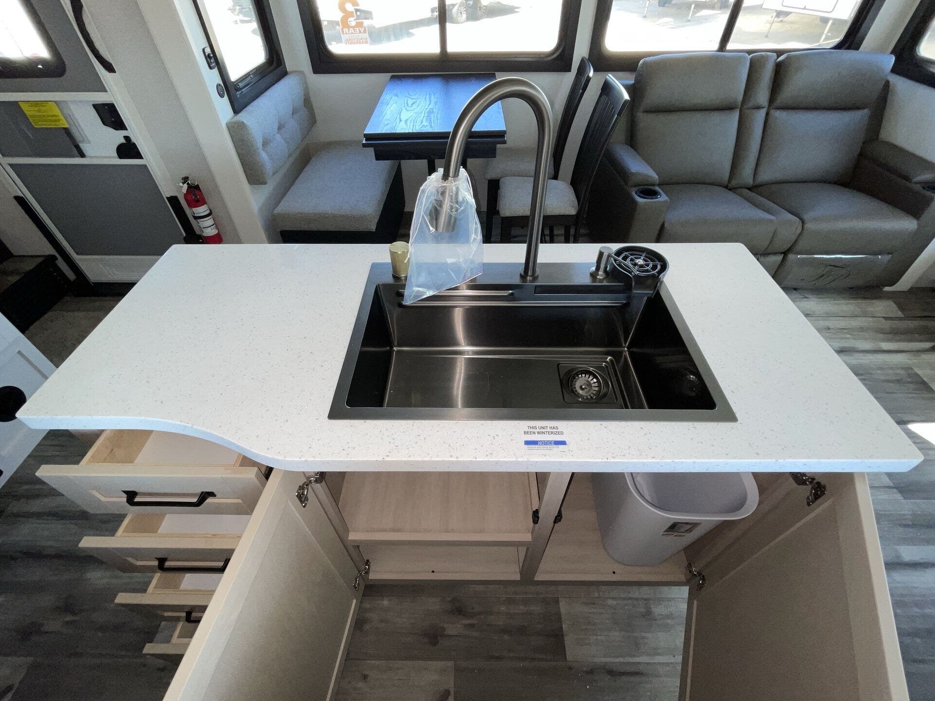 - Kitchen island centerpiece with a full kitchen sink and pantry