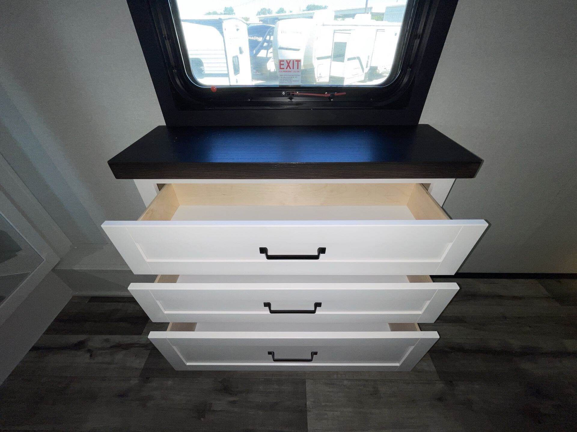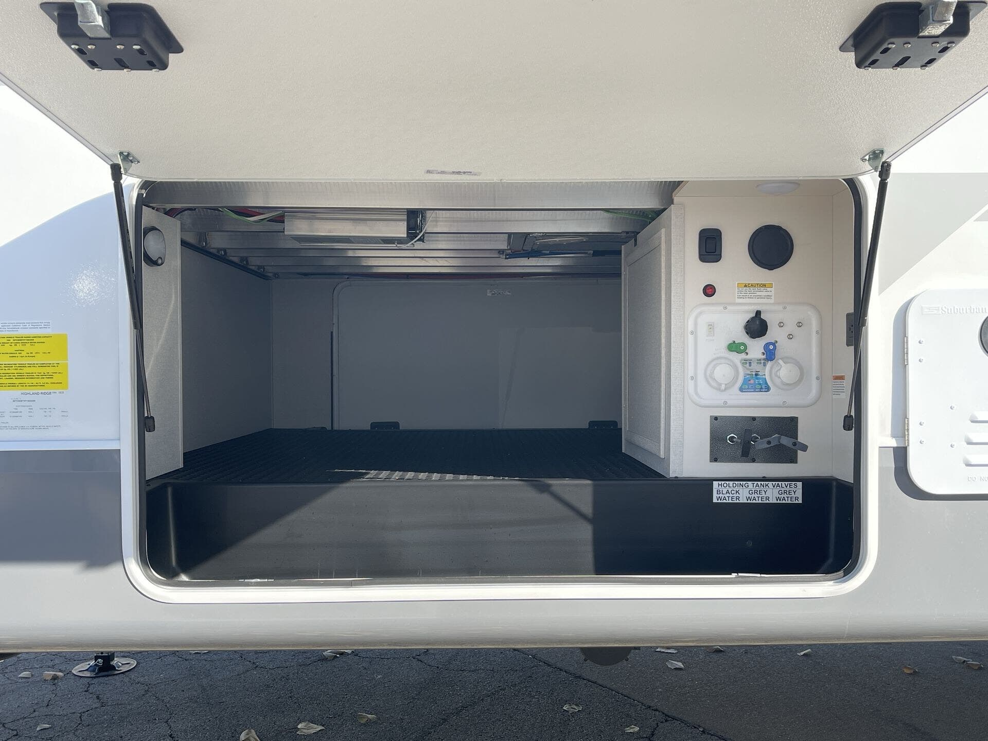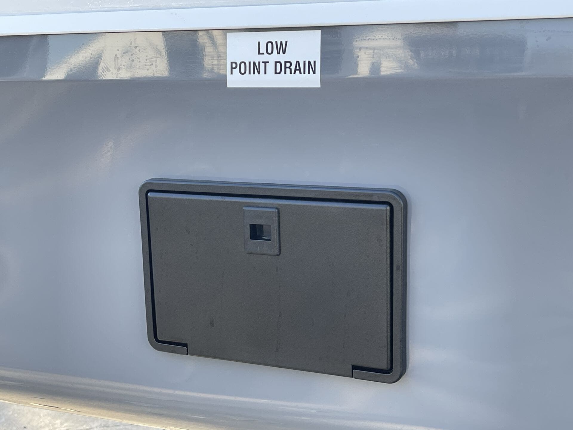 - Exterior features: Power awning, pass-thru storage, detachable power cord, enclosed and heated underbelly