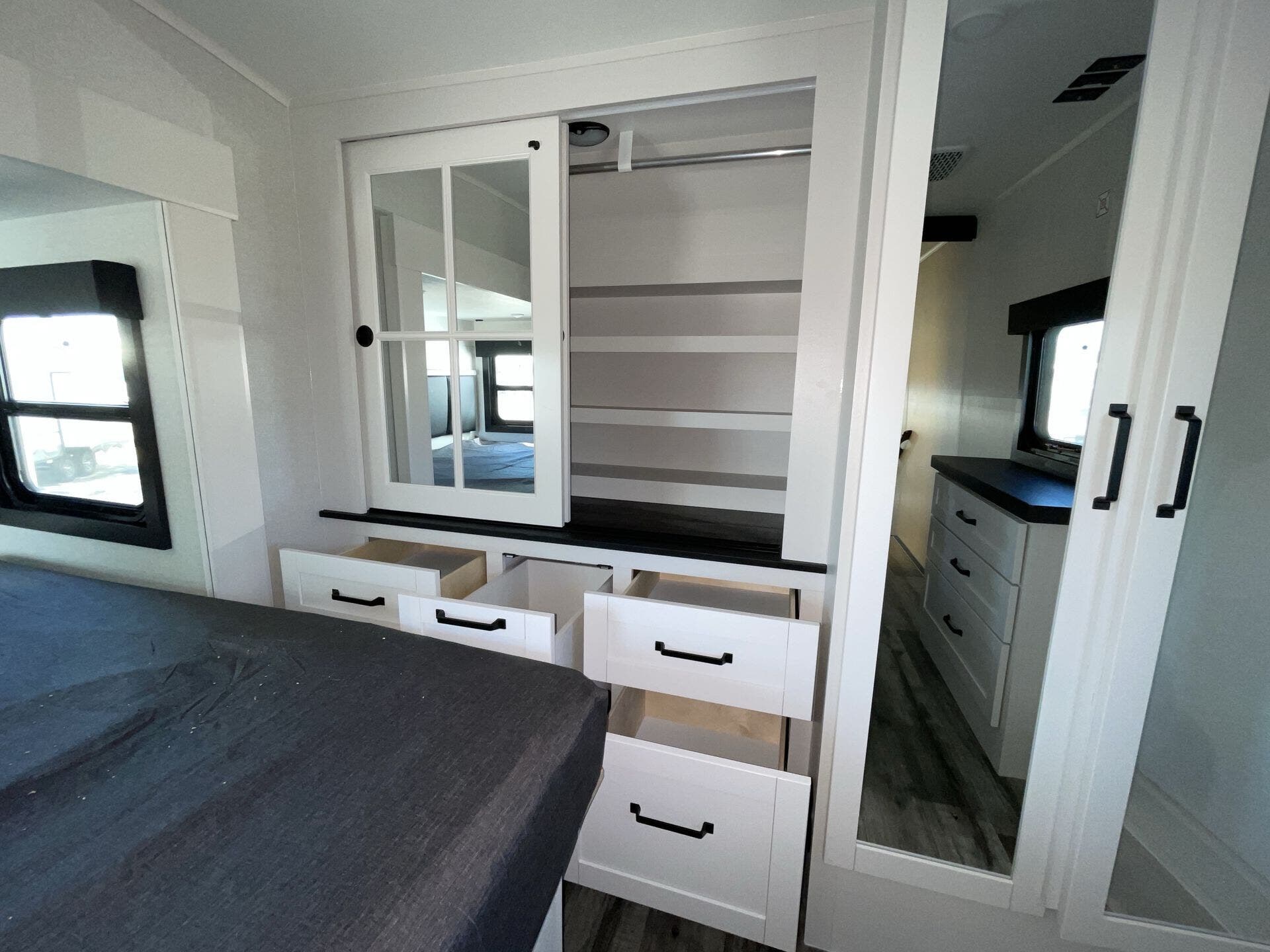 - Floorplan: 32RLTS (Front Bedroom, Kitchen Island, Mid Kitchen, Rear Living Area)