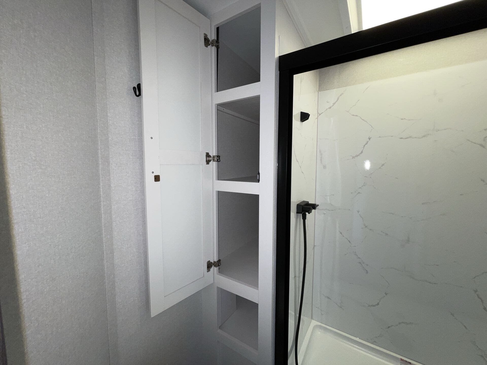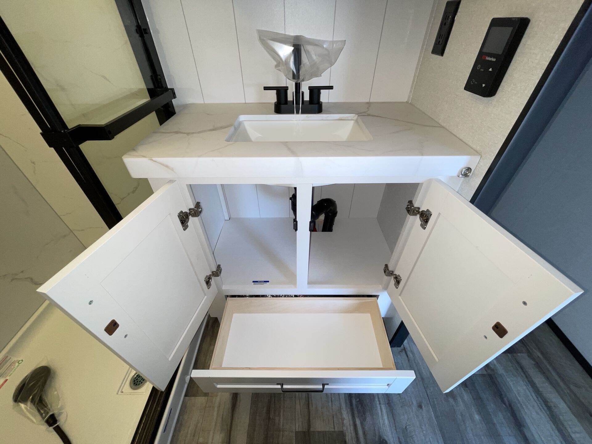 The 32RLTS floorplan optimizes living space while preserving stable towing and easy maneuverability. Key layout features include: