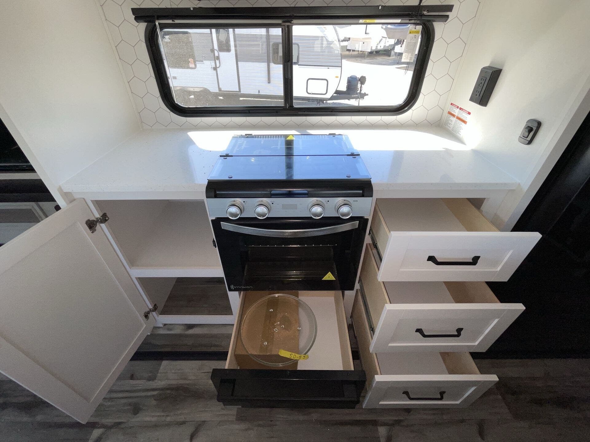 Awning, Detachable Power Cord, Enclosed Underbelly, Heated Underbelly, Hitch, Leveling Jacks, Mor-Ryde Suspension, Pass Thru Storage, Power Awning, Roof Vent, Slideout, Spare Tire Kit -