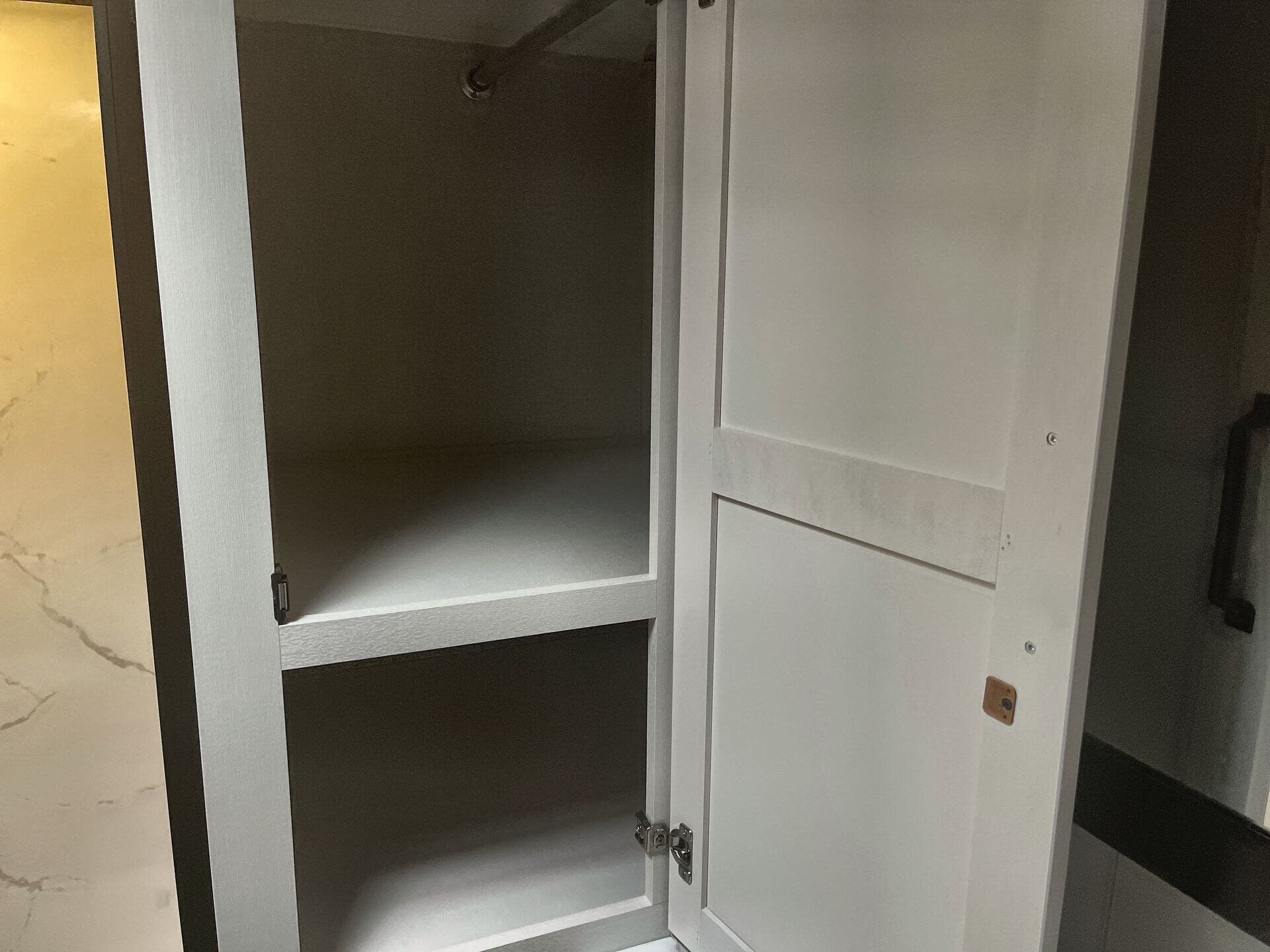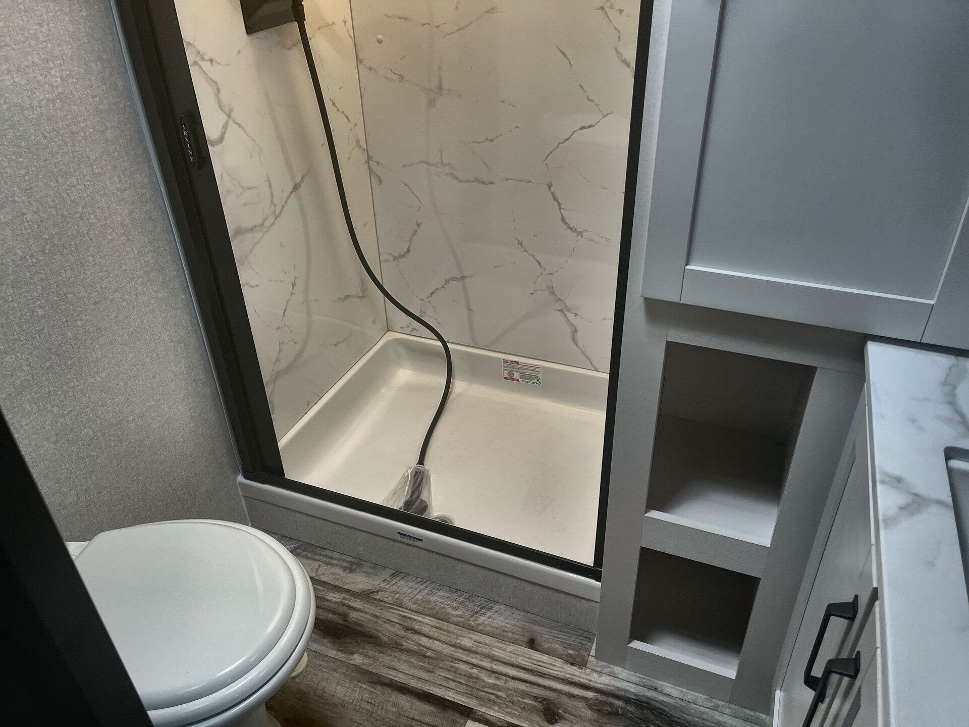 Hide-A-Bed, Medicine Cabinet, Pleated Shades, Queen Mattress, Shower, Theater Seating, Toilet -