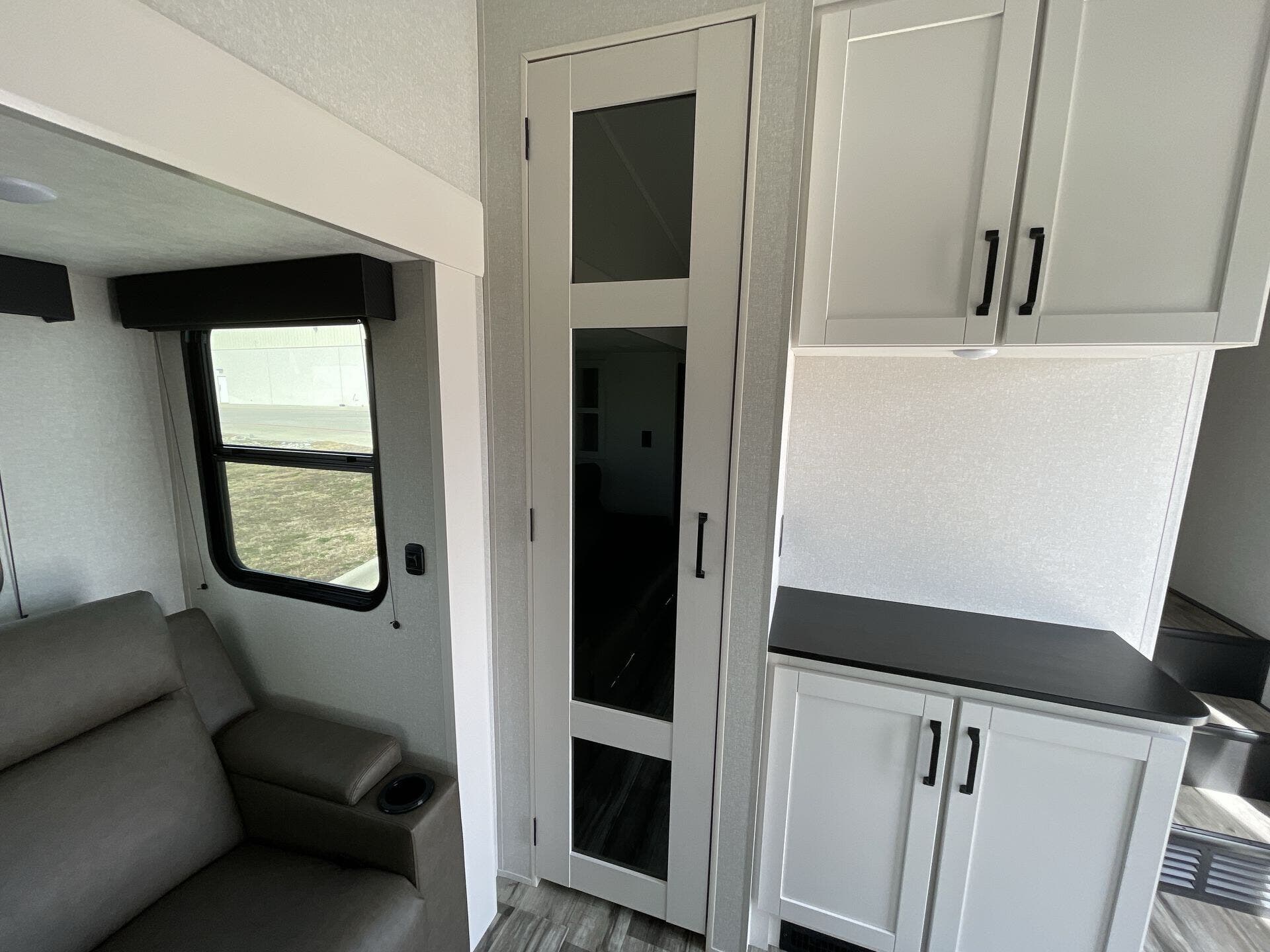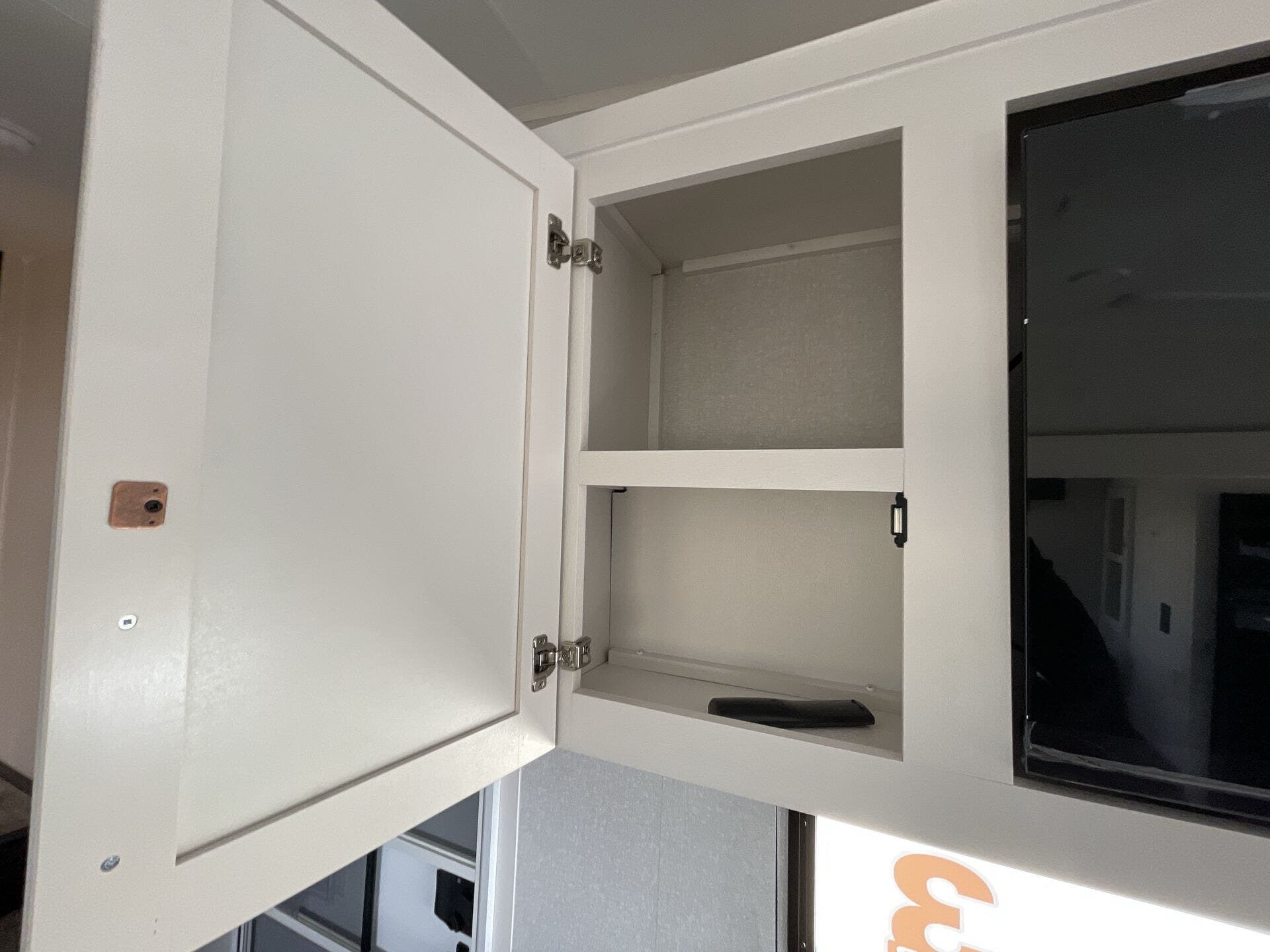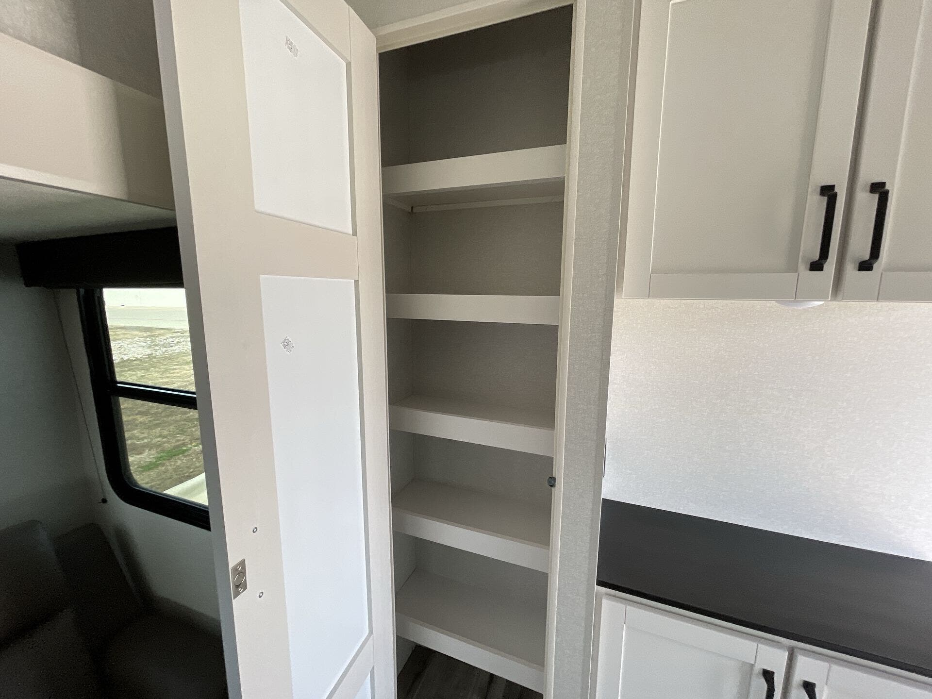 The Open Range Roamer is equipped to stay comfortable during extended trips. Inside, you’ll find essential appliances such as a furnace, microwave, oven, refrigerator, stove, and a dedicated stove top burner, ensuring full functionality for daily cooking and heating needs. The generous living area, coupled with two slide-outs, creates an open, inviting space to relax after a day on the road. A cozy queen bed in the front bedroom ensures restful nights, while a practical mid bath keeps morning routines smooth and private.