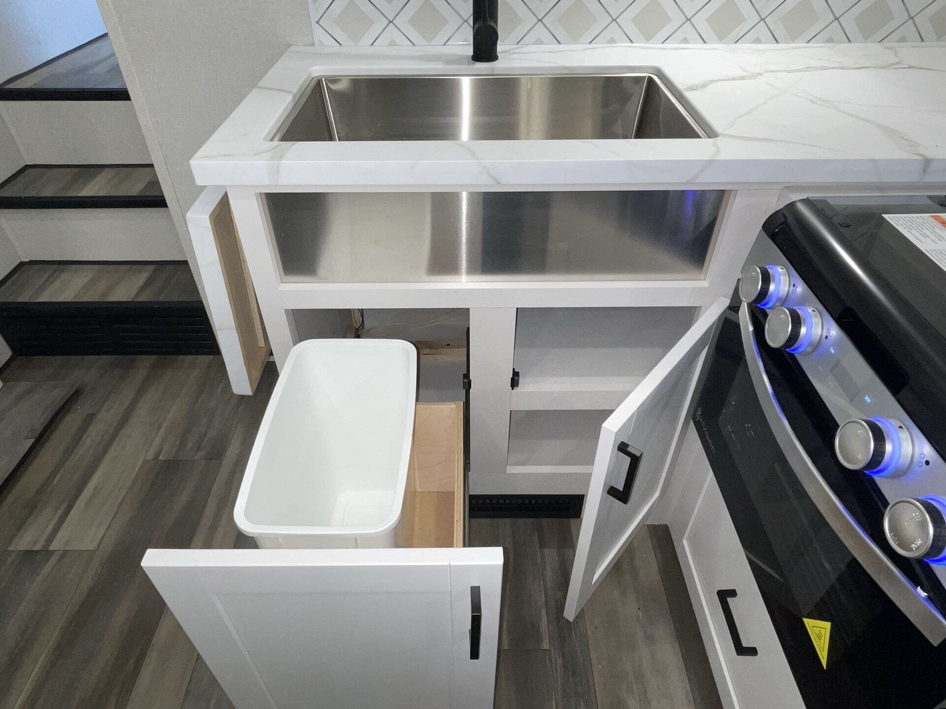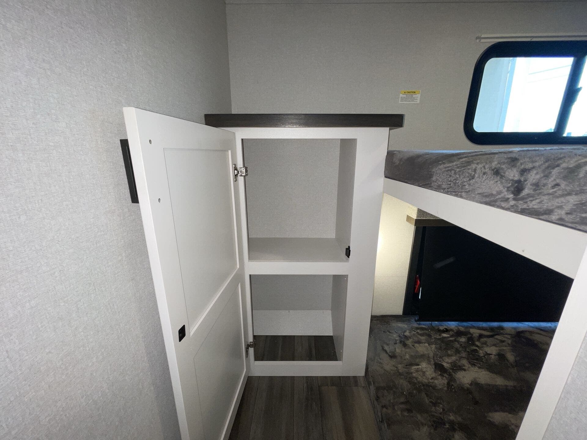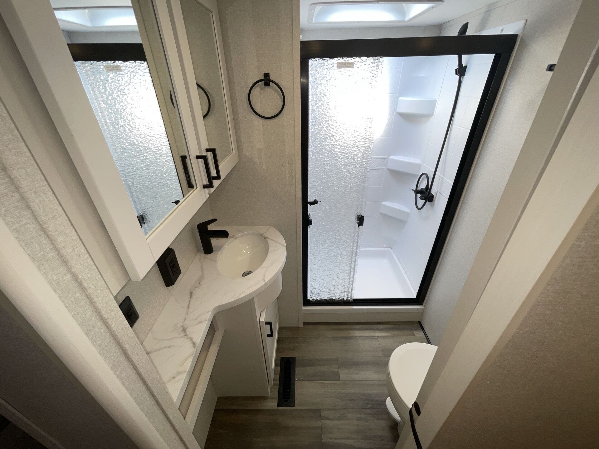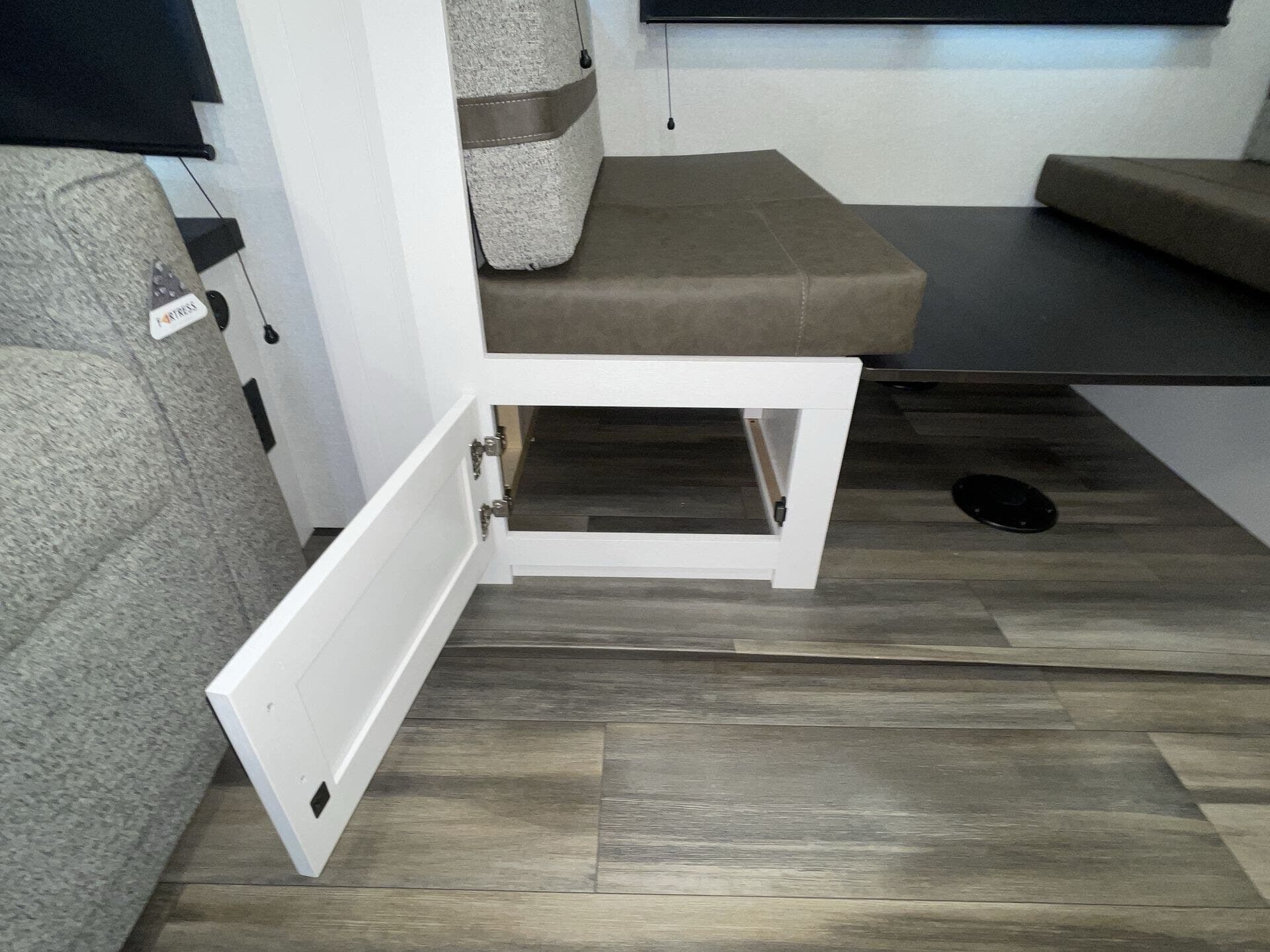 Booth Dinette, Bunk Beds, Bunkhouse, Dinette Bed, Kitchen Sink, Medicine Cabinet, Overhead Cabinetry, Queen Bed, Removable Table, Roof Vents, Shower, Sofa Bed, Toilet